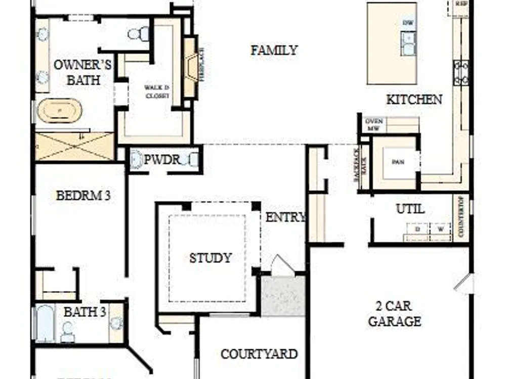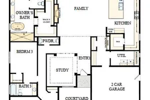 BRAND NEW N/S home with 3 bd, 3.5 bath with enclosed study, courtyard, extended covered patio and split 3 car garage; walk-in closets in all beds; walk-in shower with floor to ceiling tile and separate soaking tub in owner's bath also boasting dual sinks and upgraded surfaces; gourmet kitchen with huge center island, GE Monogram appliances including 42'' built in refrigerator and huge walk-in pantry; custom tiled kitchen backsplash; plank tile flooring and upgraded carpet/pad in secondary beds; 2-tone paint throughout; gas fireplace in family room with surround tile extending from floor to ceiling; 2x6 construction and extensive new home warranty.