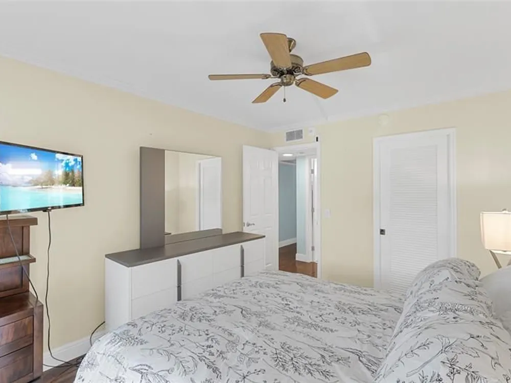 Exceptional Unit! Second floor, 2 bedroom 2 full bath. Impact hurricane door, and windows, laminated flooring, open kitchen with granite counter tops and backsplash, crown molding, plantation shutters, totally remodeled baths, with walk in showers, new electrical panel, custom closet in master bedroom, designer ceiling fans, decorator style furniture, steps to Clubhouse and Lyndhurst pool, this unit is move in ready! Enclosed patio has garden view. Clubhouse has live theater shows, craft rooms, fitness center, indoor pool, Cafe on property, free shuttle service to malls an grocery stores. Approximately 4 miles to beach!. This is a non-rental building, monthly HOA's total $769, SunCoast $487, Cenclub $110, CVEMM $172. Proof of funds must accompany all offers. Easy to show on showtime.
