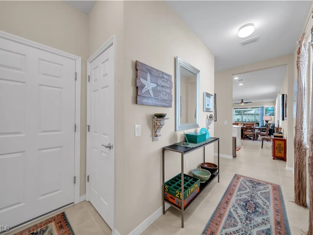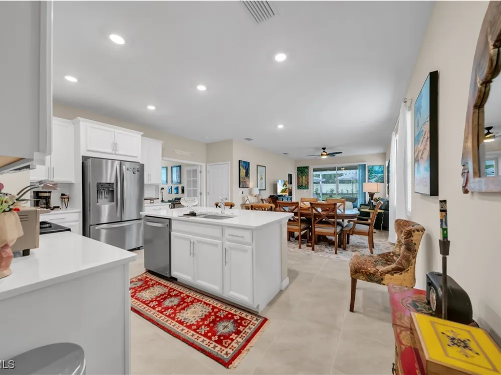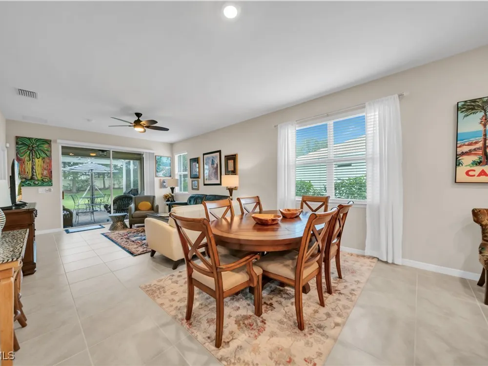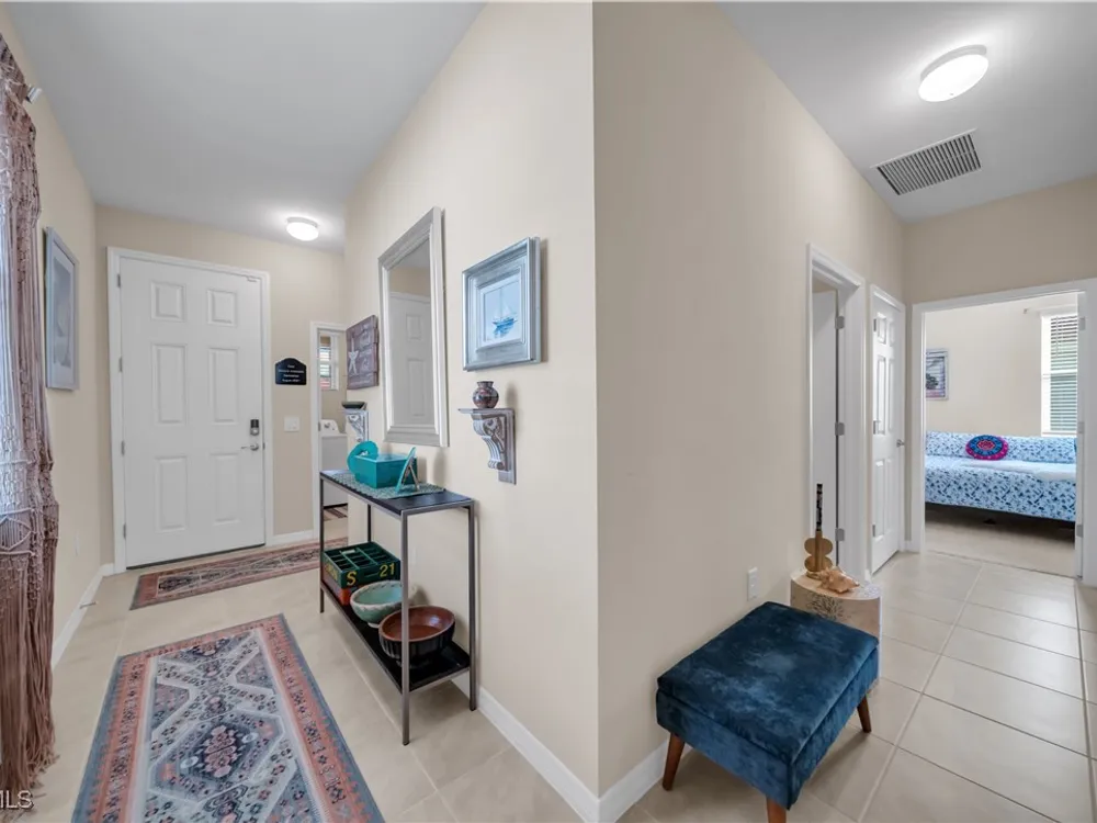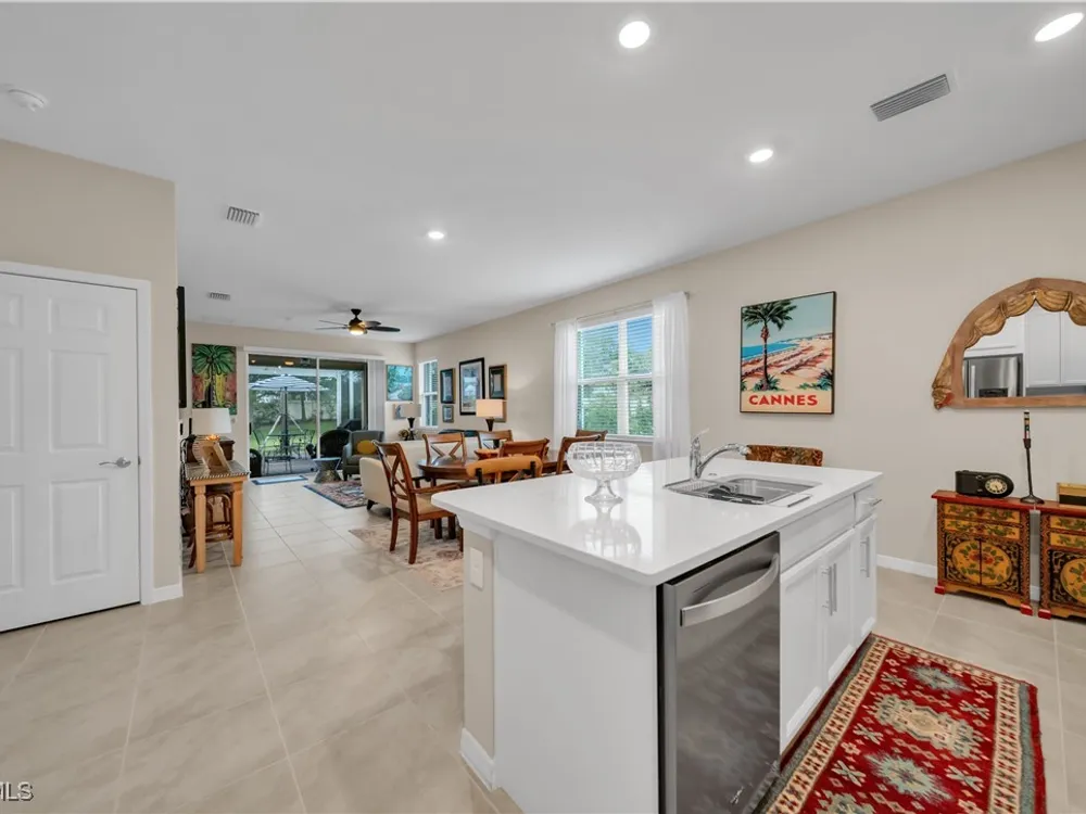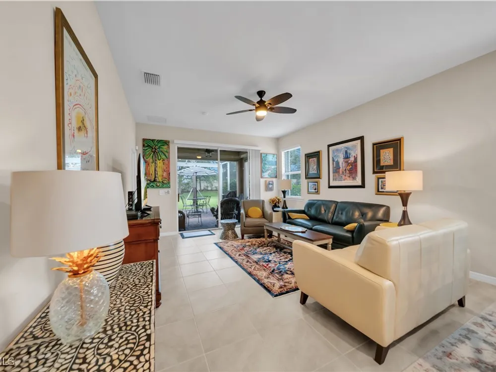 Discover effortless Florida living in this beautifully furnished home in Cascades at River Hall, a vibrant 55+ community. This beautifully maintained single-family residence offers 3 spacious bedrooms, 2 full baths, and a 2-car garage with ceiling-mounted storage. One bedroom easily doubles as a home office, perfect for today’s lifestyle. The gourmet kitchen is a true highlight, featuring stainless steel appliances, Quartz countertops, a modern sink and faucet, and an oversized walk-in pantry. The open layout flows seamlessly into the family room, making it ideal for both everyday living and entertaining. Inside, the home showcases a tasteful mix of tile and carpet flooring that adds comfort and style. The extended screened-in lanai is designed for relaxation and entertaining, with electric roll-down hurricane mesh screens providing added convenience. Hurricane shutters on every window and a monitored alarm system give you extra peace of mind. Even better, this home does not require flood insurance, saving you thousands each year. This property will be sold fully turnkey and furnished, so you can start enjoying the Florida lifestyle right away. As a resident of Cascades at River Hall, you will have access to a wide variety of social activities, a welcoming community atmosphere, and resort-style amenities. Low HOA fees include lawn care, cable, internet, and full use of all amenities, offering an excellent balance of value and lifestyle.