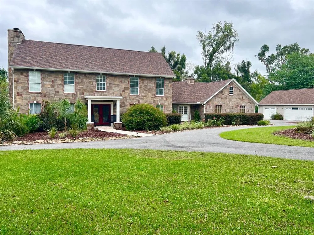 Welcome to this stately 2-story traditional home, built in 1982 and meticulously crafted with a blend of HardiPlank siding and stone for timeless curb appeal. Nestled on a spacious 1.65-acre lot, this residence boasts 4 bedrooms and 3 full baths, spanning approximately 4,092 sq?ft of refined living space. From the moment you enter, you're greeted by a grand foyer with a striking staircase that leads to two expansive upper-level bedrooms and an impressive primary suite. The primary suite offers a spa-inspired bath and generous walk-in closet. On the main level, The open-concept layout ensures seamless flow between the living, dining, and kitchen areas—perfect for both daily living and entertaining. The heart of the home—a well-appointed kitchen—features ample cabinetry, solid surfaces, a center island, with a 4 seat bar and breakfast nook.A formal dining room off the kitchen enhances your entertaining possibilities. With all-weather durability and elegant finishes, the exterior invites both tranquil retreat and grand outdoor gatherings. Imagine a covered patio overlooking manicured landscapes—ideal for enjoying Florida evenings. 3-car detached garage with mezzanine. East-facing orientation for morning light. A blend of traditional craftsmanship and timeless finishes throughout.