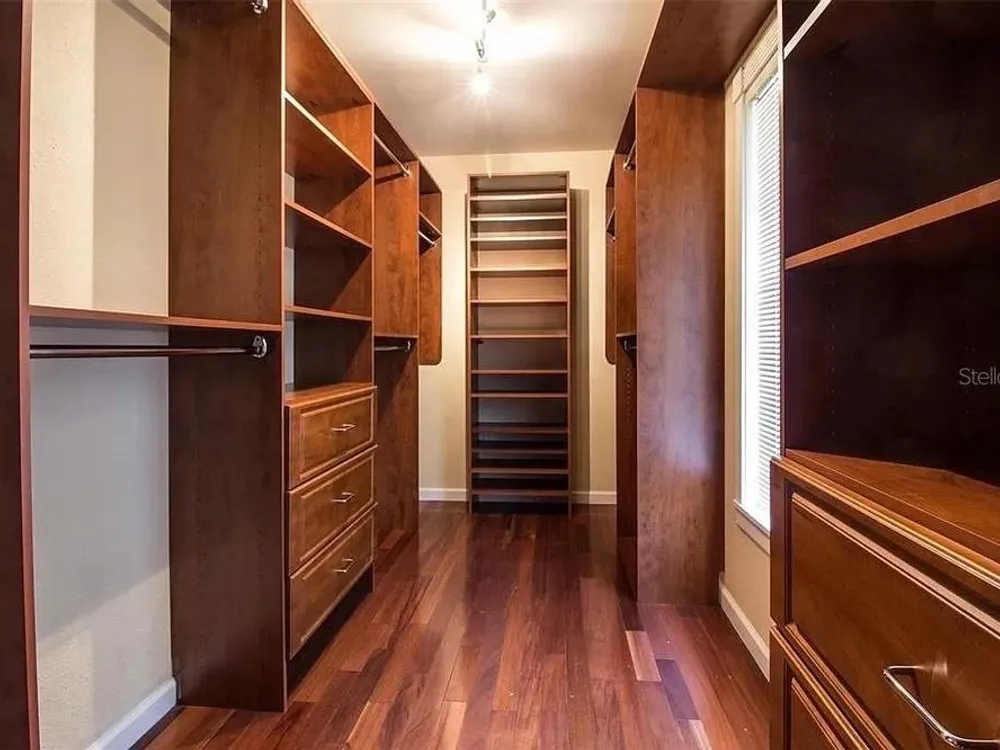 - Coffered Ceiling(s), Crown Molding, Upper Level Primary, Solid Surface Counters, Solid-Wood Cabinets, Stone Counters