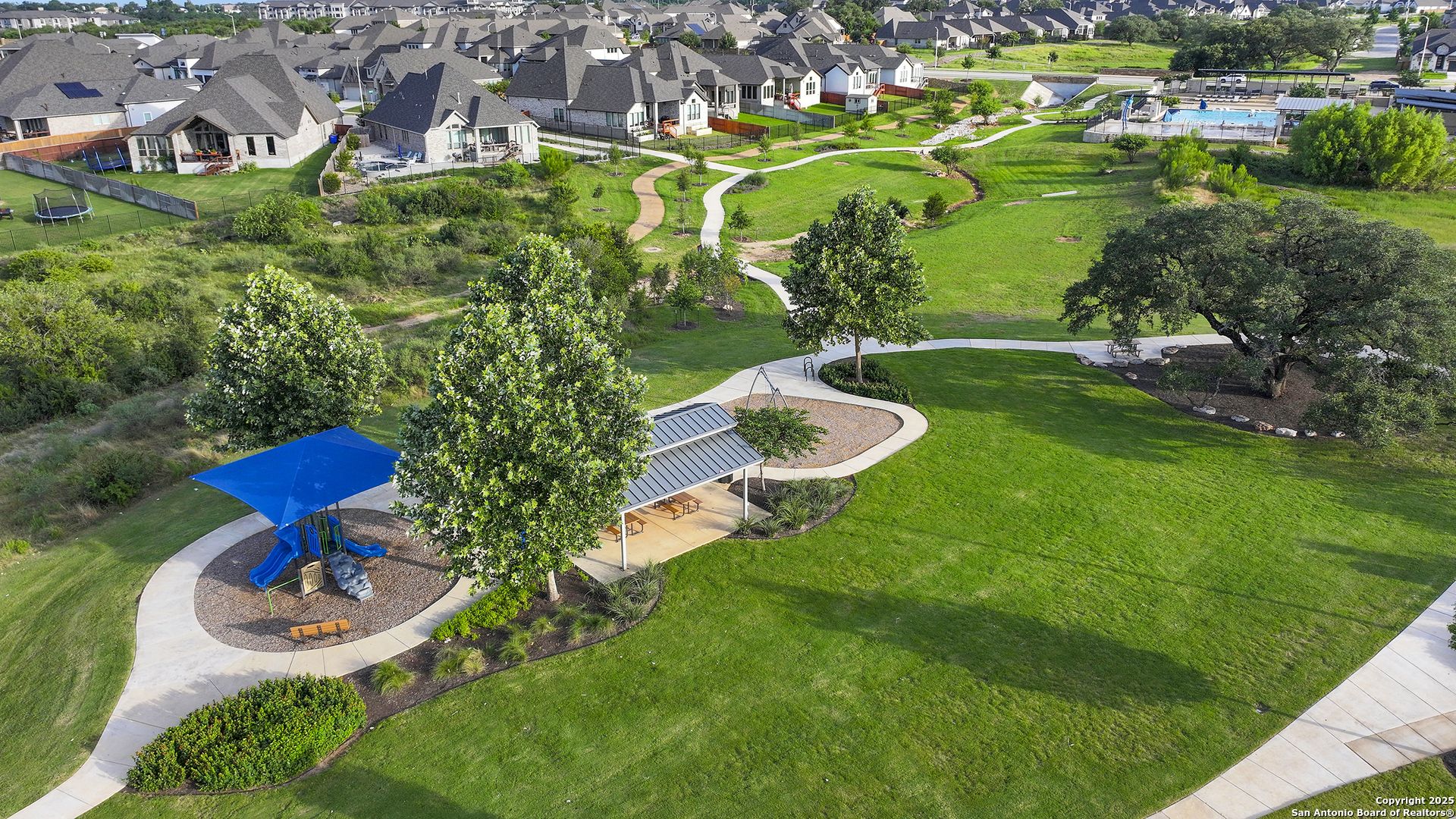 Come live in the well-developed (and still growing) community filled with amenities for the entire family! This two-story corner lot home, built by Gehan Homes, now Brightland Homes, has several upgrades to include extra lighting, outdoor soffit outlets for holiday lights, molding on kitchen cabinets, window blinds and more. Downstairs primary bedroom has larger walk-in closet and bathroom with double vanity and tub/shower combo. Wait until you go up the open stairwell to see to both the entryway and back to the living room and kitchen areas! There is more! From the upstairs game-room, walk out to the covered patio and enjoy the miles of beauty. Verifying correct square footage with builder documents to Appraisal District, closer to 2100 sf. Veramendi is a Planned Improvement District - PID for taxing purposes.