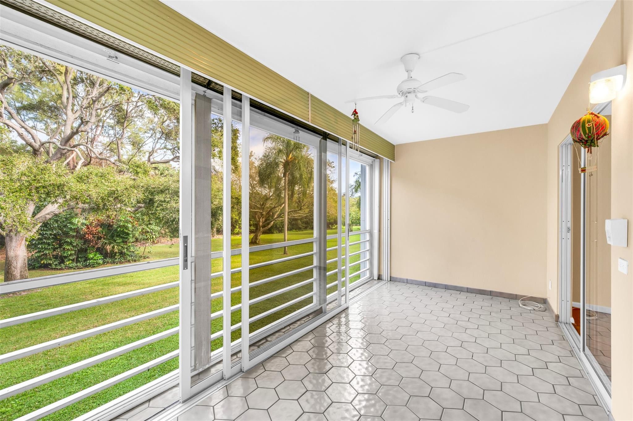 PRICED TO SELL and easy to show this huge 934 square foot condo in the covetedOakridge F building. Location matters and the north facing 140 square foot lanaiwith walkout access from both bedrooms has floor to ceiling sliding doorsoverlooking the only nature preserve in the village. The kitchen has long granitecountertops, custom kitchen cabinetry/tile work, recessed lighting and windowsfacing the breezy waterfront BBQ area. High-end wood laminate flooringthroughout living room and bedrooms. New AC (2025), New Roof (2025), tanklesswater heater, accordion shutters front and back, strong building reserves, stepsfrom 2 pools and walking path to clubhouse. Vacant with lockbox. Come and see this clean, green and incredibly serene condo.