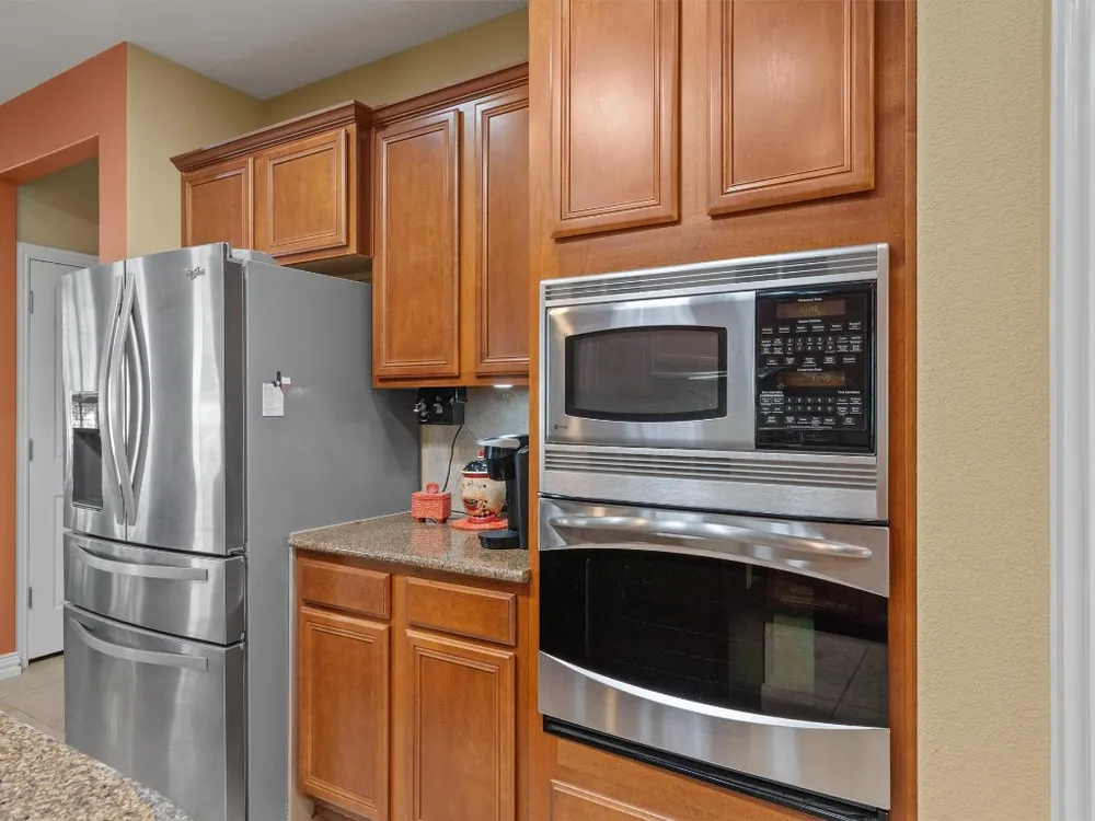 - Built-In Electric Oven, Dishwasher, Gas Cooktop, Disposal, Gas Water Heater, Microwave, Plumbed For Ice Maker, Water Softener Owned, Self Cleaning Oven, Stainless Steel Appliance(s), Vented Exhaust Fan
