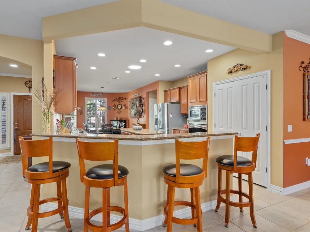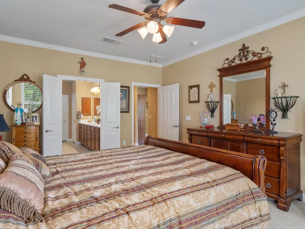 - Breakfast Bar, Ceiling Fan(s), Crown Molding, Separate/Formal Dining Room, Double Vanity, Entrance Foyer, French Door(s)/Atrium Door(s), Granite Counters, High Ceilings, Kitchen Island, Multiple Dining Areas, Main Level Primary, Open Floorplan, Pantry, Recessed Lighting, Solar Tube(s), Walk-In Closet(s)