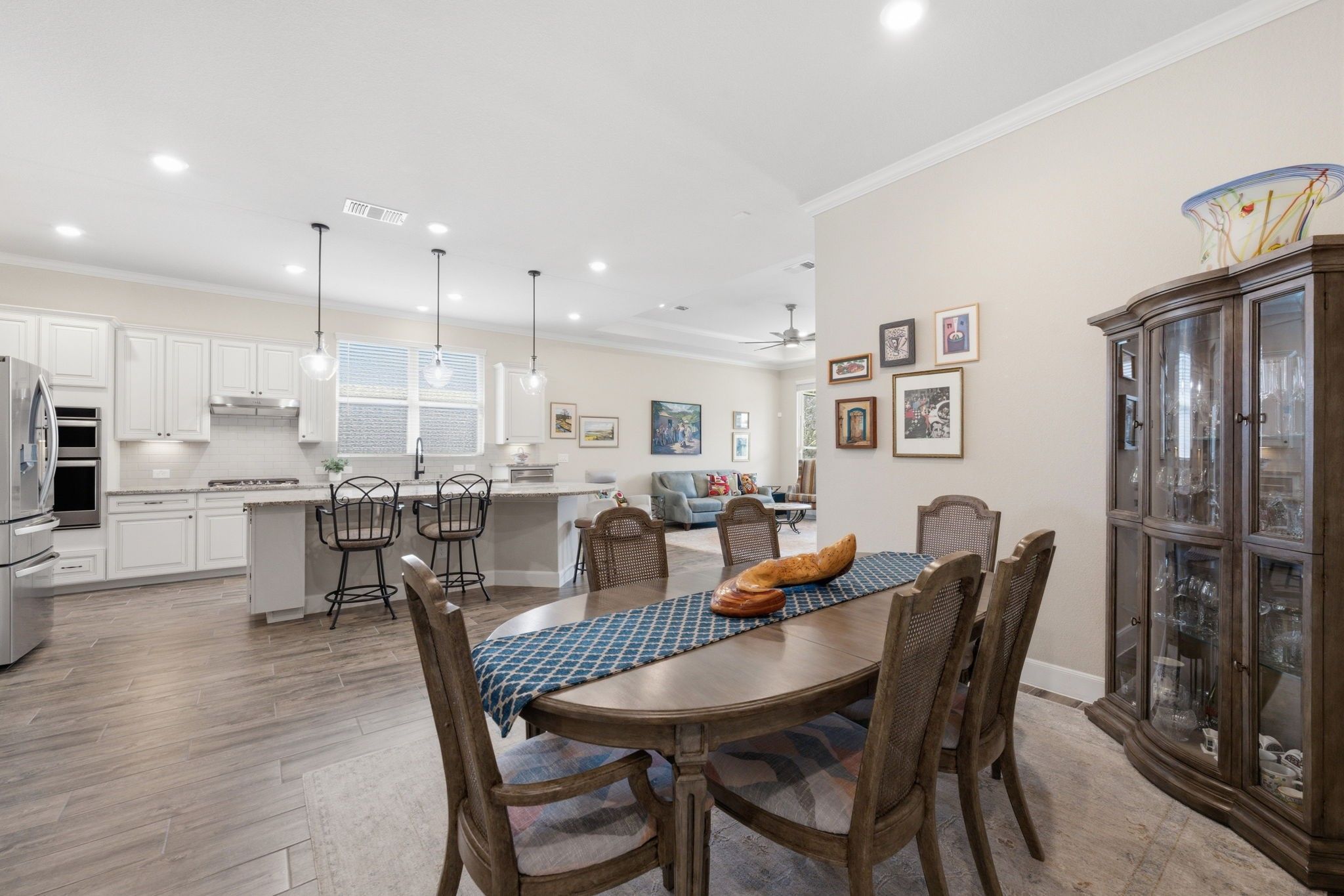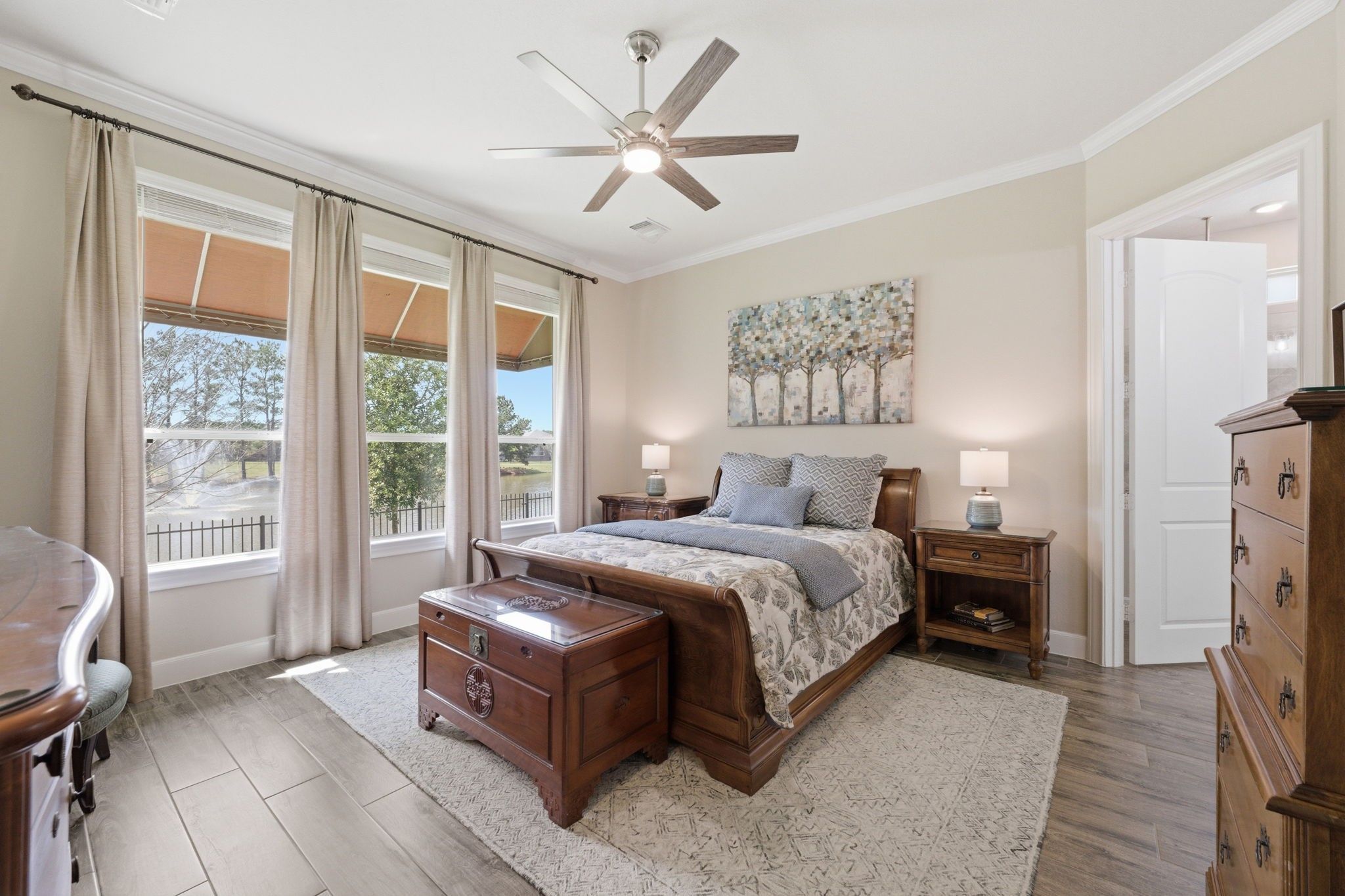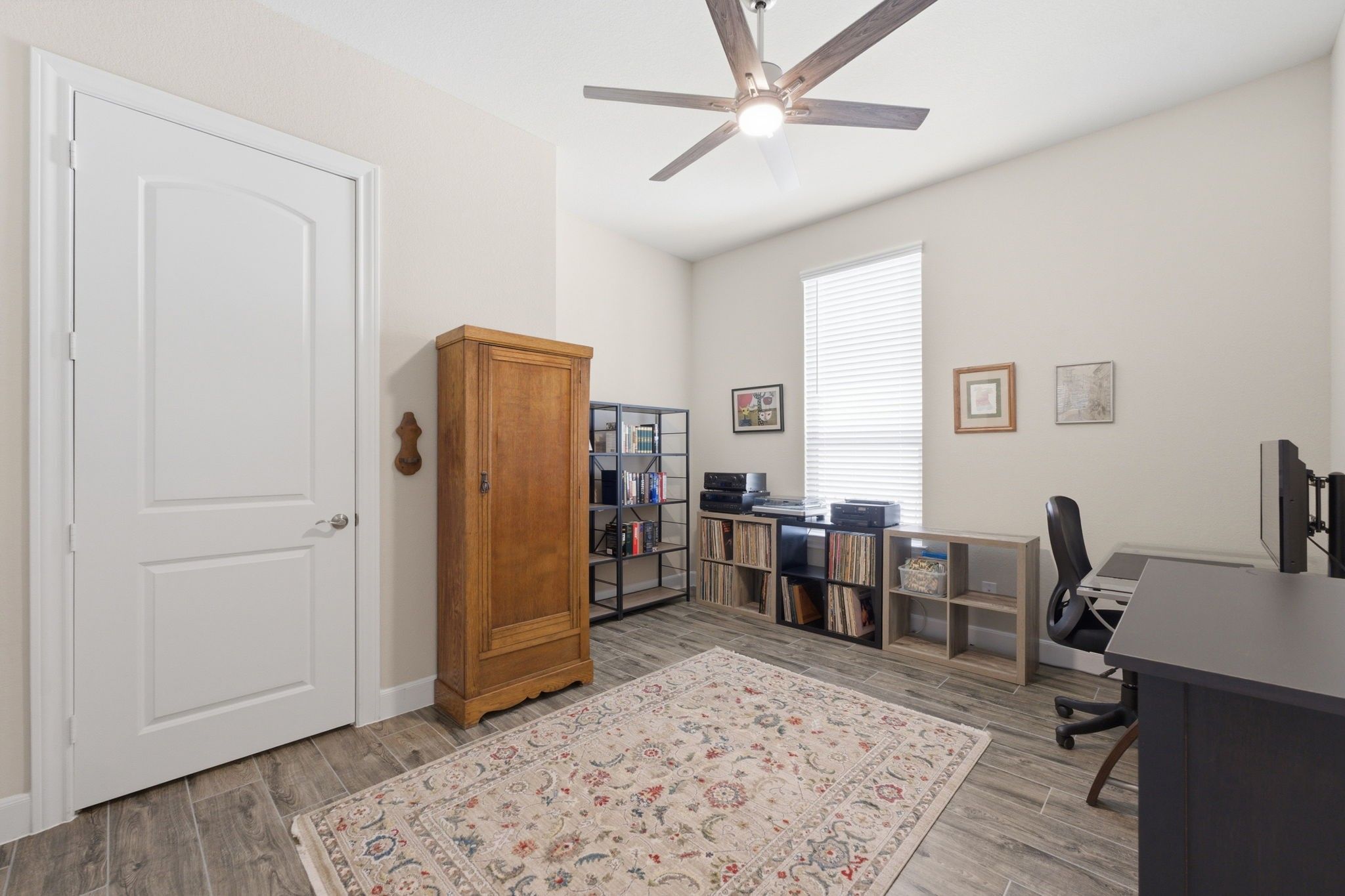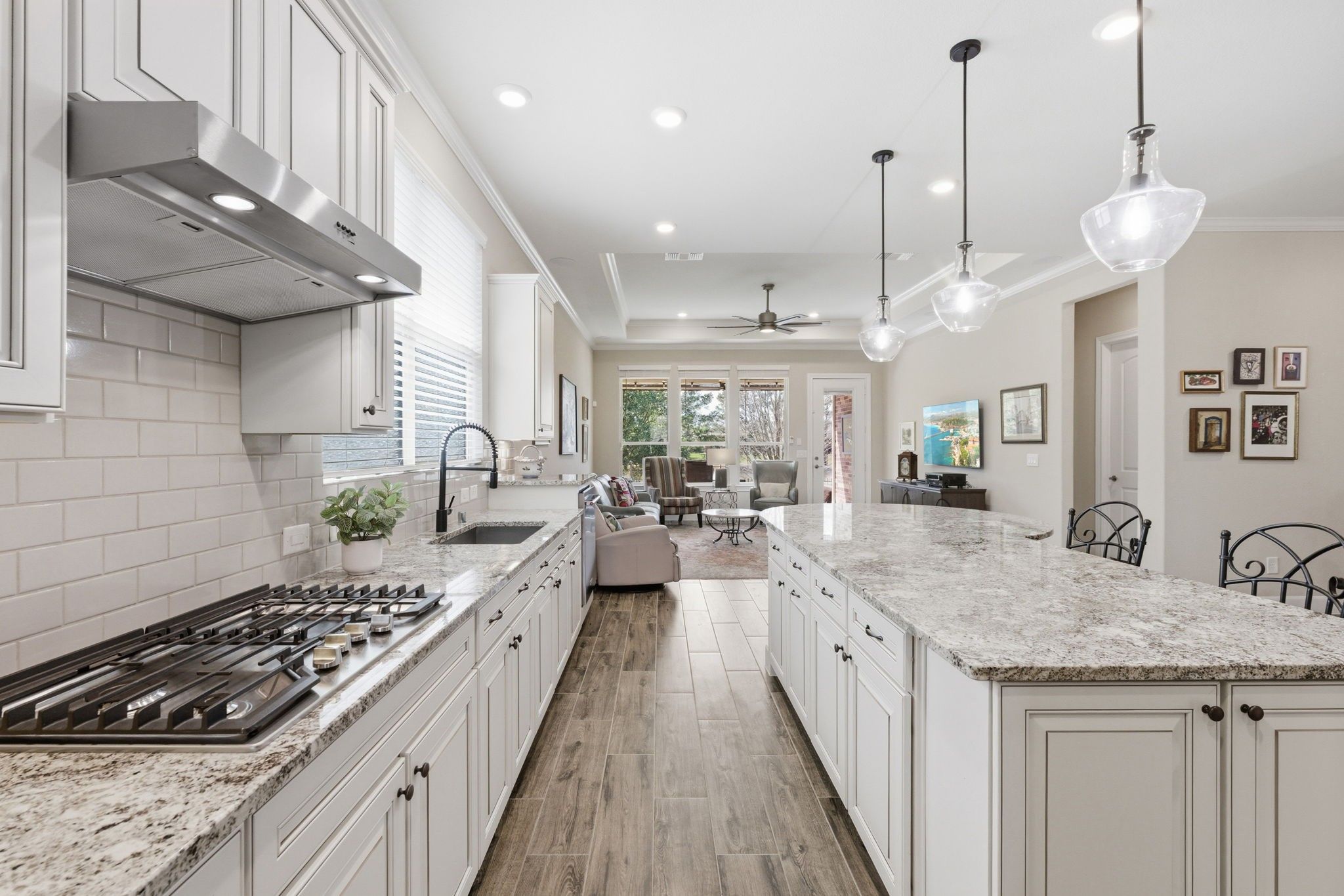 RARE FIND! WATERFRONT! Del Webb The Woodlands 55+ gated active-adult community! Beautifully maintained home with excellent curb appeal and manicured landscaping. This open-concept floor plan features a spacious living area with tray ceiling, abundant natural light, and wood-look tile flooring throughout—no carpet. Enjoy stunning pond views with a water feature from both the main living area and the primary suite. The island kitchen offers granite countertops, gas cooktop, stainless appliances, built-in oven and microwave, subway tile backsplash, ample cabinet space, walk-in pantry, and a butler’s pantry—perfect for entertaining. The primary suite features an ensuite bath with double sinks, walk-in shower, and custom walk-in closet. The home includes a dedicated office/flex space and three bedrooms. Additional highlights include a full house generator. Relax on the covered patio with electric roll-down screen overlooking a peaceful water setting with ducks and birds. Move-in ready!