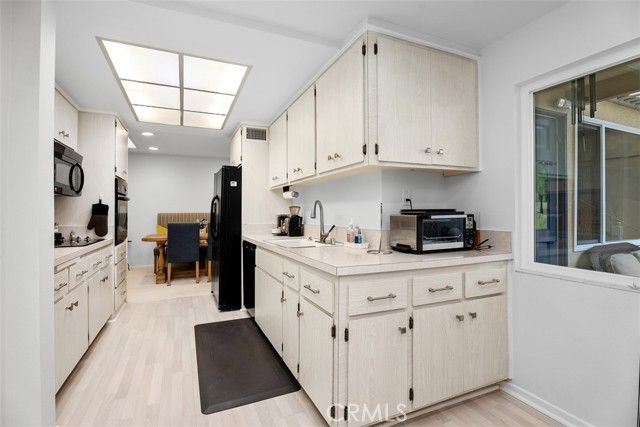 Welcome to the popular Cordoba model with expanded living area in the heart of Laguna Woods Village—a premier 55+ community known for its resort-style amenities and vibrant social life. This spacious single-level home offers two bedrooms and two bathrooms, highlighted by a generously sized living room with recessed lighting and an enclosed atrium that creates an ideal bonus space—perfect for a home office, formal dining area, art studio, or cozy reading lounge. The kitchen has been enhanced with additional square footage, providing a more comfortable layout with extra prep space and the option for expanded cabinetry. A convenient interior washer/dryer closet adds to the ease of everyday living. Recent improvements include new carpeting, fresh interior paint, and a clean, inviting palette throughout—ready for its next resident to move in and enjoy. Ideally located just steps from a tranquil park shaded by mature trees, this home also offers quick access to its carport and storage space, as well as nearby Gate 2 for effortless trips to shopping, dining, and transportation. Laguna Woods Village residents enjoy an unmatched array of amenities, including: • Over 100 hobby, fitness, and social clubs • Golf courses • Pools and spas • Tennis and pickleball courts • Fully equipped wood shop & arts studios • Fitness centers and walking trails • Billiards, theater, and community events
