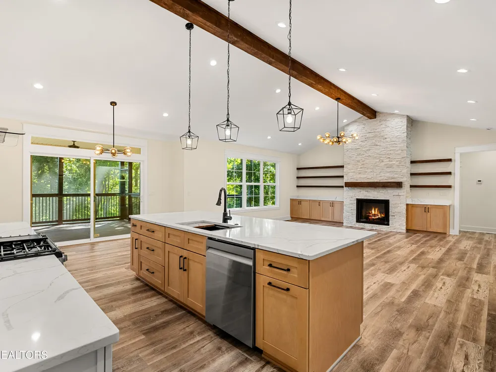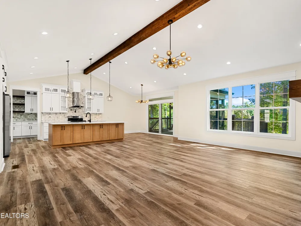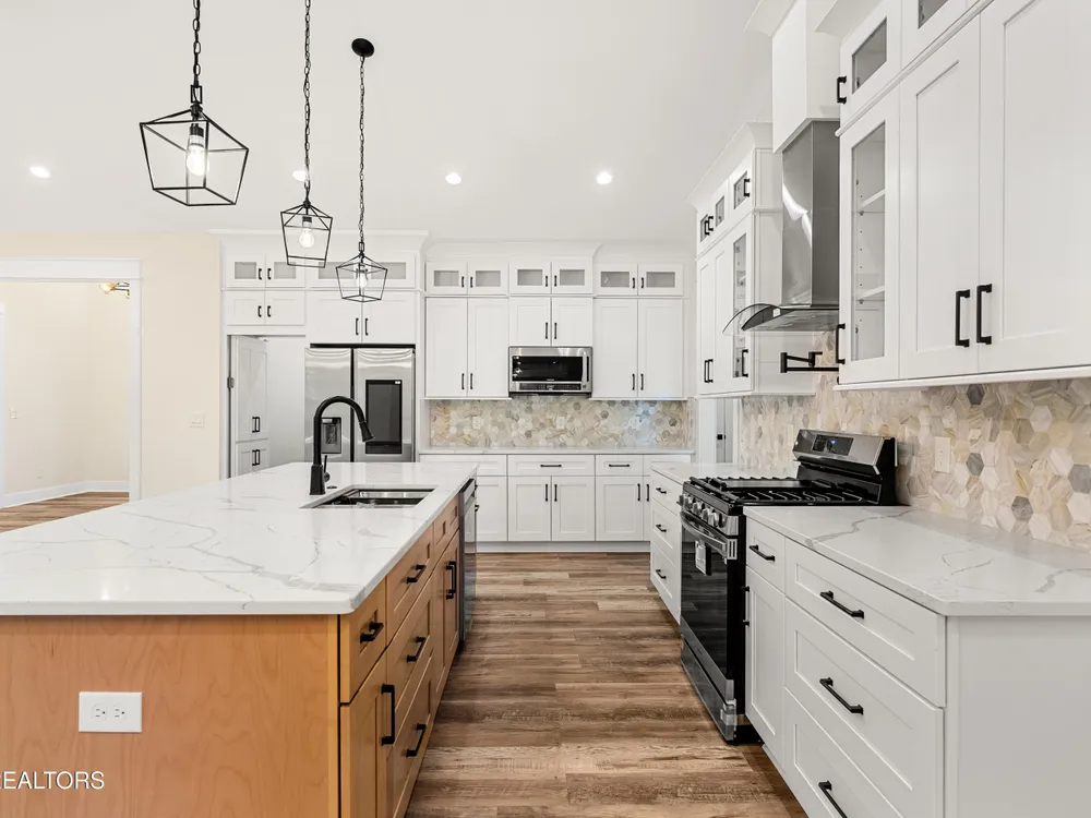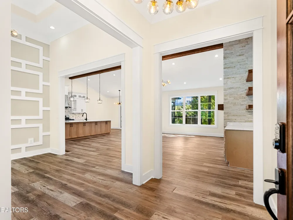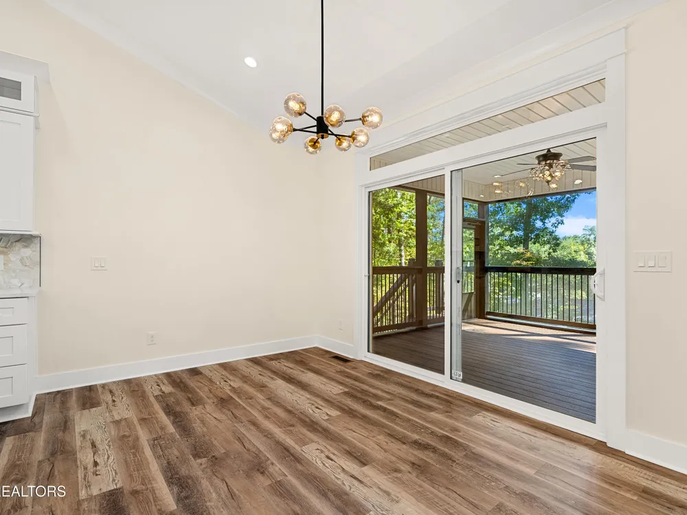 Spacious, well-appointed, and highly sought-after 3 bedroom, 2 bath floor plan now available in the desirable cul-de-sac of Toqua Shores! This 2,236 sq ft home offers abundant natural light, tasteful finishes, and a thoughtful layout ready for its first owners. The open living room features a vaulted ceiling with a decorative beam, floor-to-ceiling stone gas fireplace, and accent shelving that ties the space together. Chef's kitchen provides ample storage with soft-close cabinetry, hidden walk-in pantry, quartz countertops, beautiful backsplash, large island, SS appliances, gas range, pot filler, and a range hood. Butler's pantry makes entertaining effortless. The elevated formal dining room features tray ceiling and accent wall. Cozy primary suite boasts a tray ceiling with decorative beams, an accent wall, and a spa-inspired bath featuring double vanities, a large walk-in shower, spacious freestanding jetted tub, and a smart and heated seat toilet. Spacious custom closet completes the suite. Laminate flooring runs throughout (no carpet), and an well-appointed laundry room with extra cabinetry. Outdoor living is easy with common property in the back. Screened deck and open deck with a gas stub for grilling. Tall crawlspace with a concrete pad for extra storage. Oversized 3-car garage with epoxy floors. Don't miss the chance to make this remarkable home yours!