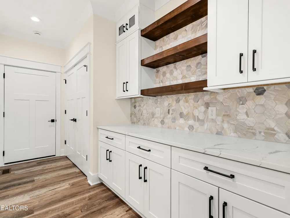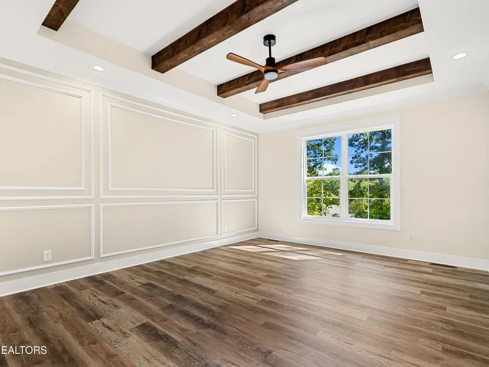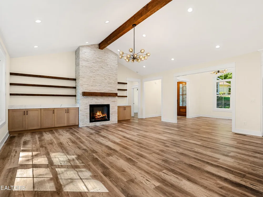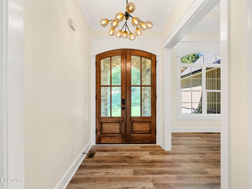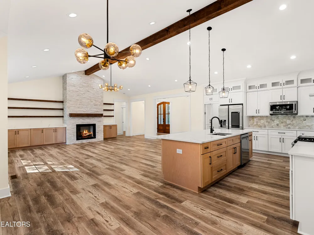 Spacious, well-appointed, and highly sought-after 3 bedroom, 2 bath floor plan now available in the desirable cul-de-sac of Toqua Shores! This 2,236 sq ft home offers abundant natural light, tasteful finishes, and a thoughtful layout ready for its first owners. The open living room features a vaulted ceiling with a decorative beam, floor-to-ceiling stone gas fireplace, and accent shelving that ties the space together. Chef's kitchen provides ample storage with soft-close cabinetry, hidden walk-in pantry, quartz countertops, beautiful backsplash, large island, SS appliances, gas range, pot filler, and a range hood. Butler's pantry makes entertaining effortless. The elevated formal dining room features tray ceiling and accent wall. Cozy primary suite boasts a tray ceiling with decorative beams, an accent wall, and a spa-inspired bath featuring double vanities, a large walk-in shower, spacious freestanding jetted tub, and a smart and heated seat toilet. Spacious custom closet completes the suite. Laminate flooring runs throughout (no carpet), and an well-appointed laundry room with extra cabinetry. Outdoor living is easy with common property in the back. Screened deck and open deck with a gas stub for grilling. Tall crawlspace with a concrete pad for extra storage. Oversized 3-car garage with epoxy floors. Don't miss the chance to make this remarkable home yours!