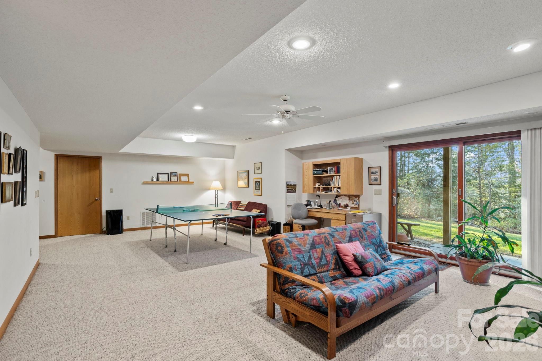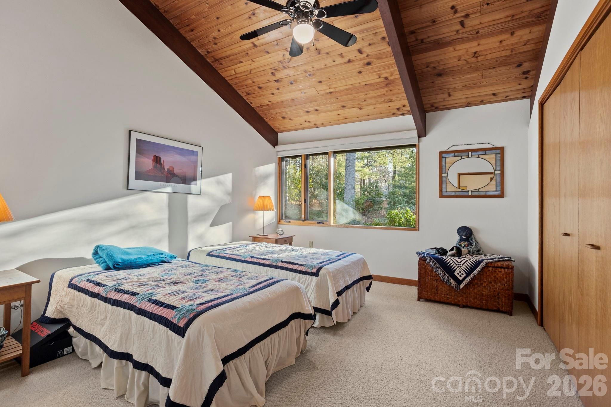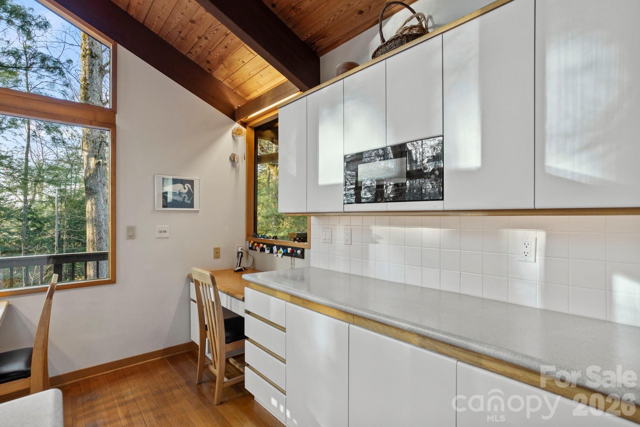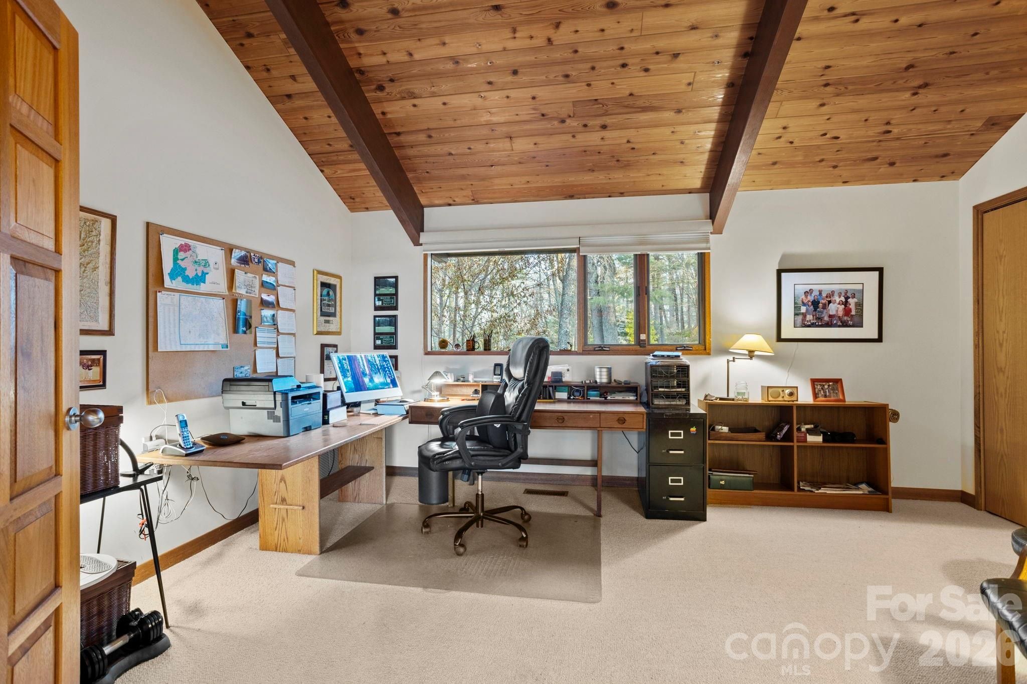 One-of-a-Kind Architectural Masterpiece in Kenmure. Exceptional and truly one-of-a-kind, this stunning residence is located in prestigious Kenmure, a gated golf course community and is perfectly situated on a private, corner lot spanning over an acre of natural wooded beauty. A level circular driveway welcomes you to this remarkable home offering both convenience and impressive curb appeal. Designed in a distinctive deck house style, this 3-bedroom, 3-bath home showcases a striking blend of modern and contemporary architecture with an expansive open floor plan. Floor-to-ceiling windows throughout flood the home with natural light while capturing serene views of the private, park-like setting. Vaulted tongue-and-groove stained wood ceilings with exposed beams and rich mahogany trim add warmth and character throughout. The main level features a welcoming foyer with a unique solid wood door opening to a dramatic great room with a floor-to-ceiling stone fireplace flanked by built-in bookshelves and a wall of glass. The great room flows seamlessly into the dining area with sliding doors leading to a spacious deck—perfect for entertaining or relaxing in nature. A large study with closet offers flexibility for a home office or additional guest space. The open layout continues into the expansive kitchen, featuring vaulted ceilings, a wall of windows, abundant counter space and an island with gas cooktop. A breakfast area and cozy den—complete with another wall of windows and access to the deck provide inviting spaces to gather and unwind. The primary suite is a private retreat with a wall of windows and a spa-like bath featuring dual vanities, a whirlpool tub, walk-in shower and generous walk-in closet. Two guest bedrooms, a full bath, and a well-appointed laundry room with cabinetry and sink complete the main level. The lower level offers a family/recreation room with a dramatic floor-to-ceiling fireplace, large sliding doors to the patio and ample space for a game or billiards area. A full bath and two large storage rooms—one ideal for a workshop—add to the home’s versatility. Enjoy the best of mountain living from the expansive deck or lower-level patio, both overlooking the beautifully landscaped, private setting. This rare property offers exceptional tranquility while being conveniently located near community amenities and the entrance gate. A truly special home offering unmatched design, privacy, and lifestyle.