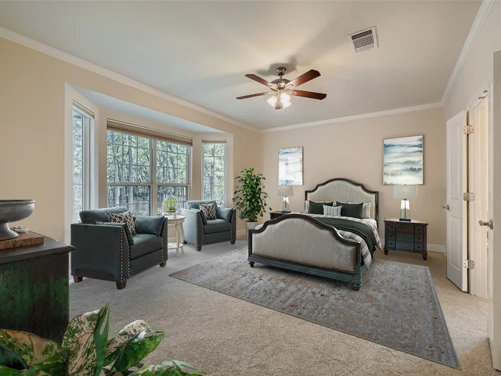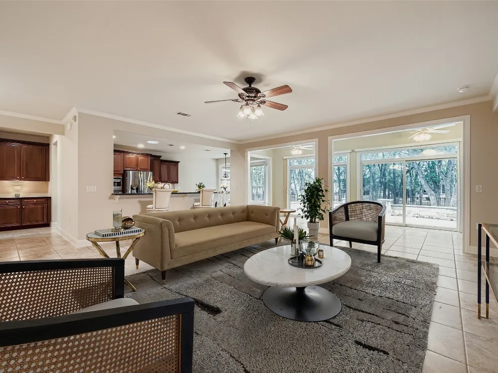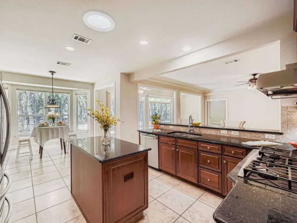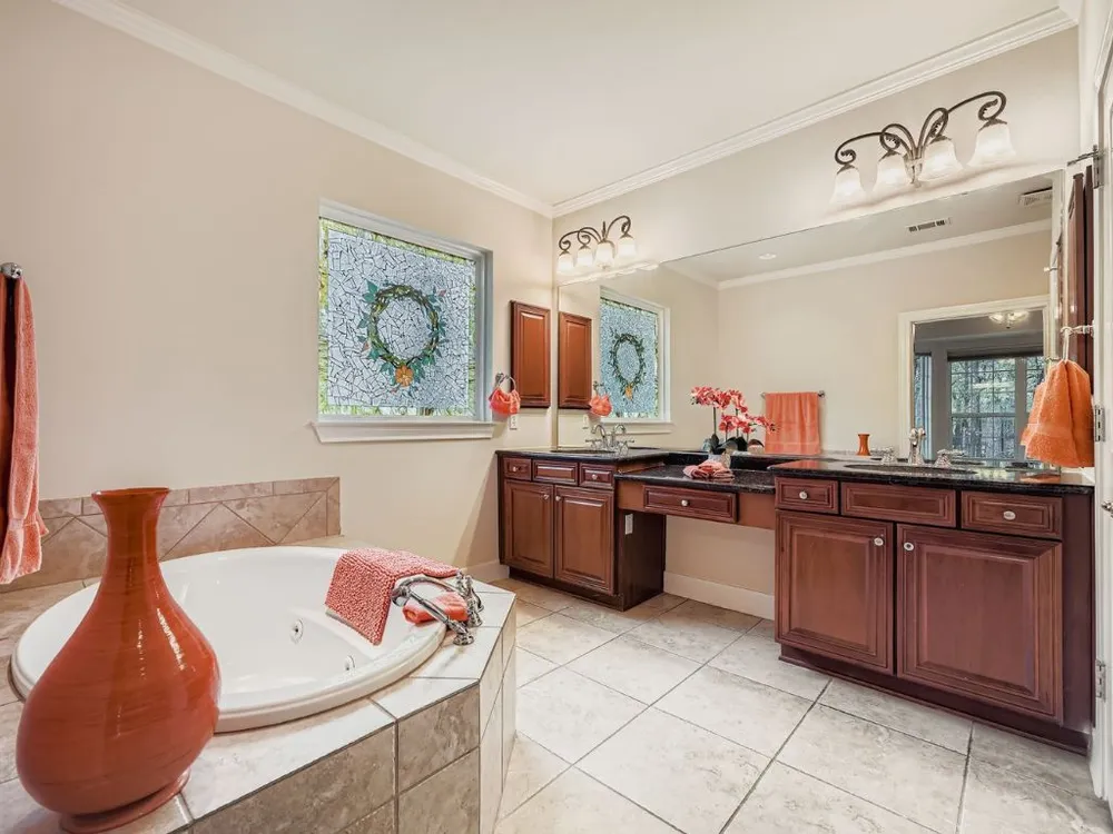 - Breakfast Bar, Built-in Features, Ceiling Fan(s), Crown Molding, Double Vanity, Entrance Foyer, French Door(s)/Atrium Door(s), Granite Counters, In-Law Floorplan, Kitchen Island, Main Level Primary, Open Floorplan, Pantry, Bar