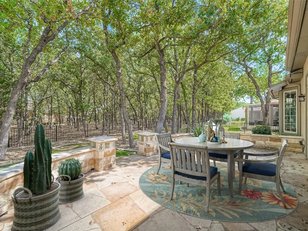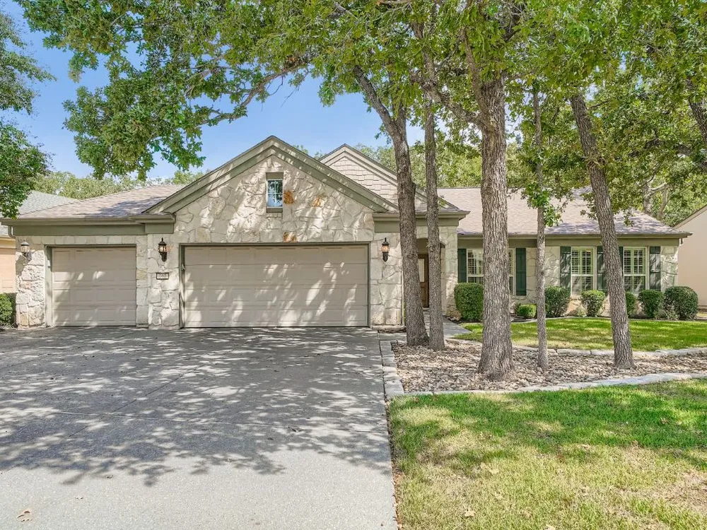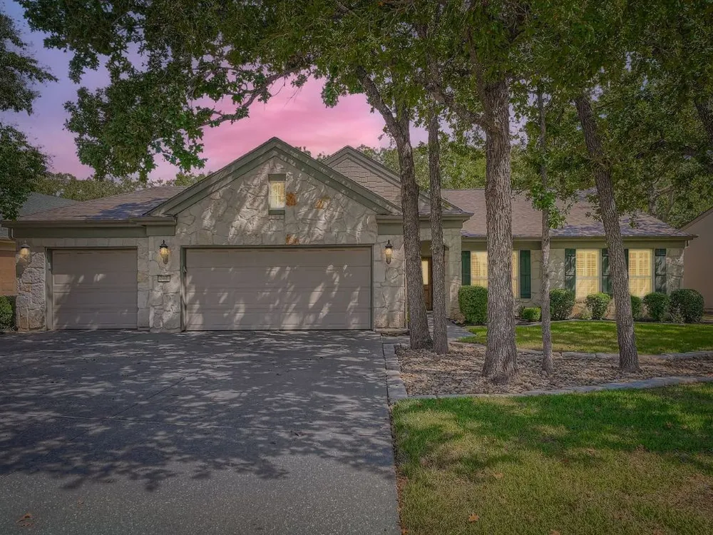 A Stunning 3-bedroom, 2 baths, AND, a 3-car garage home located among towering Oak Trees on a private cul-de-sac, in Iconic Sun City Texas can be yours! This home is bursting with curb appeal! Boasting of a classic stone exterior, professional landscaping, and an elegant front porch that invites you inside. Sleek tile flooring greets you at the Entry and flows throughout the open living areas. Living/ Dining areas are enhanced with elegant crown molding and Plantation shutters. A delightful Formal Dining opens to the Living Spaces, and a Butler Pantry leads to the kitchen which features a large center island, sleek granite countertops, quality stainless appliances including a gas cooktop. A spectacular bay windowed Breakfast area gives view of the Oak Tree forest, which is home to deer and turkeys. The living areas and casual dining adjoin a cheerful Sunroom that expands into a flex area to delight you. The primary bedroom is yours to claim with its beautiful bay window sitting area, en-suite bath with soaking tub and separate walk-in shower, granite top, high/low double vanity and oversized closet complete this retreat. Privately situated are 2 separate guest rooms. Current owners used the 3rd for a Study/office. Back yard is surrounded by a wrought iron fence and lush with greenery and mature trees and privacy. Sun City offers luxurious amenities including state-of-the art fitness centers, swimming pools, 3 private golf courses, pickle ball courts, tennis courts, more than 50 chartered clubs and interest groups and more. Schedule a showing today.