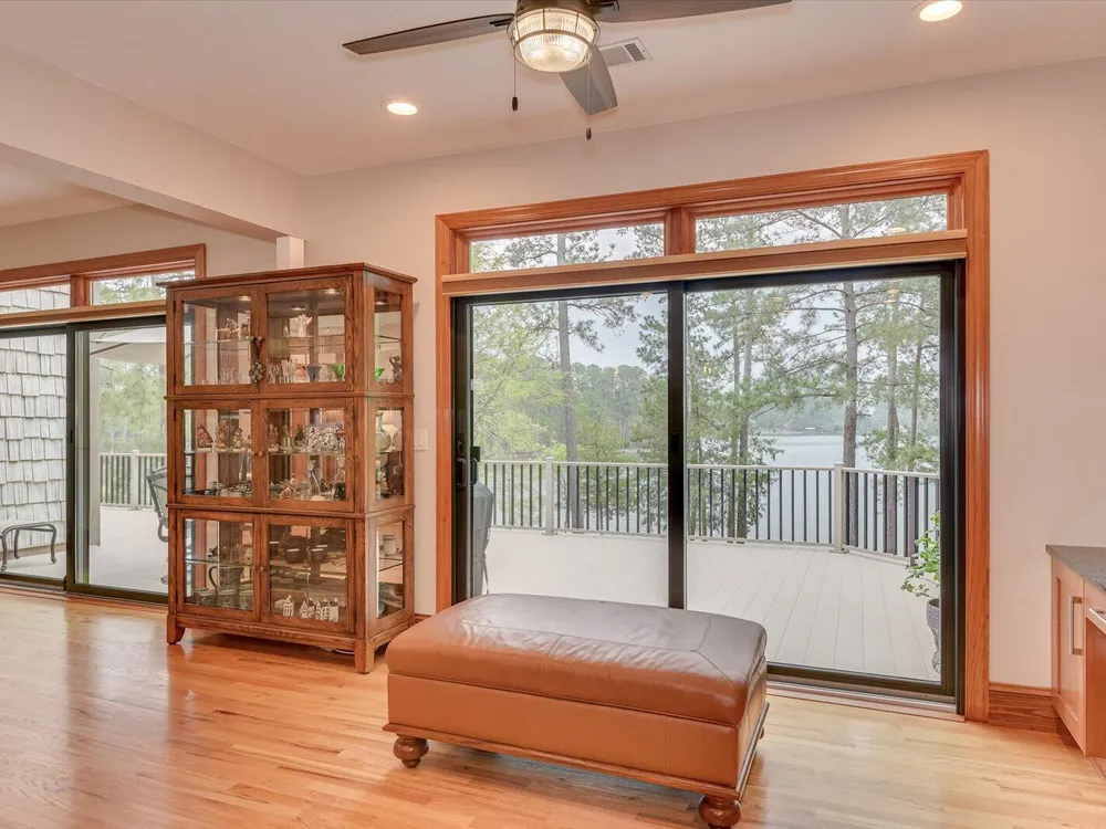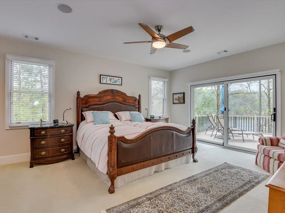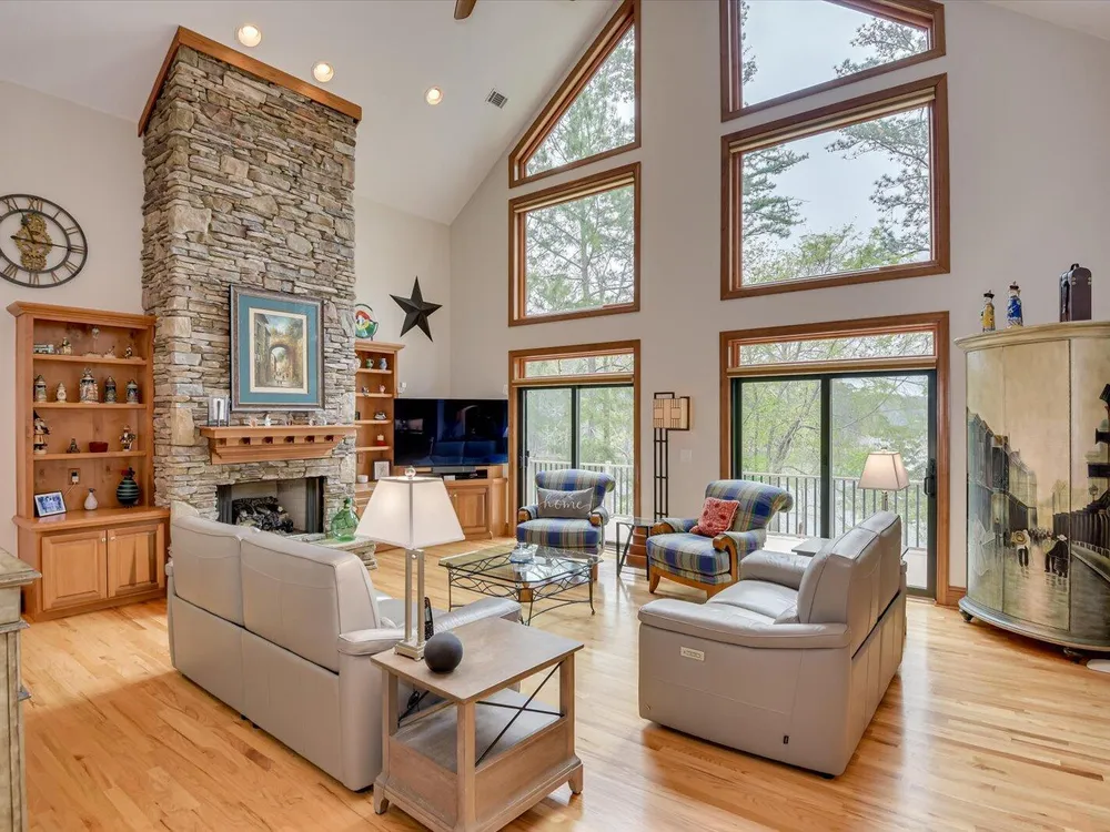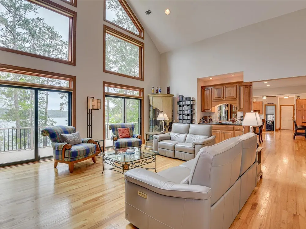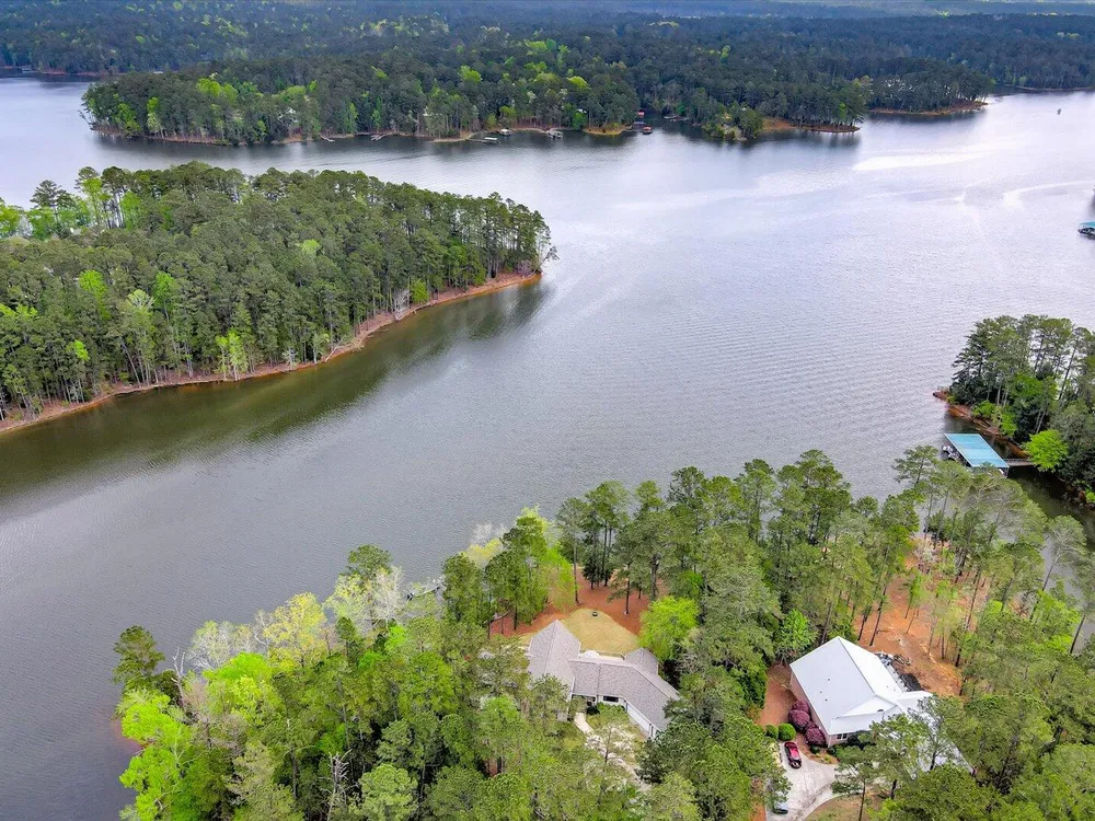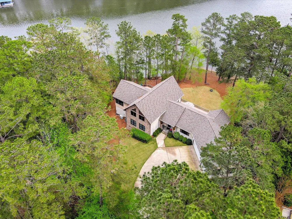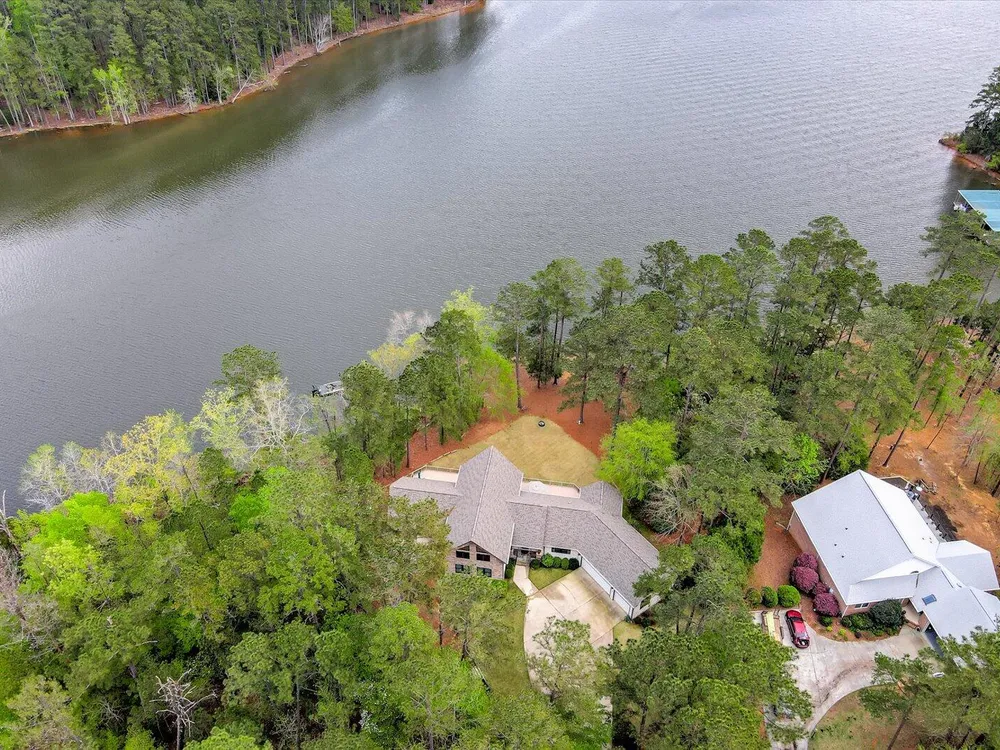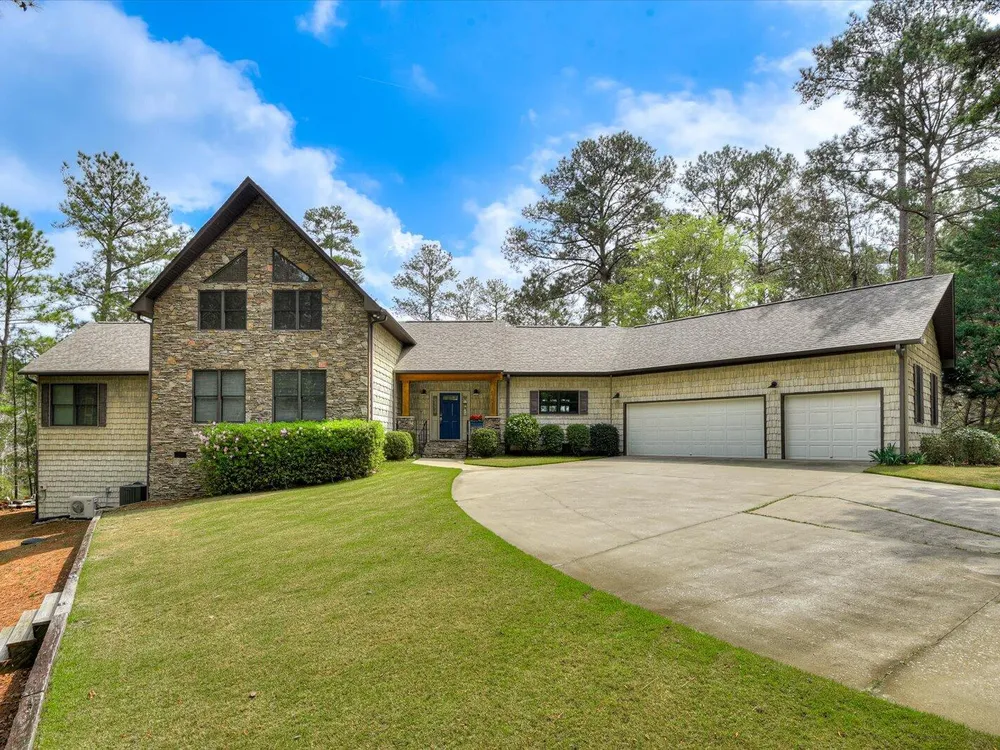 Discover unparalleled lakefront living in Savannah Lakes Village, boasting what is perhaps the most spectacular lot on 70,000-acre Lake Thurmond. This exceptional property features nearly 400 feet of pristine shoreline and a gentle slope to the water, where miles of unobstructed lake views unfold. Under brushed and landscaped to reveal the full majesty of the water. A 24-foot covered dock slip, leased through 2056, will transfer with this property.The main level is open concept with beautifully refinished wood flooring for seamless living and large windows capturing breathtaking lake views. The living room features a stunning stacked stone fireplace with vaulted ceiling and wet bar creating an inviting atmosphere. An expansive upstairs loft with half bath overlooks the living room and offers panoramic lake views. Next step into the kitchen of your dreams featuring a dual fuel, 36'' Wolf range with 4 burners and an infra-red griddle. The maple cabinets, with specialized features, are custom, full overlay built by Crawford Cabinets. Blue Pearl granite countertops with a Blanco Silgranit sink and all stainless appliances finish off this gorgeous space. You will love the laundry room with its custom pantry and cabinets, stacked full-size washer and dryer, large stainless-steel laundry sink plus unique and handy overhead drying rack. A charming, heated and cooled four season sunroom extends the living space just steps from the kitchen and leads out to the expansive, no maintenance, aluminum deck.The over 625 square foot primary suite, located on the main level, is a true retreat featuring a luxury en-suite bath with his and her vanities, a jetted Jacuzzi tub, over-sized walk-in shower, heated tile floors, water closet and linen cupboard. This suite also has a huge walk-in closet and direct access to the deck. Two additional main level bedrooms share a unique jack-and-jill bathroom each having their own private water closet with a shared tub/shower combo between.The finished lower level is perfect for entertaining, or guest accommodations, featuring a family room with fireplace, wet bar, 3/4 bath and bedroom with oversized walk-in closet. A golf cart garage and climate-controlled storage complete this level. From here step out onto the large, stamped concrete patio and enjoy the hanging swings and breath-taking views of the lake. You will also find an additional storage room in this space. Important information to know:New roof installed 20204 separate Wi-Fi heat pumps2 water heaters (1 tankless Rinnai which supplies all bathrooms with endless hot water and a 50-gallon electric water heater for kitchen, laundry and wet bars)RO system at kitchen sink300-gallon leased, buried propane tank on property2 water meters (sewage is not paid on 2nd meter)Tara golf course, River Grille and Recreation Center are all within a mile of this quiet neighborhood.This home offers an irreplaceable combination of spectacular view, gentle waterfront access, and luxurious amenities, plus a 3-car garage with Genie Smart Wi-Fi door openers with battery back-up. The cost and effort to replicate this unique home and setting would be substantial. Schedule your private showing to truly experience its beauty.