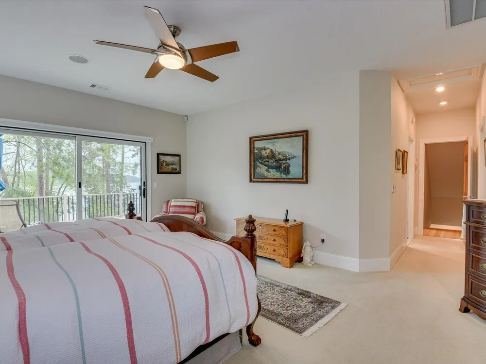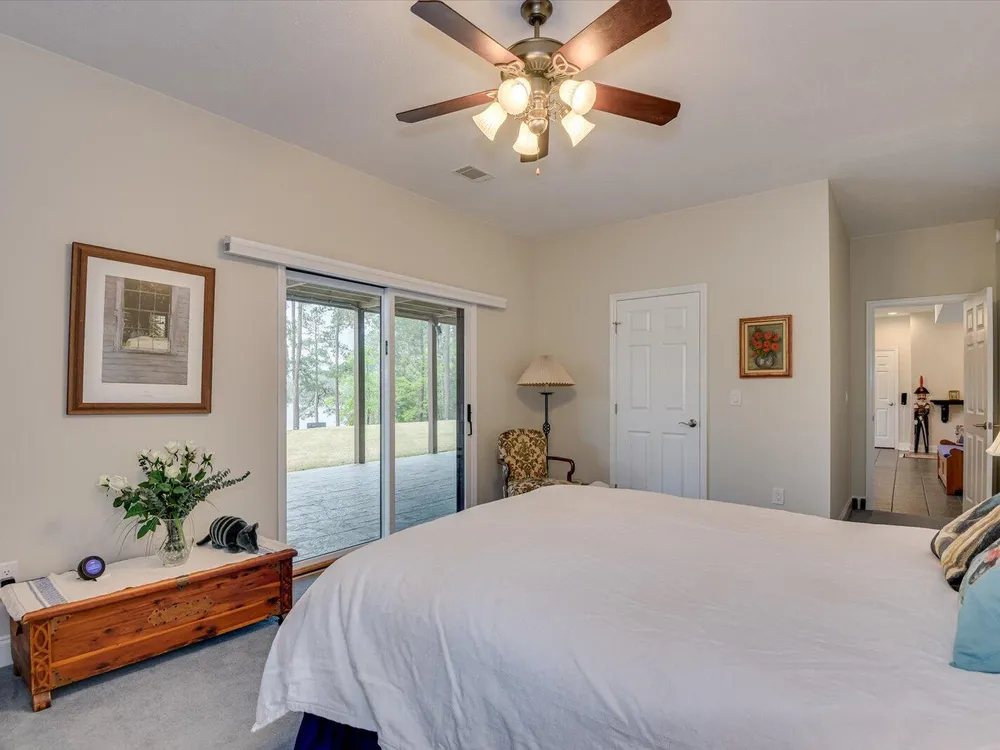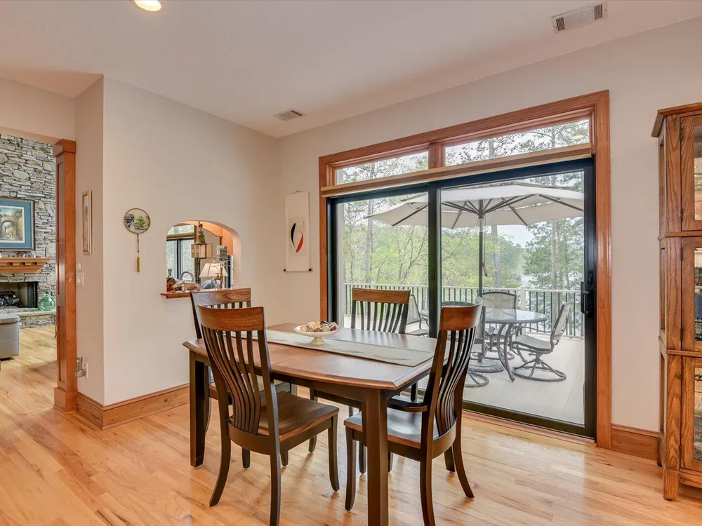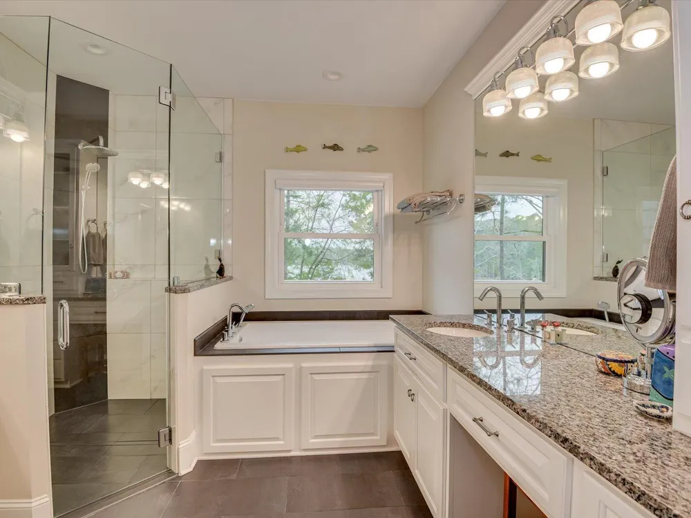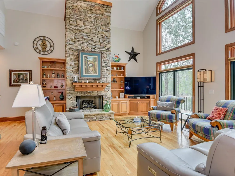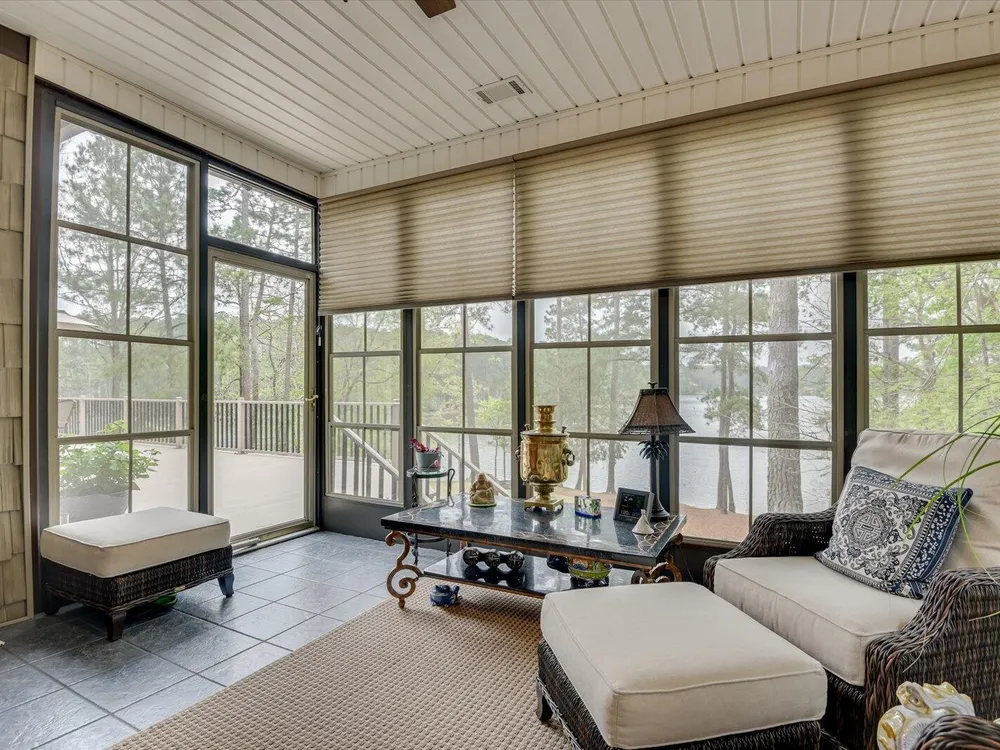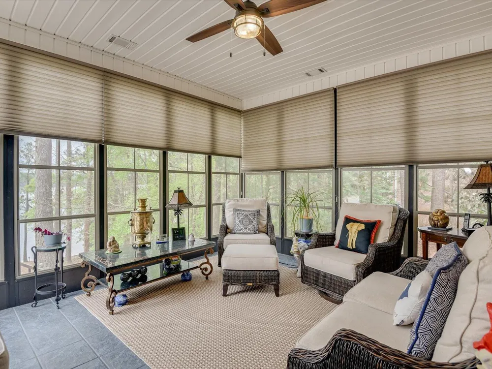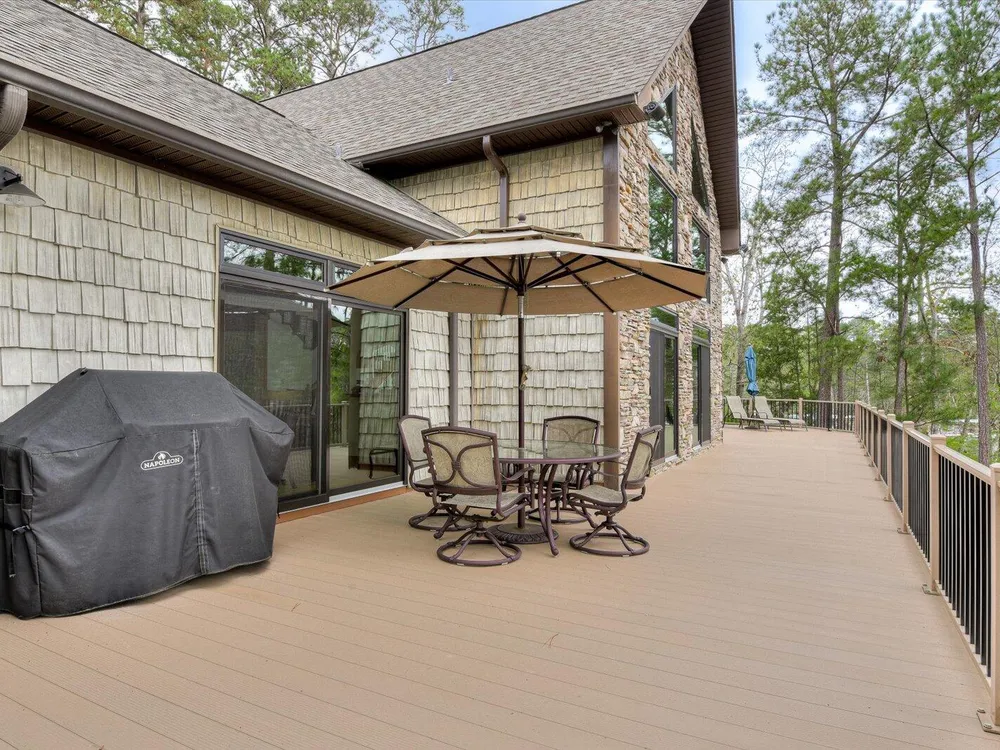 Discover unparalleled lakefront living in Savannah Lakes Village, boasting what is perhaps the most spectacular lot on 70,000-acre Lake Thurmond. This exceptional property features nearly 400 feet of pristine shoreline and a gentle slope to the water, where miles of unobstructed lake views unfold. Under brushed and landscaped to reveal the full majesty of the water. A 24-foot covered dock slip, leased through 2056, will transfer with this property.The main level is open concept with beautifully refinished wood flooring for seamless living and large windows capturing breathtaking lake views. The living room features a stunning stacked stone fireplace with vaulted ceiling and wet bar creating an inviting atmosphere. An expansive upstairs loft with half bath overlooks the living room and offers panoramic lake views. Next step into the kitchen of your dreams featuring a dual fuel, 36'' Wolf range with 4 burners and an infra-red griddle. The maple cabinets, with specialized features, are custom, full overlay built by Crawford Cabinets. Blue Pearl granite countertops with a Blanco Silgranit sink and all stainless appliances finish off this gorgeous space. You will love the laundry room with its custom pantry and cabinets, stacked full-size washer and dryer, large stainless-steel laundry sink plus unique and handy overhead drying rack. A charming, heated and cooled four season sunroom extends the living space just steps from the kitchen and leads out to the expansive, no maintenance, aluminum deck.The over 625 square foot primary suite, located on the main level, is a true retreat featuring a luxury en-suite bath with his and her vanities, a jetted Jacuzzi tub, over-sized walk-in shower, heated tile floors, water closet and linen cupboard. This suite also has a huge walk-in closet and direct access to the deck. Two additional main level bedrooms share a unique jack-and-jill bathroom each having their own private water closet with a shared tub/shower combo between.The finished lower level is perfect for entertaining, or guest accommodations, featuring a family room with fireplace, wet bar, 3/4 bath and bedroom with oversized walk-in closet. A golf cart garage and climate-controlled storage complete this level. From here step out onto the large, stamped concrete patio and enjoy the hanging swings and breath-taking views of the lake. You will also find an additional storage room in this space. Important information to know:New roof installed 20204 separate Wi-Fi heat pumps2 water heaters (1 tankless Rinnai which supplies all bathrooms with endless hot water and a 50-gallon electric water heater for kitchen, laundry and wet bars)RO system at kitchen sink300-gallon leased, buried propane tank on property2 water meters (sewage is not paid on 2nd meter)Tara golf course, River Grille and Recreation Center are all within a mile of this quiet neighborhood.This home offers an irreplaceable combination of spectacular view, gentle waterfront access, and luxurious amenities, plus a 3-car garage with Genie Smart Wi-Fi door openers with battery back-up. The cost and effort to replicate this unique home and setting would be substantial. Schedule your private showing to truly experience its beauty.