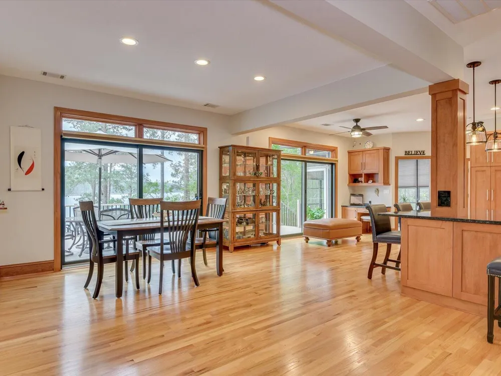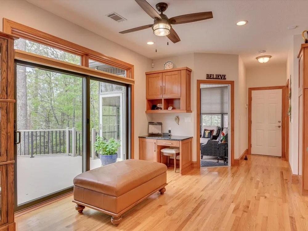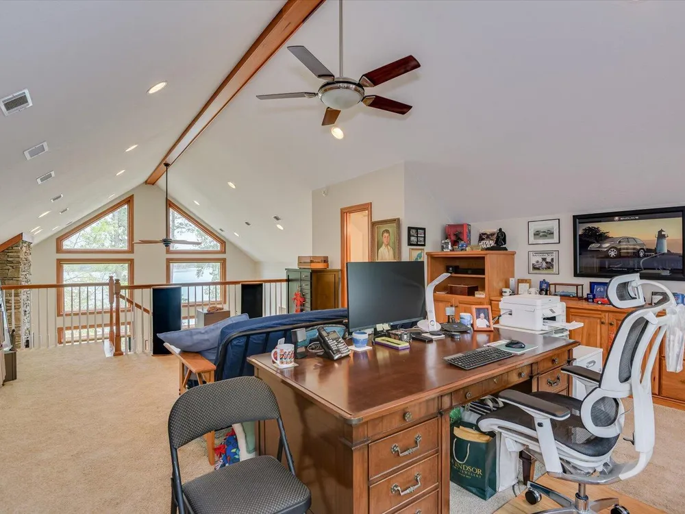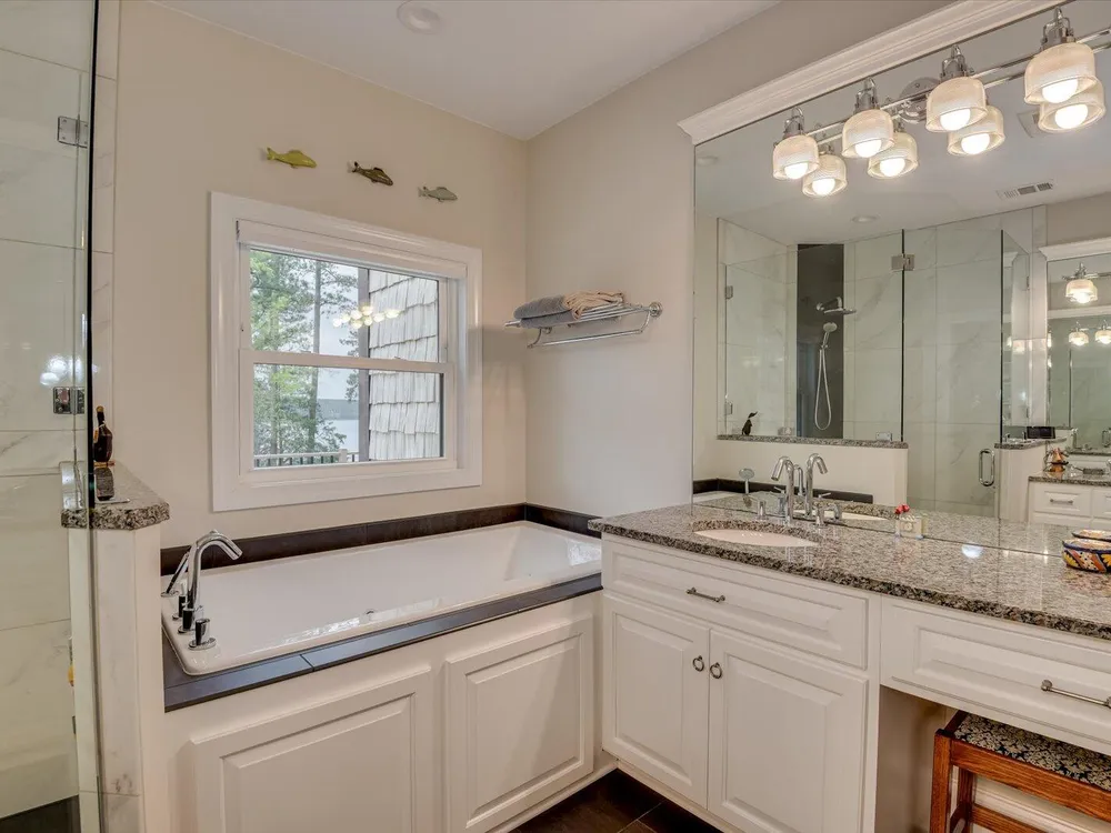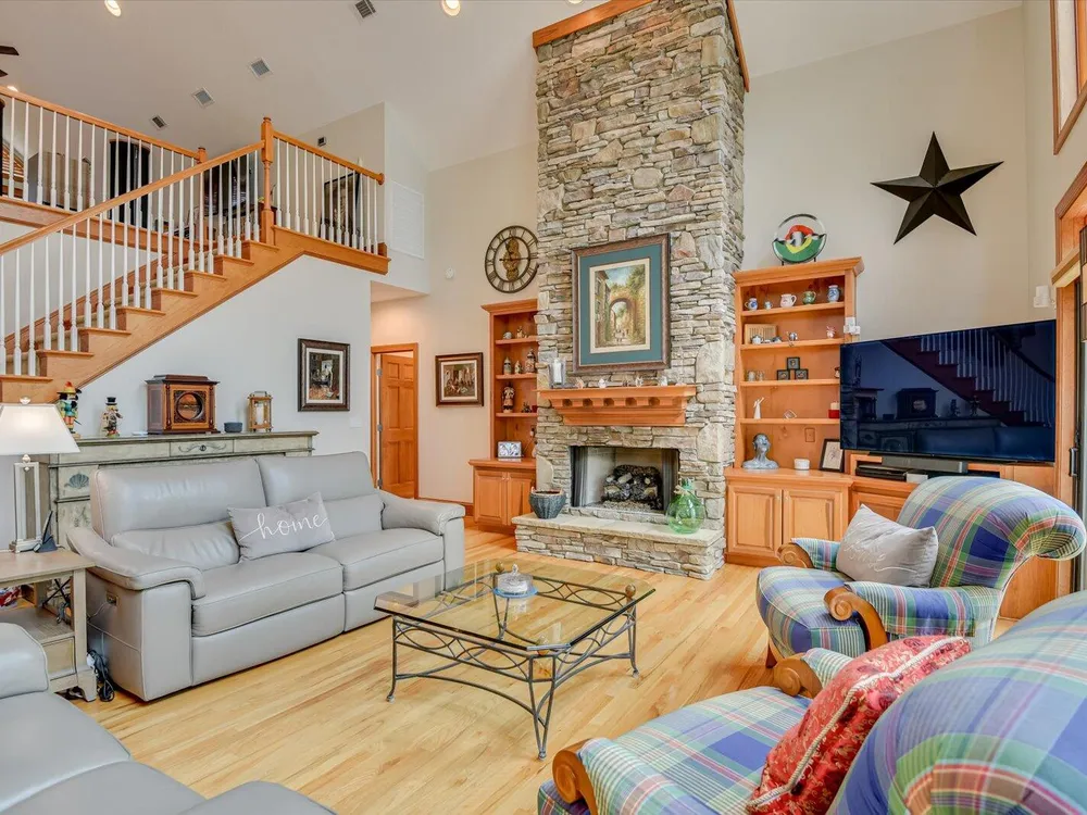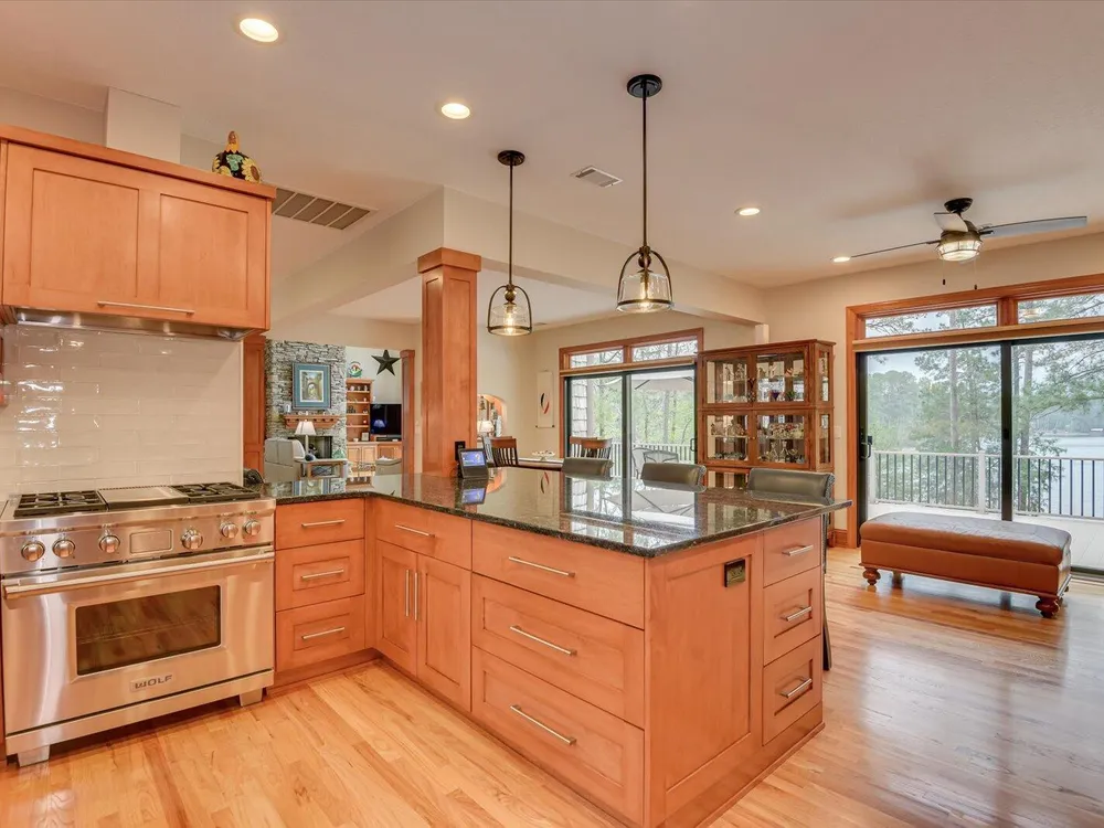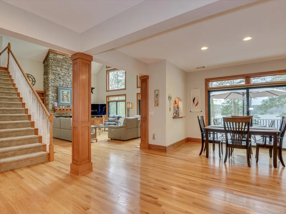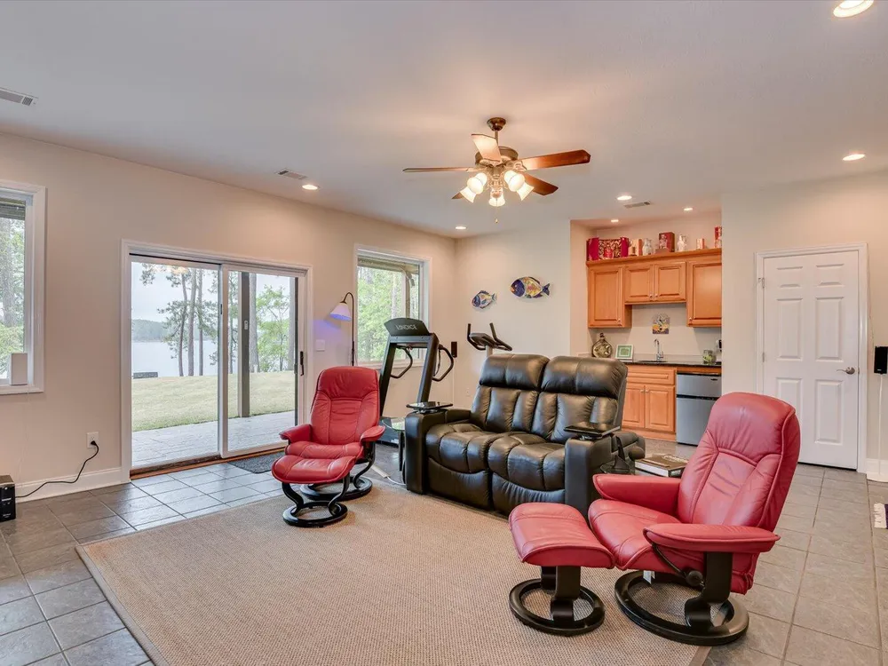 Discover unparalleled lakefront living in Savannah Lakes Village, boasting what is perhaps the most spectacular lot on 70,000-acre Lake Thurmond. This exceptional property features nearly 400 feet of pristine shoreline and a gentle slope to the water, where miles of unobstructed lake views unfold. Under brushed and landscaped to reveal the full majesty of the water. A 24-foot covered dock slip, leased through 2056, will transfer with this property.The main level is open concept with beautifully refinished wood flooring for seamless living and large windows capturing breathtaking lake views. The living room features a stunning stacked stone fireplace with vaulted ceiling and wet bar creating an inviting atmosphere. An expansive upstairs loft with half bath overlooks the living room and offers panoramic lake views. Next step into the kitchen of your dreams featuring a dual fuel, 36'' Wolf range with 4 burners and an infra-red griddle. The maple cabinets, with specialized features, are custom, full overlay built by Crawford Cabinets. Blue Pearl granite countertops with a Blanco Silgranit sink and all stainless appliances finish off this gorgeous space. You will love the laundry room with its custom pantry and cabinets, stacked full-size washer and dryer, large stainless-steel laundry sink plus unique and handy overhead drying rack. A charming, heated and cooled four season sunroom extends the living space just steps from the kitchen and leads out to the expansive, no maintenance, aluminum deck.The over 625 square foot primary suite, located on the main level, is a true retreat featuring a luxury en-suite bath with his and her vanities, a jetted Jacuzzi tub, over-sized walk-in shower, heated tile floors, water closet and linen cupboard. This suite also has a huge walk-in closet and direct access to the deck. Two additional main level bedrooms share a unique jack-and-jill bathroom each having their own private water closet with a shared tub/shower combo between.The finished lower level is perfect for entertaining, or guest accommodations, featuring a family room with fireplace, wet bar, 3/4 bath and bedroom with oversized walk-in closet. A golf cart garage and climate-controlled storage complete this level. From here step out onto the large, stamped concrete patio and enjoy the hanging swings and breath-taking views of the lake. You will also find an additional storage room in this space. Important information to know:New roof installed 20204 separate Wi-Fi heat pumps2 water heaters (1 tankless Rinnai which supplies all bathrooms with endless hot water and a 50-gallon electric water heater for kitchen, laundry and wet bars)RO system at kitchen sink300-gallon leased, buried propane tank on property2 water meters (sewage is not paid on 2nd meter)Tara golf course, River Grille and Recreation Center are all within a mile of this quiet neighborhood.This home offers an irreplaceable combination of spectacular view, gentle waterfront access, and luxurious amenities, plus a 3-car garage with Genie Smart Wi-Fi door openers with battery back-up. The cost and effort to replicate this unique home and setting would be substantial. Schedule your private showing to truly experience its beauty.