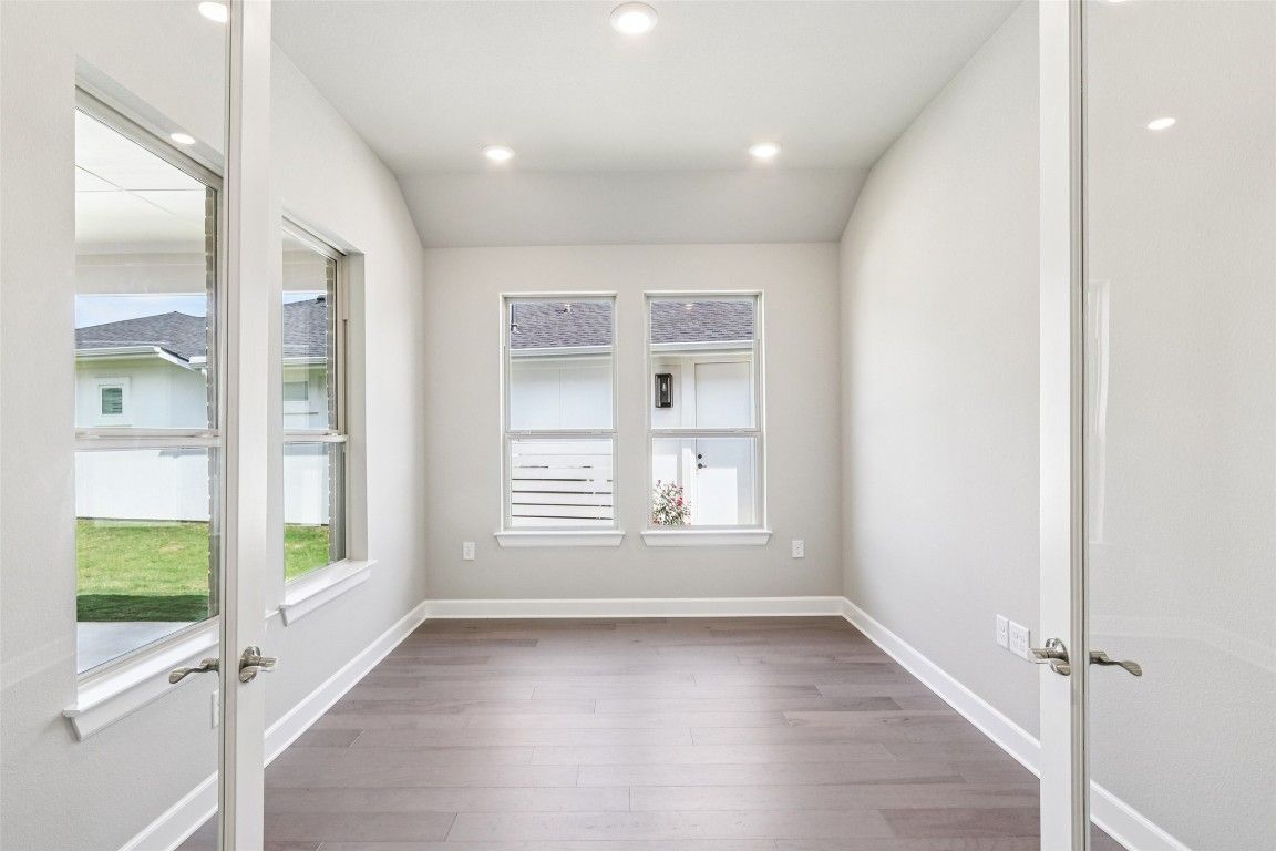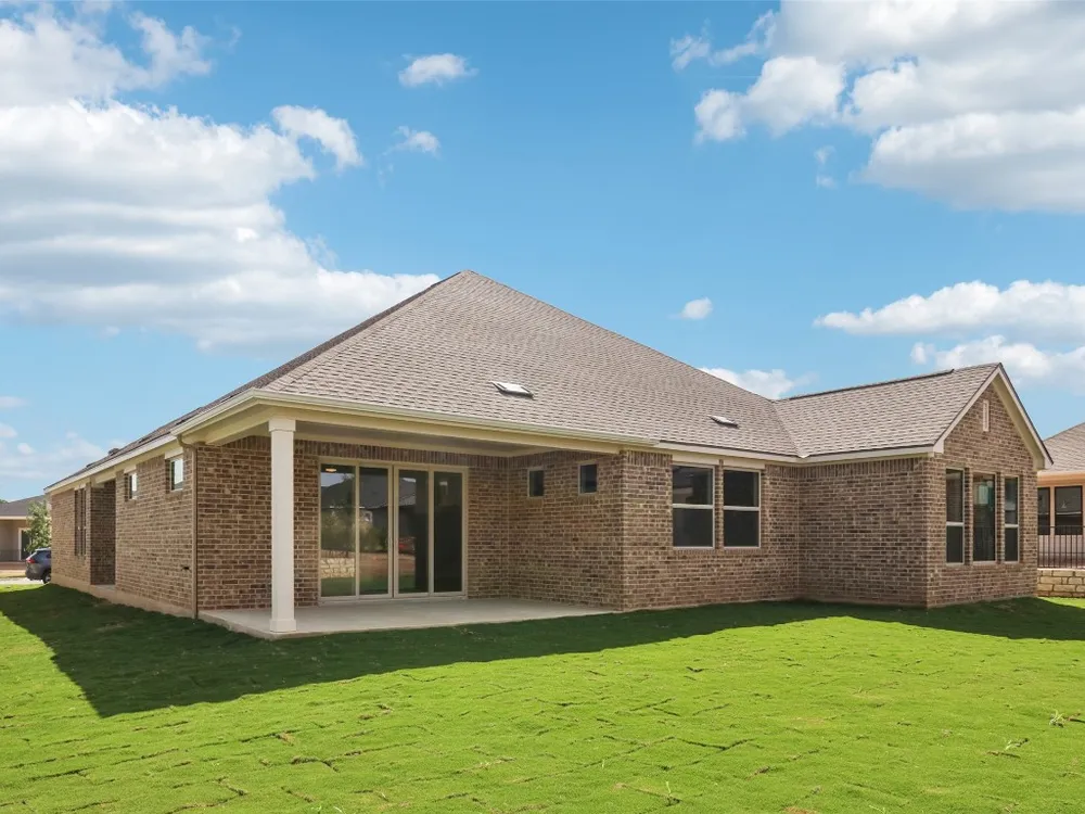 Trinity plan with upgraded kitchen, quartz countertops, hardwood flooring, optional study with double doors, optional covered second patio, 4' garage extension, optional shower in 2nd bath, sliding glass door in living, optional tray ceiling in master, optional dry bar