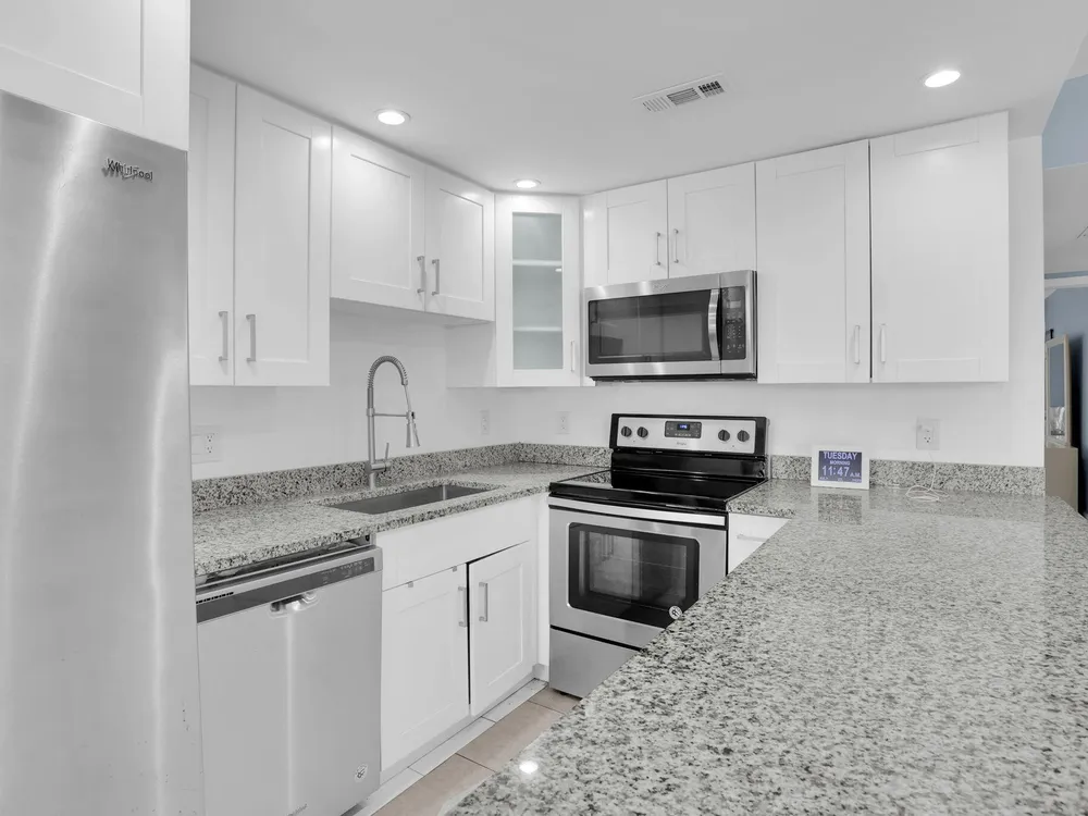 - Dishwasher, Microwave, Electric Range, Refrigerator