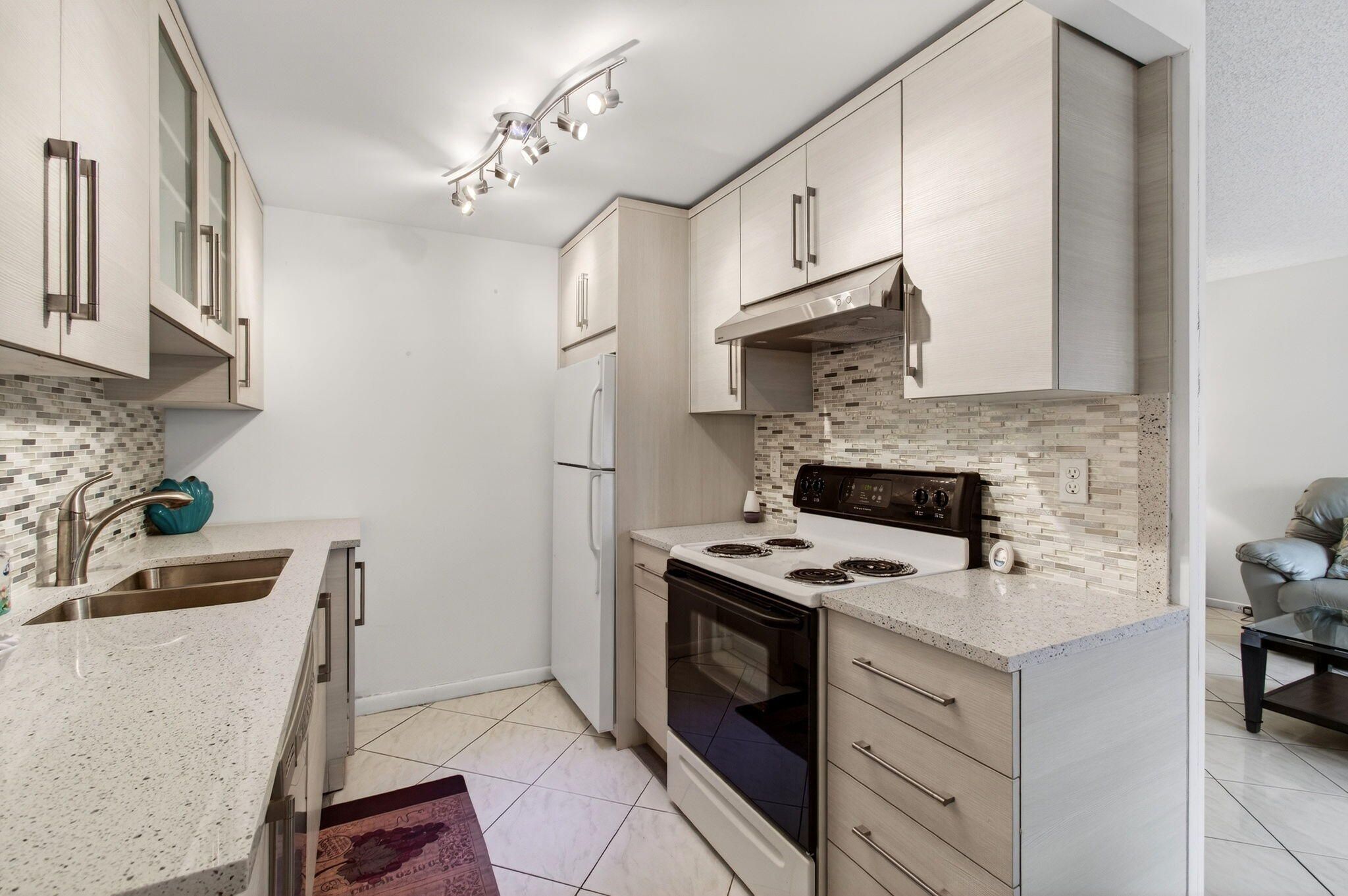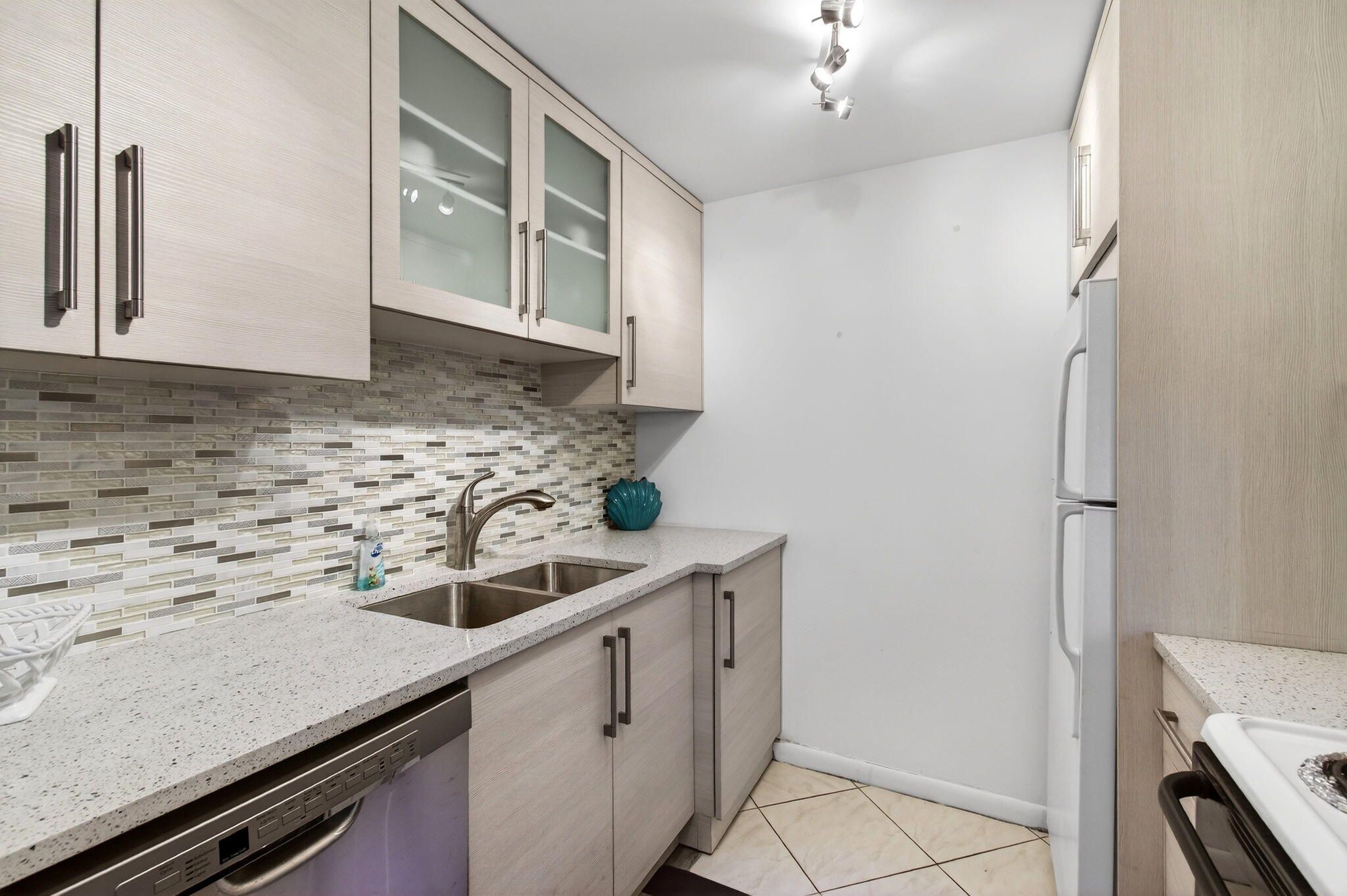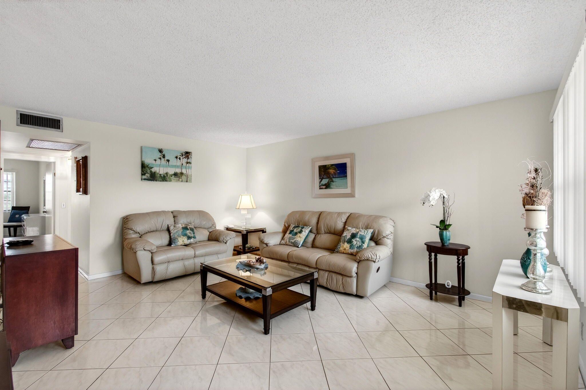 CENTURY VILLAGE--SUPER ACTIVE ADULT COMMUNITY! The heart of Boca Raton, FL, is a captivating second-floor condominium situated in the vibrant Century Village community. Exuding elegance and filled with natural light, this property presents a stunning canvas awaiting personal touches. The Chef's dream of this condo is in the kitchen. Recently enhanced with polished quartz countertops and a stylish backsplash, this culinary paradise also boasts new wooden cabinets that offer ample storage for all your kitchen needs. It recreates the ambiance of a professional cooking space, attracting those who harbor a passion for gourmet cuisine. The commodious master bedroom is captivated by its direct access to the picturesque patio. Moreover, the room houses a deep walk-in closet; such a utility is a dream come true for storage savants and fashion enthusiasts alike. Not to be outdone by the interior, the exterior of this condo claims a share of the spotlight. The versatile open space patio awaits to host your treasured family events or serene morning coffee rituals. Furthermore, the enclosed terrace, a generous extension of the living space, caters to an array of uses, be it a home office or a hobby room. Year-round, it provides a platform to indulge in the enchanting outdoors safely. Centrally placed, Century Village sports an expansive repertoire of amenities. This locale has everything from a well-equipped fitness studio and an expansive clubhouse that facilitates community interaction to a performance theater that adds a sparkle of culture. For the active individual, there are dedicated spheres for athletic pursuits like tennis, shuffleboard, pickleball, and bocce ball courts, spread across the community. With 12 courts each for tennis and shuffleboard, sports enthusiasts can find opportunities catering to their sporting spirit. Don't miss out on this enticing opportunity the current owners are highly motivated to sell. With an engaging confluence of comfortable living and active communal spirit, this property presents an enticing prospect for any lifestyle. 2026 HOA--GUILFORD SECTION-$460.82 PER MONTH HOA--CEN-WEST-$312.57 PER MONTH Internet, basic cable, and water are included in the HOA. A/C-2017 HWH-2011.