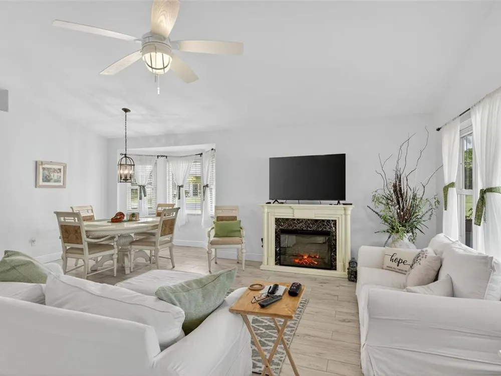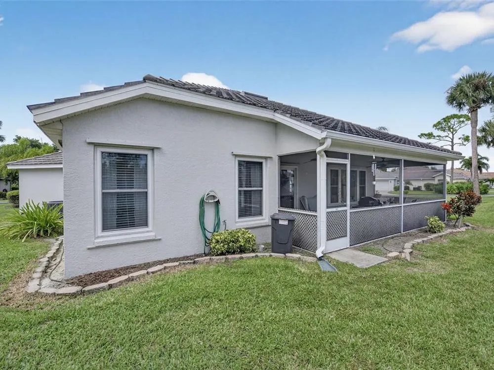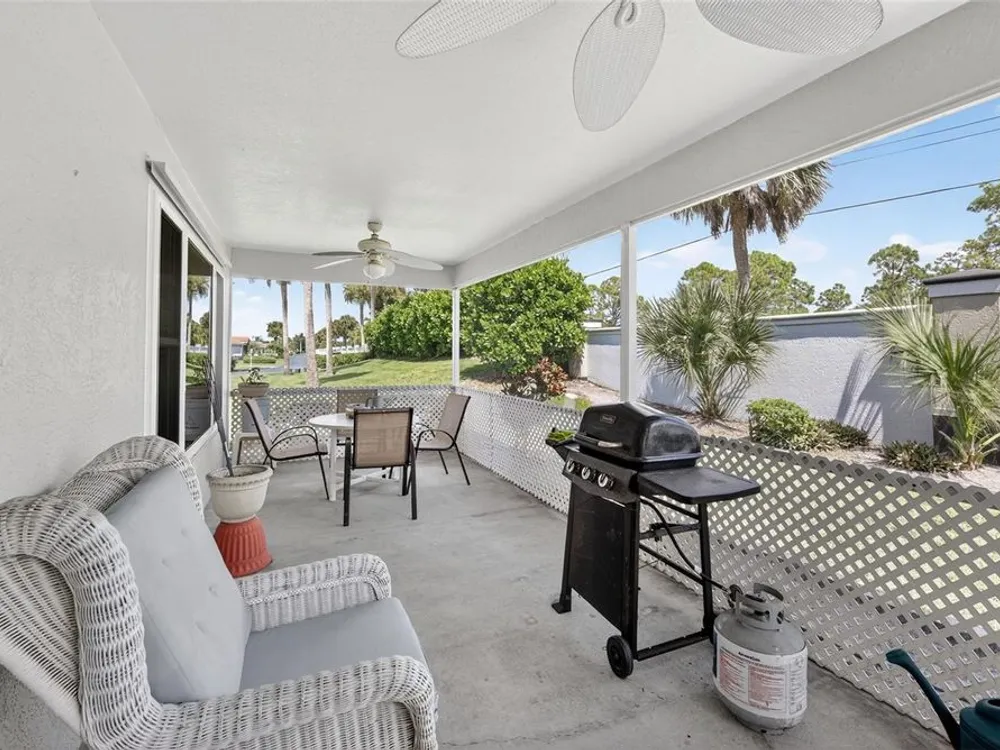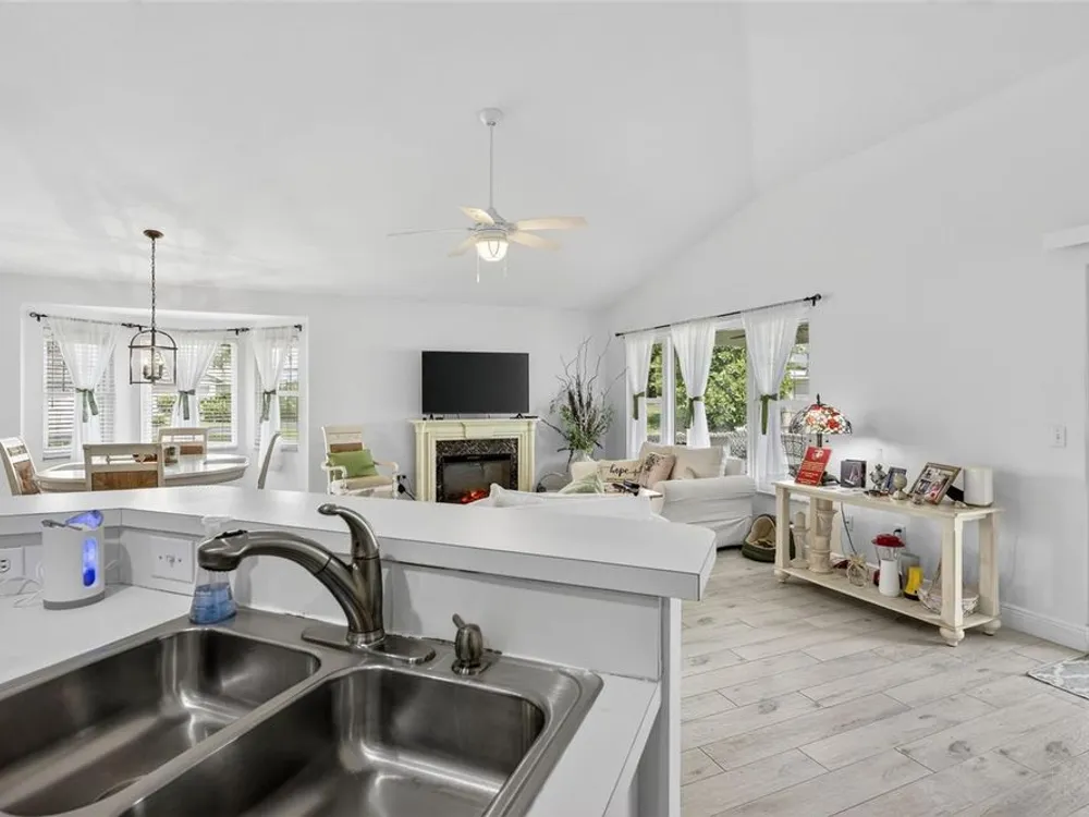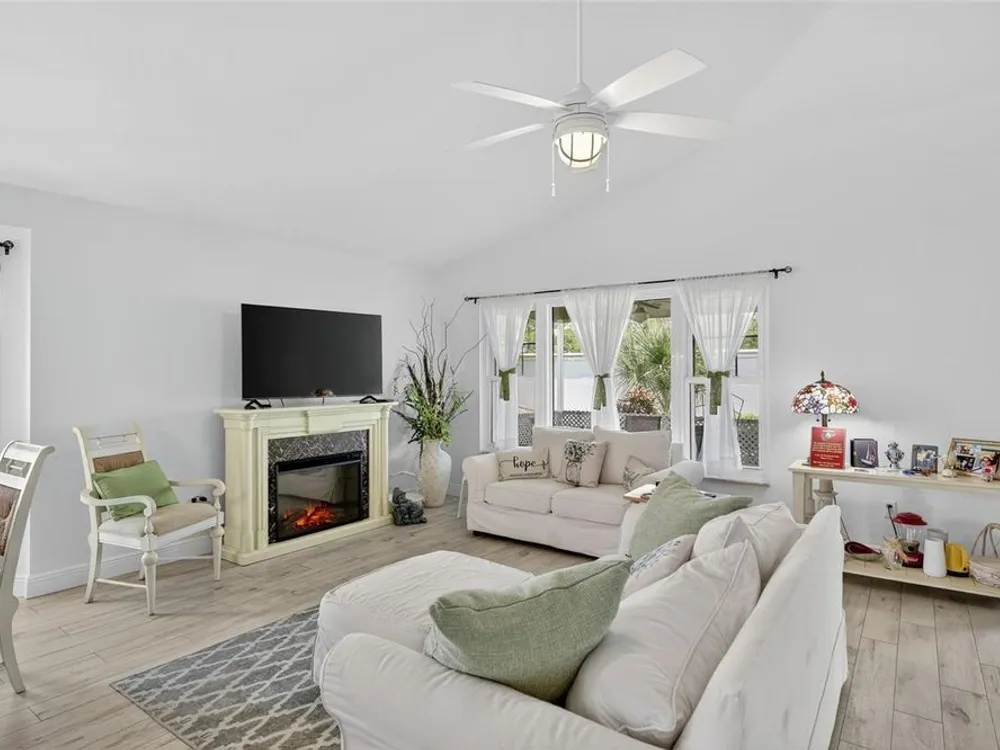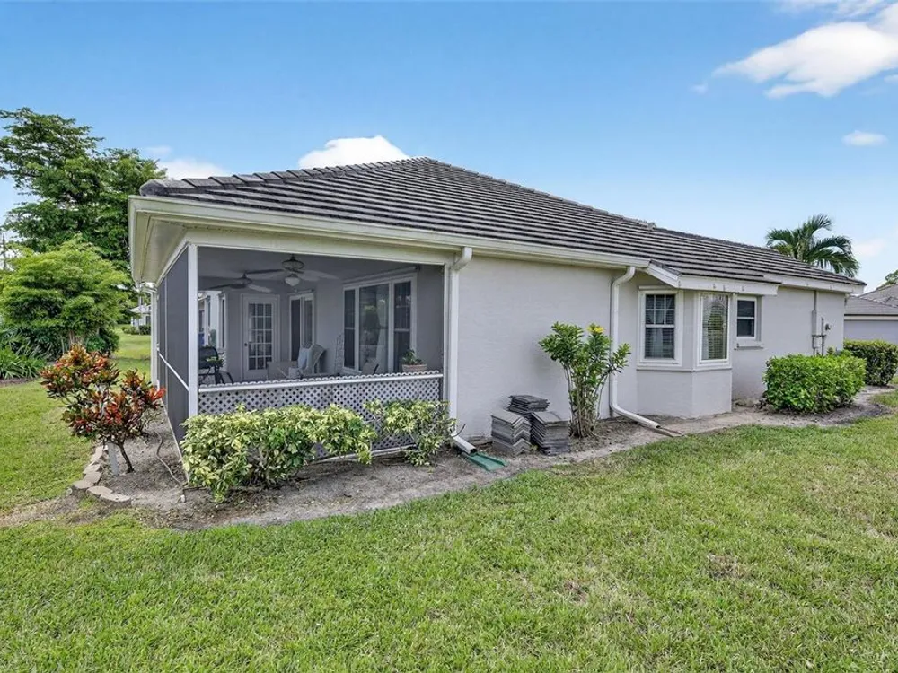 Live the ultimate lifestyle in Burnt Store Marina! This beautifully remodeled Hibiscus home floor plan delivers effortless coastal living with 2 bedrooms, 2 baths, and a 2-car garage across 1,279 square ft of A/C living area (2029 Total). Enjoy an extended length 24'6" x 8' underroof screened in rear lanai to your outdoor living area. Offered fully furnished in stylish coastal décor, the home is move-in ready and represents one of the best overall values within Burnt Store Marina. The lot backs to a lush green belt and features a privacy stone wall that provides sound buffering and transforms the backyard into a secure, secluded retreat. A rare side greenbelt adds scenic nature views so you never look directly into a neighbor’s yard. A private paver driveway and tropical landscaping frame the entry and screened porch, creating an inviting first impression. A front screened in porch leads into a welcoming foyer that flows into an open-concept great room with living and dining areas filled with natural light from abundant hurricane high wind impact windows and impact windows sliding doors. The home opens through a screened porch into a welcoming foyer and flows into an open-concept living and dining area with high cathedral ceilings and framed by many picturesque windows and sliders that face the two green belts. A realistic electric fireplace elevates the living space, adding warmth and ambiance. The kitchen integrates seamlessly with the living area and features modern cabinetry, stainless steel appliances, and two roomy pantries. The primary suite includes a French door to access the lanai, dual vanities, and a large custom glass walk-in shower. The guest suite sits beside a full bath with tub and vanity. Gorgeous Italian light toned plank tile flooring and tall baseboards run throughout, (NO Carpet) creating a cohesive, low-maintenance finish. Exceptional Value, Upgrades and Systems - New High End Premium Flat Concrete Tile Roof (Fall 2021), New A/C System (2023), Repipe Interior Potable Water System, freshly painted interiors/exteriors (2023), newer Storm high-impact wind rated hurricane windows and glass sliders. Additional upgrades include new gutters with leaf filters, Kinetico whole home water treatment system, a new disposal, new hotwater tank, remodeled Master bath & beautiful remodeled flooring throughout with base trim. Located in FEMA Zone X, outside special flood hazard areas. Inside gated Burnt Store Marina, the community features Safe Harbor Burnt Store—the largest marina in Charlotte Harbor. It offers 500+ deep-water wet slips, 450 dry storage spaces, a boat ramp, fueling station, ship’s store, maintenance services, boat rentals, and Freedom Boat Club access. Why maintain the cost of a private pool when onsite recreation only cost $500. a year which includes a beautiful heated Pool and Spa, aqua aerobics, 4 cushioned tennis courts, 8 cushioned pickleball courts, and a fitness center with 20+ machines, free weights. A scenic 27-hole executive golf course offers membership options. Enjoy 2 waterfront restaurants, a Barking club for pets. Residents enjoy getting around by golf cart and embracing an active lifestyle built around boating, golf, tennis, pickleball, and wellness. No CDD fees apply. See 74 photos & Zillow walk-through tour. Do nothing, his home has been meticulously maintained. Schedule your tour today & discover the unmatched luxury and lifestyle awaiting you at Burnt Store Marina!