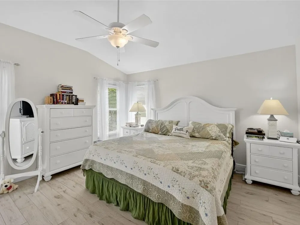 - Cathedral Ceiling(s), Ceiling Fan(s), High Ceilings, Living/Dining Room, Open Floorplan, Main Level Primary, Split Bedrooms, Walk-In Closet(s), Window Treatments