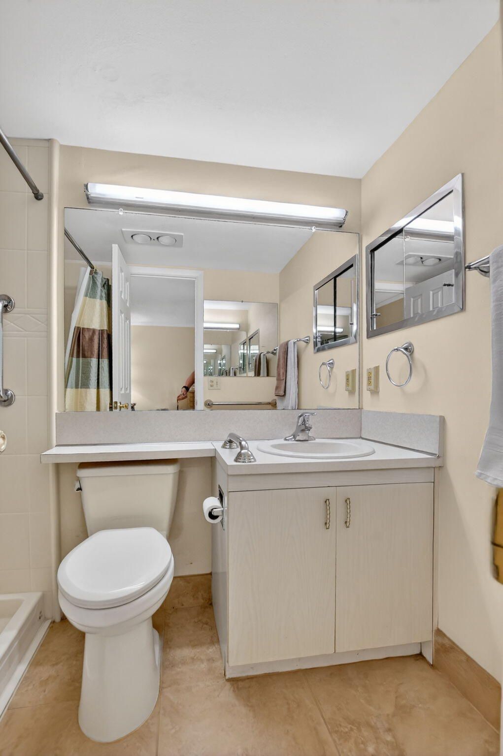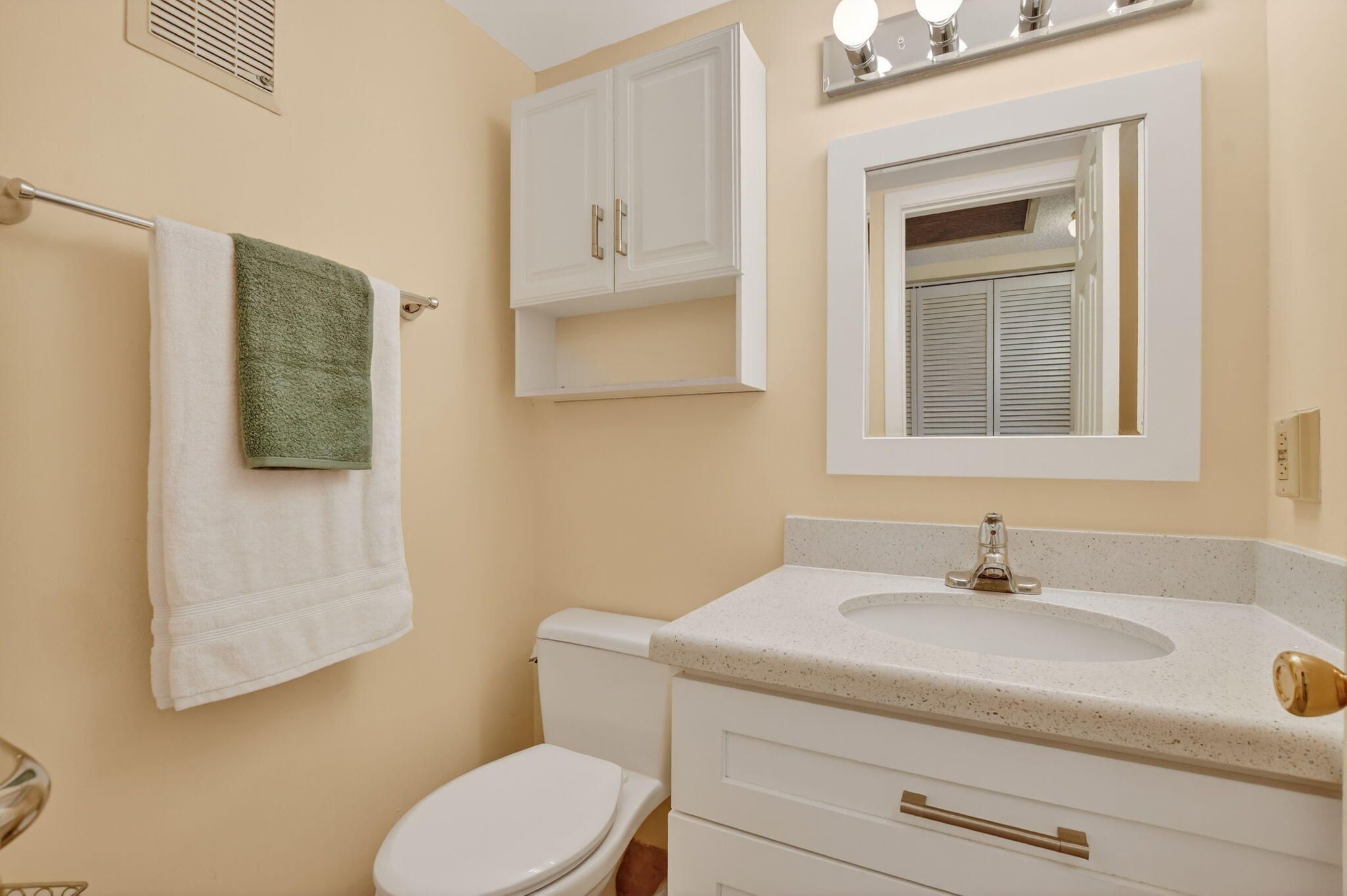 Beautifully updated and meticulously cared for 2nd-floor unit in the desireable 55+ active adult community of Century Village East. With major renovations completed in 2019, this home features a beautifully updated kitchen with quartz countertops, full quartz backsplash, white shaker cabinetry, and high-hat lighting. A fully renovated half bath adds extra convenience. The electrical panel was also upgraded in 2019, and the unit includes multiple accessible features, including additional grab bars. Tile flooring runs throughout the main living areas (no carpet), while the master bedroom features updated vinyl flooring. Enjoy peaceful garden views from the enclosed lanai, creating a bright and welcoming atmosphere. Conveniently located just steps from the elevator, making access easy and convenient. The assigned parking space is conveniently located out front and features only one adjacent parking space, with no parking on the opposite side, offering added ease and accessibility. This unit includes a transferable Pride Air Conditioning and Plumbing maintenance contract valid through February 2027 and a building that has recently undergone major renovations (Newport Q). Residents enjoy resort-style amenities, social activities, and the active lifestyle Century Village East is known for. Century Village East is located only 3.3 miles from the Beach. The active community features 16 pools, including 1 indoor pool and one located steps away from the unit. The community also features a luxurious and massive clubhouse with a theater, functioning library, fitness center, competitive billiards, cardrooms, classes, bingo, events, shows and a café. Outside you will find tennis courts, basketball hoops, shuffleboards, bocce ball, pickleball and volleyball. The community also offers a courtesy bus to help get you around the community. You will never get bored here!