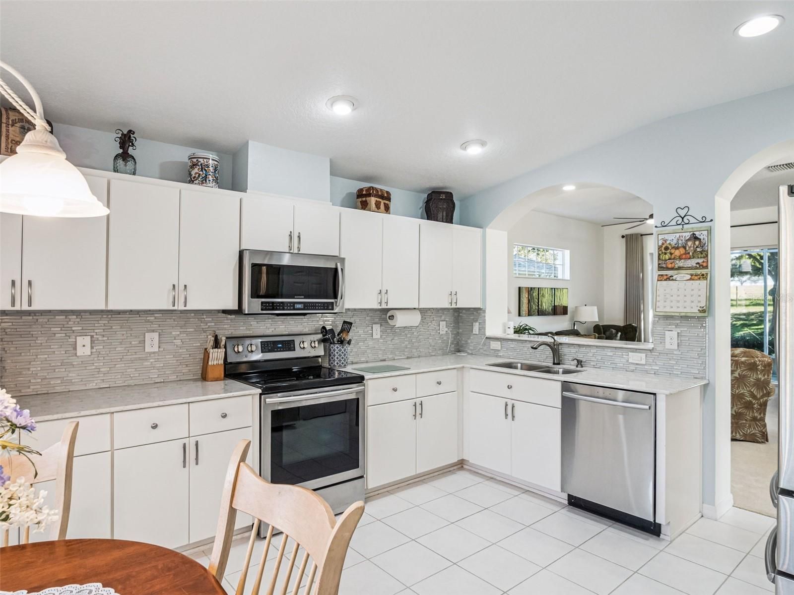 Looking for the perfectly sized and updated two-bedroom, two bathroom home with no rear neighbors? You've found it! Equipped with a 2025 water heater, 2023 roof, low maintenance landscaping, new fans, new faucets and a FRESH interior--just for you! The large, open kitchen overlooks the main living areas & has desirable Quartz countertops, glass backsplash, garbage disposal, electric stainless appliance package, and space for a dinette. Featuring an inside laundry with cabinetry, sliding garage screen doors, custom closet, 2017 HVAC, and block & stucco construction--all for your peace of mind! Everyone comes to Florida looking for that great outdoor space. This Aston II Model has a screened birdcage overlooking Florida's most precious commodity--the pastureland! Watch the rocket launches, birds, turtles, calfs, and native wildlife from your own sanctuary! Royal Highlands is a gated, golf community with on-campus restaurant, pro shop & putting green. The Recreation Center has billiards, fitness center, two pools, craft rooms, and library. Over at the Great Hall, you'll watch performances, attend dances, and create a lifetime of great memories with friends and family. We are close to the turnpike, The Village Squares, MCO, Amusements, Shopping, and Historic Districts. Call for a tour of Royal Highlands and this perfect home today!