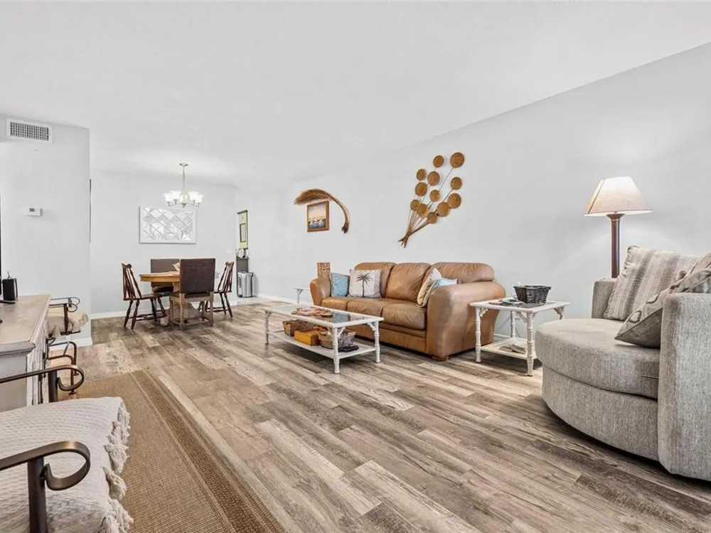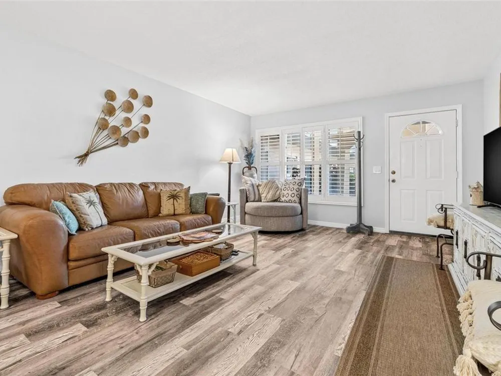 FIRST FLOOR CORNER, UPDATED, and FURNISHED, 2 bed/2 bath condo! Also, in a building that is directly across from the East side activity center. Immerse yourself in this splendor! With an abundance of upgrades, this stunning condo exudes perfection. Upon arrival, the luxury vinyl flooring will capture your attention. Soak in the natural light permeating through the updated windows. Exquisite plantation shutters complement the home. Indulge your culinary desires in this striking kitchen, featuring impressive granite countertops, soft close cabinetry, a tasteful backsplash, not to mention; stainless steel appliances! Enter the spacious main bedroom, offering a magnificent en-suite bath, upgraded with a walk-in shower and seamless doors, newer vanity and ceramic tile. The secondary bath includes the same newer upgrades. Additionally, both bedrooms feature generous closet space. Relax and unwind on either your front or rear patio, take your pick! HVAC replaced in 2022. Electrical outlet for a dryer in primary bedroom needs to be approved by the Association. Don't delay, schedule today! Assigned parking. The 55+ community has two activity centers, and two private golf courses with 9 and 18 holes, free exclusively for resident owners. There are two heated swimming pools. The remodeled Cardio Gym has the latest exercise equipment. A very pet-friendly community, there is a fenced dog park with covered seating. There are hobby studios, and a wood shop for the exclusive use of the residents. Activities include fitness classes, dancing, clubs, cards, billiards, entertainment, classes, and much more. The on-site Good Karma Café has take & bake meals and snacks. Close to beaches, transportation, shopping, entertainment, and fine dining. All room sizes, floor plans and square footage are approximate. This property is being transferred by a leasehold estate deed. Association approval is required. If financing, a 35% down payment is required.