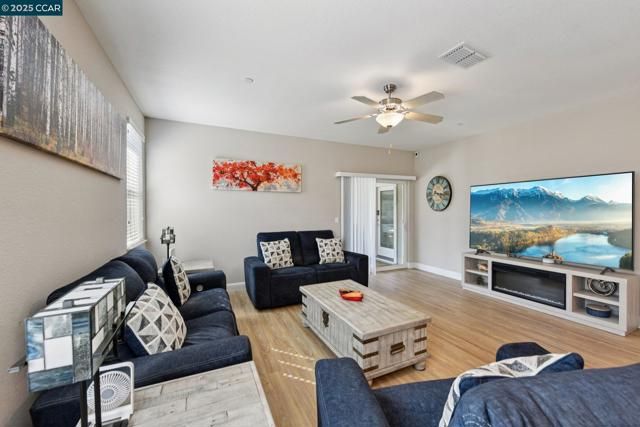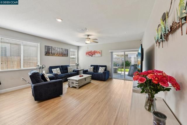 Landscaped backyard + brand-new luxury floors throughout make this 2022 home shine above the rest! Skip the wait and higher price of new construction—this one is move-in ready with upgrades included. Wide hallways and soaring ceilings lead to 2 bedrooms, 2 bathrooms, and a versatile den/office. The open-concept kitchen with island and bright living room are perfect for entertaining, while the spacious primary suite offers 2 walk-in closets, a full bath, and direct patio access. Designed with extra-wide doorways and filled with natural light, this home balances style and comfort. A resort-class $9Million amenity center await in this vibrant 55+ Community: fitness center, giant resort style pool, bocce, tennis & pickleball courts, wine lounge, dog park, community garden, endless activities. The Events Barn adds even more with an art studio, business lounge, and large-scale event space that can host a celebrity's wedding. Don't miss this opportunity to own this upgraded, better-than-new home!