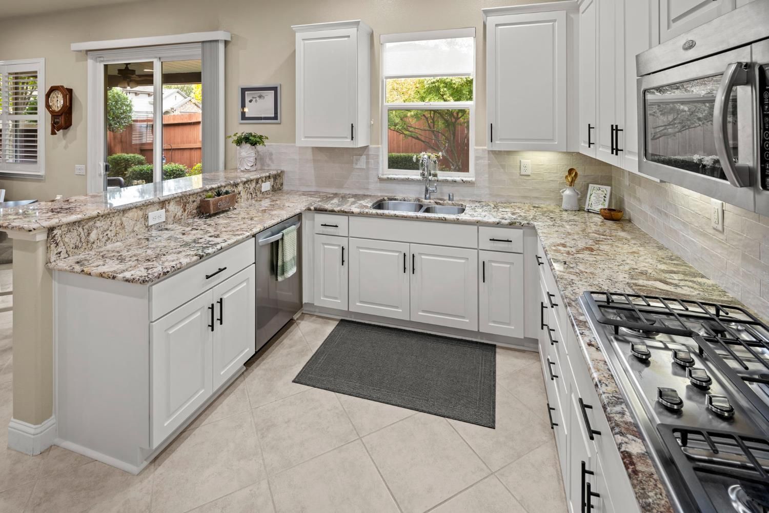 - Built-In Electric Oven, Gas Cooktop, Gas Water Heater, Ice Maker, Dishwasher, Disposal, Microwave, Double Oven, Self Cleaning Oven