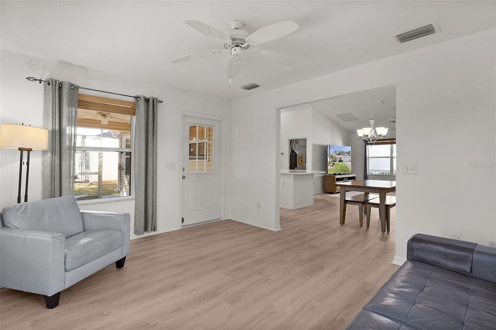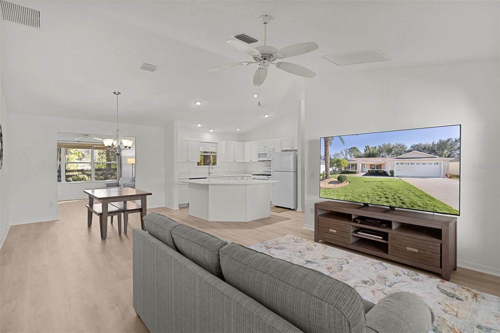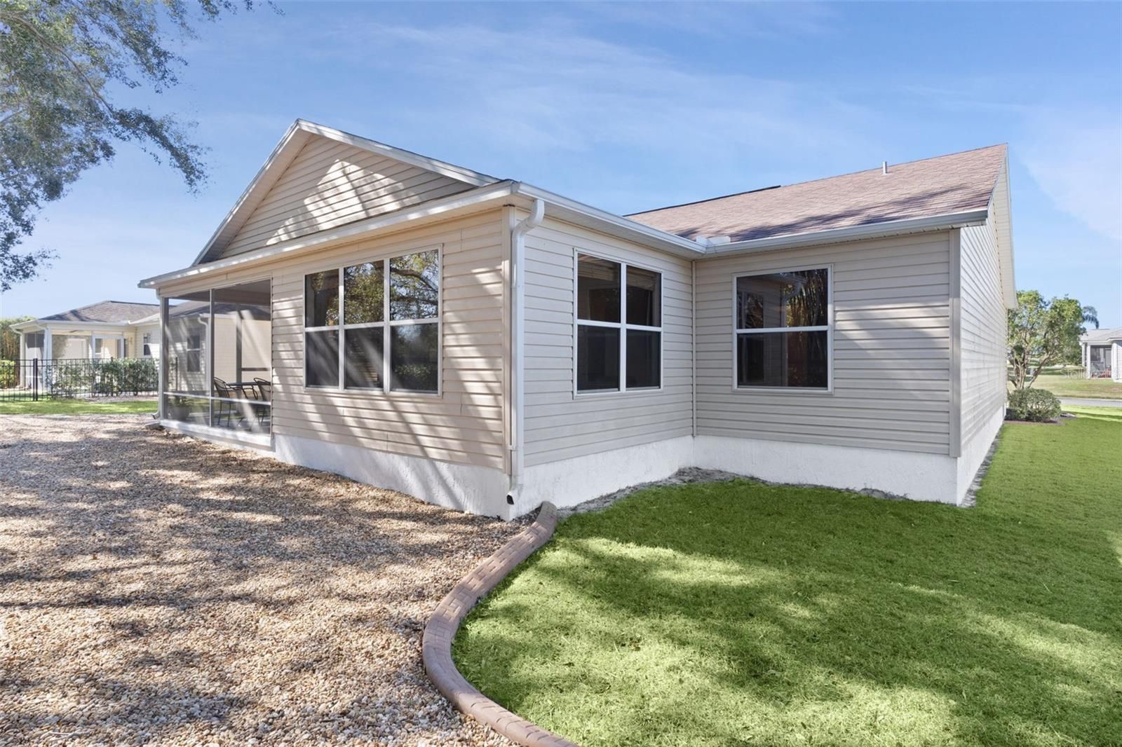 ~NO BOND~ ~FARM / PRESERVE-LIKE VIEW~ ~180sf FLORIDA ROOM~ Welcome to this stunning AMARILLO model in the highly sought-after Village of AMELIA (“BETWEEN THE 6’S”), featuring FARM and PRESERVE-LIKE VIEWS that create a peaceful, PRIVATE setting. This beautifully maintained home features updated landscaping adding to the curb appeal. Step inside and be greeted by SOARING VAULTED CEILINGS enhancing the open, airy feel, while LUXURY VINYL PLANK FLOORING flows throughout the entire home for a clean, modern look. The living room includes a ceiling fan, and the dining room has vaulted ceilings making it ideal for entertaining. The chef-inspired kitchen shines with QUARTZ countertops, a new dishwasher, refrigerator, and GAS stove—making meal prep a pleasure. The spacious primary suite features a ceiling fan, 2 walk-in closets, and a beautifully updated en-suite bath with a TILED WALK-IN SHOWER, QUARTZ countertops, and NEW SINKS. Two additional bedrooms each offer ceiling fans and built-in closets. The guest bath includes a tub/shower combo, QUARTZ countertops, and a linen closet. Enjoy year-round relaxation in the FLORIDA ROOM, fully integrated into the home and finished with LVP flooring and a ceiling fan. The INSIDE LAUNDRY area is equipped with SAMSUNG appliances, and the screened-in lanai with concrete flooring provides the perfect place to unwind and take in the serene views. 2014 Roof, 2008 Trane HVAC system (regularly serviced by Munns), and a 2008 Hot Water Heater. This move-in-ready home combines comfort, style, and an exceptional setting. Minutes to Odell Rec Center and the Hadley Pool as well as the Havana Country Club and Mallory Hill Country Club. A short golf cart ride to Lake Sumter Landing and Brownwood Paddock Square. Close to shopping and dining on both CR466 and CR466A. This home offers the perfect balance of upgrades, thoughtful design, and a fantastic location. Don’t miss your chance to make it yours!