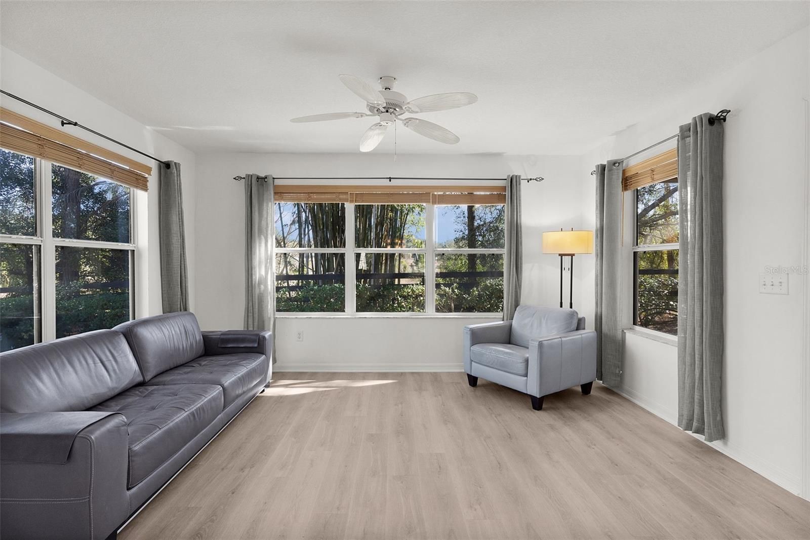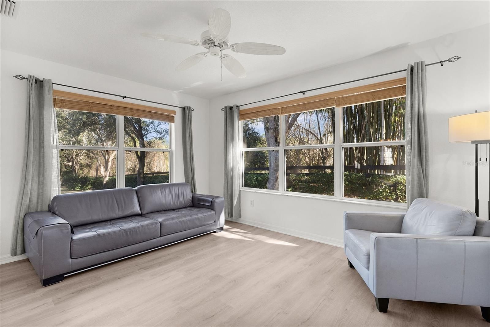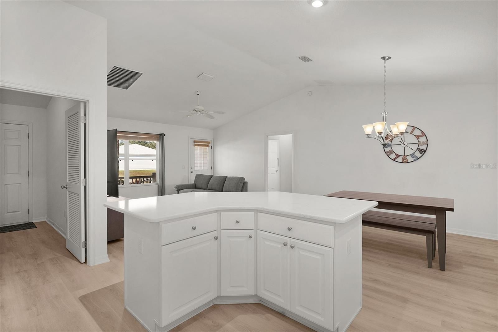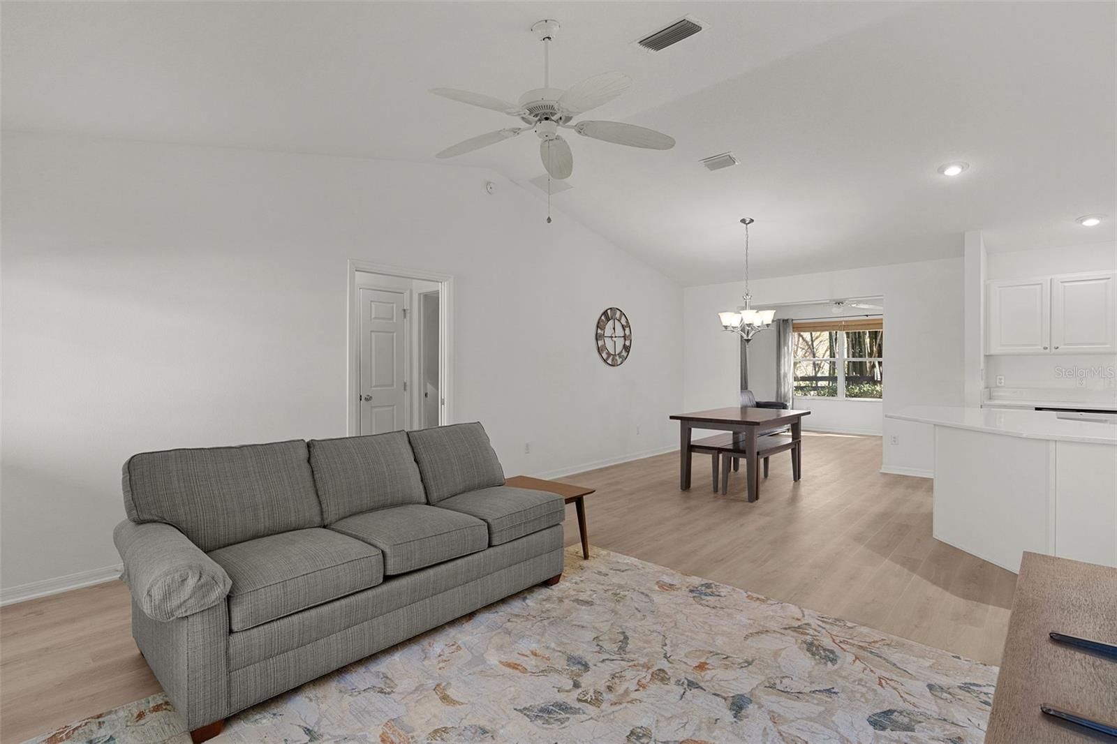 ~NO BOND~ ~FARM / PRESERVE-LIKE VIEW~ ~180sf FLORIDA ROOM~ Welcome to this stunning AMARILLO model in the highly sought-after Village of AMELIA (“BETWEEN THE 6’S”), featuring FARM and PRESERVE-LIKE VIEWS that create a peaceful, PRIVATE setting. This beautifully maintained home features updated landscaping adding to the curb appeal. Step inside and be greeted by SOARING VAULTED CEILINGS enhancing the open, airy feel, while LUXURY VINYL PLANK FLOORING flows throughout the entire home for a clean, modern look. The living room includes a ceiling fan, and the dining room has vaulted ceilings making it ideal for entertaining. The chef-inspired kitchen shines with QUARTZ countertops, a new dishwasher, refrigerator, and GAS stove—making meal prep a pleasure. The spacious primary suite features a ceiling fan, 2 walk-in closets, and a beautifully updated en-suite bath with a TILED WALK-IN SHOWER, QUARTZ countertops, and NEW SINKS. Two additional bedrooms each offer ceiling fans and built-in closets. The guest bath includes a tub/shower combo, QUARTZ countertops, and a linen closet. Enjoy year-round relaxation in the FLORIDA ROOM, fully integrated into the home and finished with LVP flooring and a ceiling fan. The INSIDE LAUNDRY area is equipped with SAMSUNG appliances, and the screened-in lanai with concrete flooring provides the perfect place to unwind and take in the serene views. 2014 Roof, 2008 Trane HVAC system (regularly serviced by Munns), and a 2008 Hot Water Heater. This move-in-ready home combines comfort, style, and an exceptional setting. Minutes to Odell Rec Center and the Hadley Pool as well as the Havana Country Club and Mallory Hill Country Club. A short golf cart ride to Lake Sumter Landing and Brownwood Paddock Square. Close to shopping and dining on both CR466 and CR466A. This home offers the perfect balance of upgrades, thoughtful design, and a fantastic location. Don’t miss your chance to make it yours!