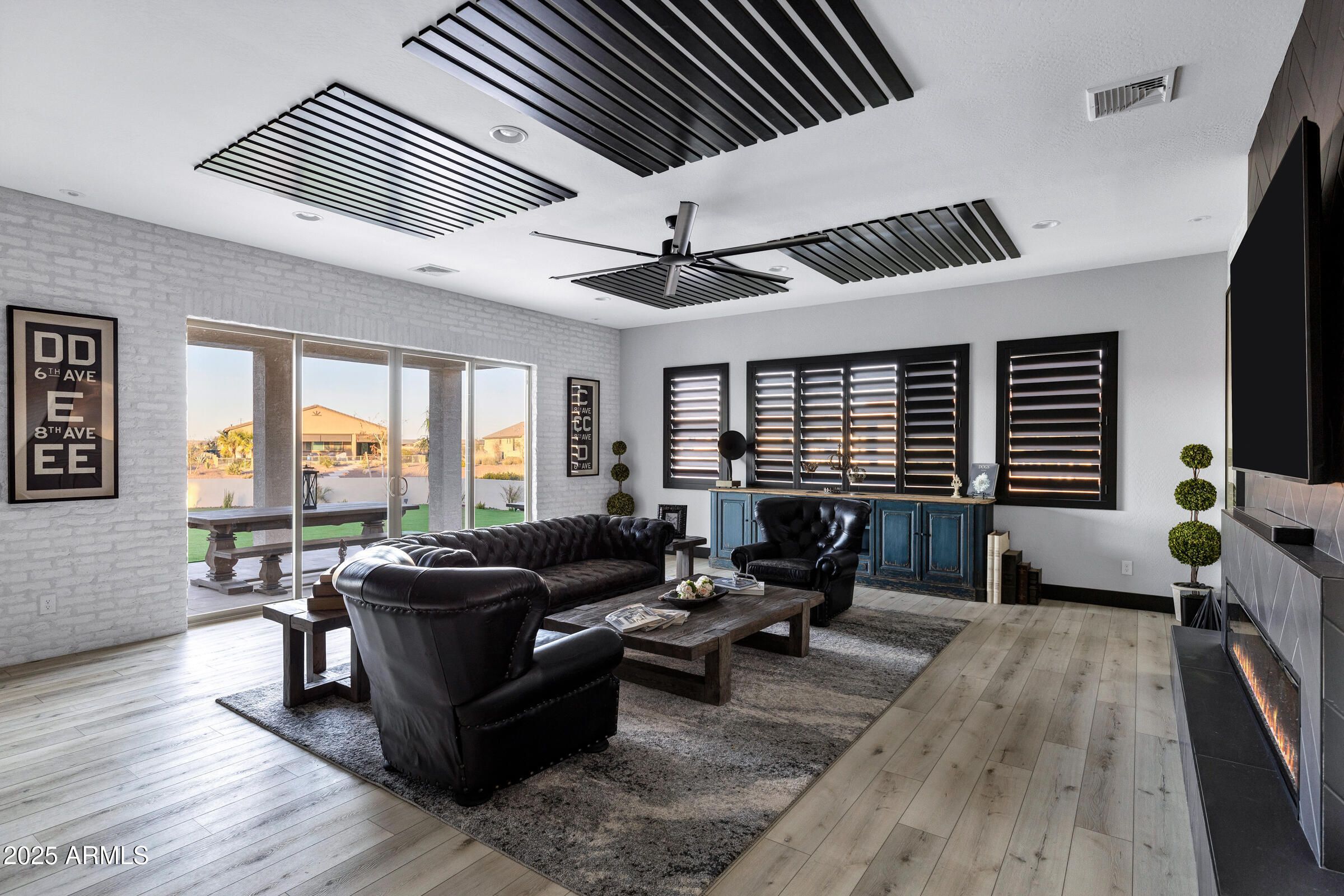*** 2-1 Buy Down AS LOW AS 4.99%*** A Rare Opportunity: Designer Luxury Meets Smart Living on a Stunning Waterfront Homesite. Welcome to a one-of-a-kind residence where high design, advanced technology, and architectural craftsmanship converge—created and owned by the contractor and interior designer who brought every detail to life. Nestled on an oversized ¼-acre dual waterfront and greenbelt homesite. This showpiece home delivers a lifestyle of effortless elegance and total comfort. From the moment you arrive, the charm begins: a welcoming front porch, custom mortar-washed clay brick, and a striking 9-foot entry door that opens to 10-foot ceilings and a designer-curated interior rarely seen outside of multi-million-dollar estates. Smart, Stylish, and Fully Custom. Every inch of this home has been reimagined for modern livingbeginning with Leviton smart lighting automation throughout. Control nearly every light with a touch or through your custom app. To your left, a sunlit game room invites gatherings. To your right, a glass-and-steel-doored office offers privacy and sophistication. A luxurious front guest suite features Restoration Hardware pendants, a private en suite, and walk-in closetperfect for hosting in style. This home can easily be converted into a 3rd bedroom ilo an open game room if the buyer chooses. Gourmet Living at Its Finest! The formal dining spacewith custom built-ins, wine and beverage refrigeration, and designer barrel-drum pendantsflows effortlessly into a nearly 1,000 sq ft culinary and entertaining masterpiece. In the chef's kitchen, no detail is spared: 48" commercial-style gas range with dual ovens, Custom 48" designer range hood, Built-in refrigerator and sleek in-drawer microwave. Massive 10' waterfall-edge island with full slab porcelain countertops and 3" edge detailing Floor-to-ceiling backsplash, hidden power outlets, under-cabinet and toe-kick lighting. From here, two walls of multi-slide glass doors encased in reclaimed brick blur the line between indoor and outdoor livingleading to your covered patio, lush greenbelt views, and lakefront tranquility. A Primary Suite That Transcends Expectations Retreat to a serene primary bedroom framed by a brick accent wall and discover a spa-like bathroom reconfigured for balance, beauty, and luxury. Dual vanities, a makeup station, Restoration Hardware lighting, and floor-to-ceiling tile lead into dual custom walk-in closets built for your lifestyle. Luxury Continues Throughout Sophisticated powder room with 100-year-old imported French barn doors. Fully appointed laundry room with cabinetry and new washer/dryer. Finished garage with custom built-ins, recessed lighting, and epoxy floors. Low-maintenance backyard with 3,000 sq ft of artificial turf, travertine patio pre-plumbed for a gas fire pit, and new PVC irrigation for lush, manicured greenery. Why Settle, When You Can Have It All? This is more than a homeit's a private sanctuary, a smart investment, and a daily experience of beauty, ease, and thoughtful design. Properties of this caliber, with this level of customization and location, rarely come to market. Don't miss your chance to own a masterpiece. Furnitures is available on a private bill of sale.