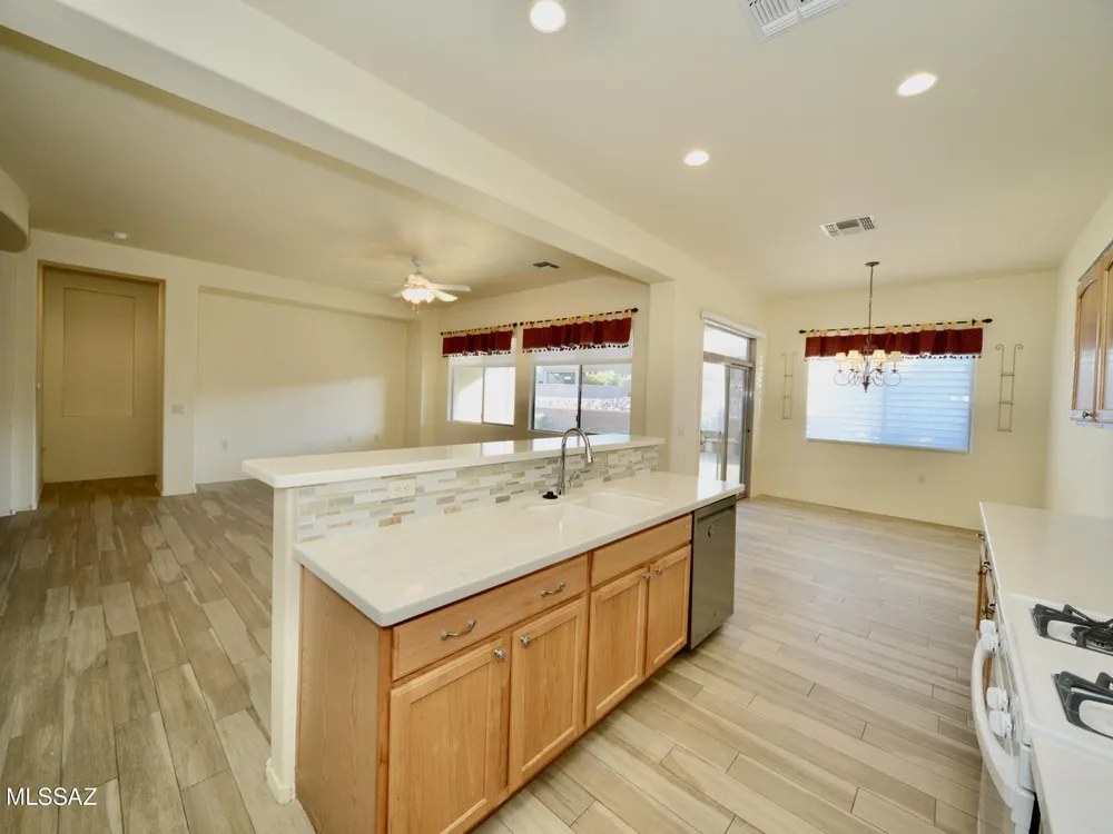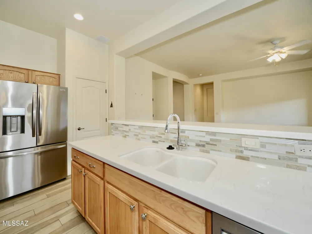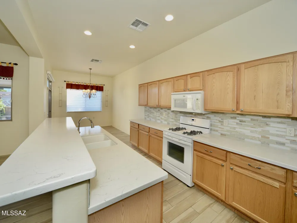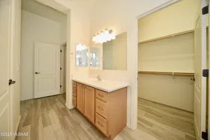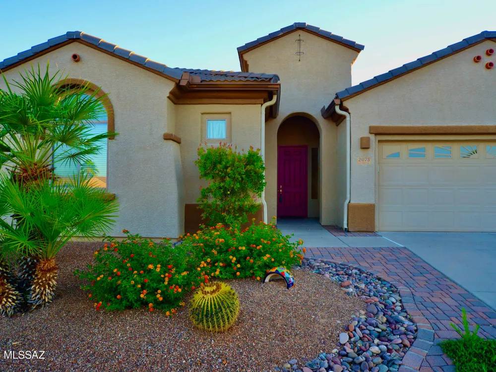 Discover your perfect winter retreat or year-round haven at 2075 Demetrie Canyon in gated Canoa Ranch! This 3-bed, 2-bath gem offers light, bright and airy open concept living with quartz counters, gas range, ample pantry, cabinets and counters. Master bath boasts dual vanities and spacious walk-in in closet. Plank flooring in all the right places with carpet only in the spacious bedrooms. Located on a quiet cul-de-sac in a gated community with low-maintenance landscaping and a relaxing backyard. Just seconds to indoor pool, golf, and one of Green Valley's top rec centers. Clean, move-in ready, and close to I-19--without the noise. Thisbis the ideal, move in ready home you have been looking for.