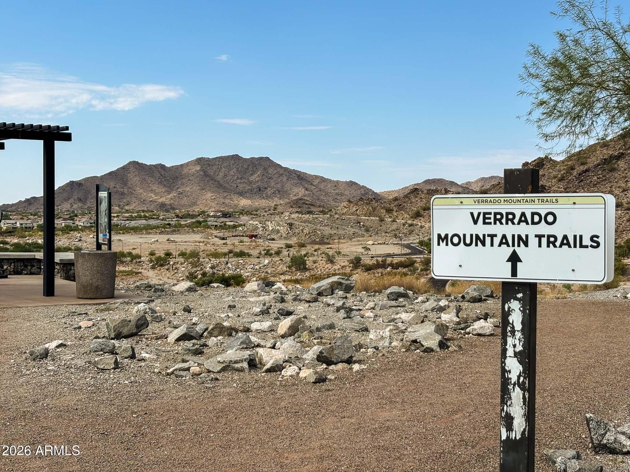 Located in the gated Mountainside district of Verrado. This luxury retreat features porcelain plank flooring weathered wood look + high ceiling that creates the bright spacious feel to the GREAT ROOM. Leathered GRANITE counters and top of the line cabinetry to-the-ceiling inspires creativity in this chef's kitchen with gas stove and double sinks. Large spacious Primary Bedroom, Granite vanity, spacious walk-in shower and plenty of storage. Private study (could be a guest room) 2 car garage with new epoxy floor and overhead storage opens to custom drop-zone for coats and bags. RO+softner. Spacious Laundry room with upgraded cabinets. Custom security screen to the patio slide door. Victory is set in the stunning White Tank Mountains, and residents also have access all amenities.