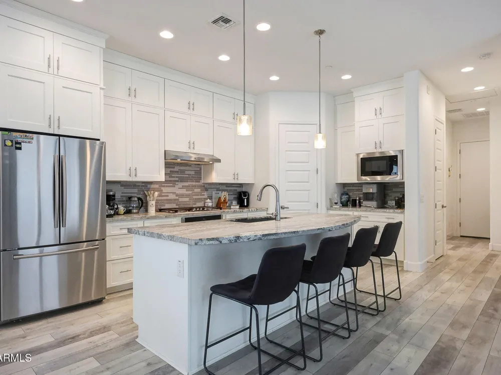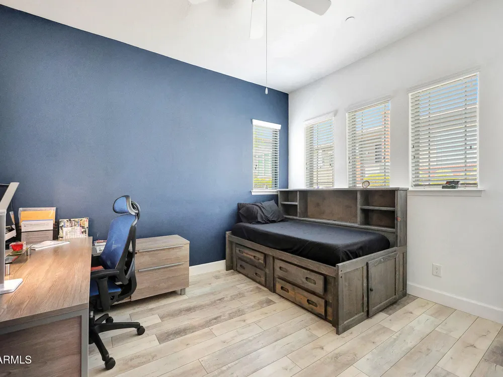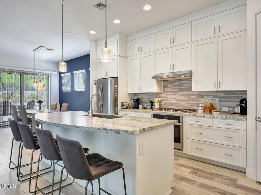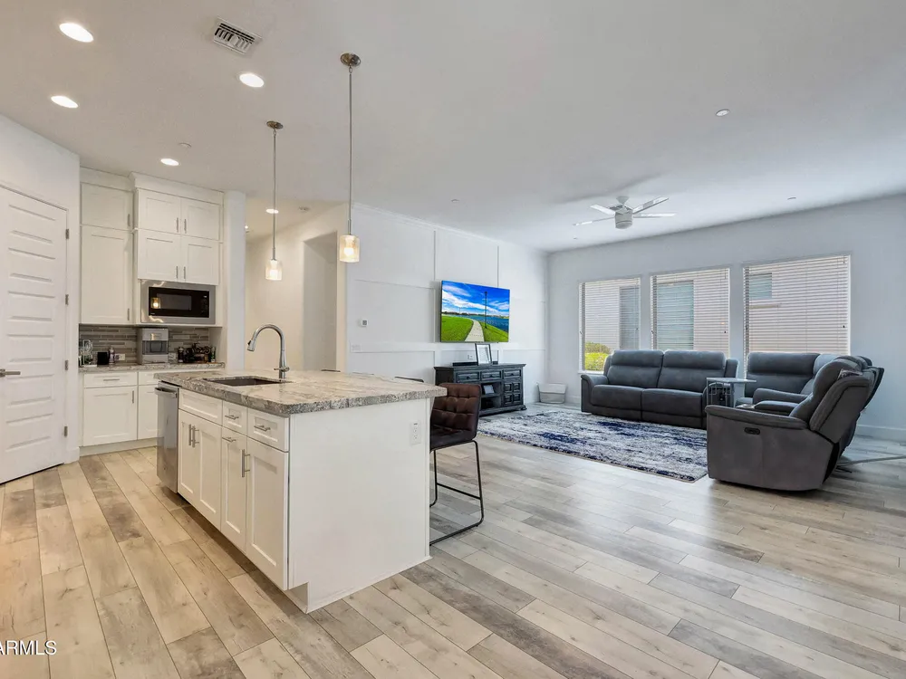 Seller offering $9000 towards buyers closing for this luxury retreat located in the gated Mountainside district of Verrado. The home features porcelain plank flooring weathered wood look + high ceiling that creates the bright spacious feel to the GREAT ROOM. Leathered GRANITE counters and top of the line cabinetry to-the-ceiling inspires creativity in this chef's kitchen with gas stove and double sinks. Large spacious Primary Bedroom, Granite vanity, spacious walk-in shower and plenty of storage. Private study (could be a guest room) 2 car garage with new epoxy floor and overhead storage opens to custom drop-zone for coats and bags. RO+softner. Spacious Laundry room with upgraded cabinets. Custom security screen to the patio slide door. Victory is set in the stunning. White Tank Mountains, and residents also have access to the amenities of the broader Verrado community, including its Main Street with shops and restaurants, The community has a socially active, walkable atmosphere with a full calendar of events and over 21 miles of trails! The home is in an active adult community for residents 55 and older.