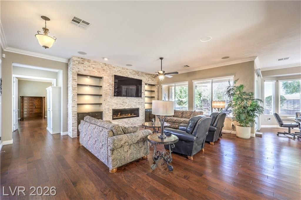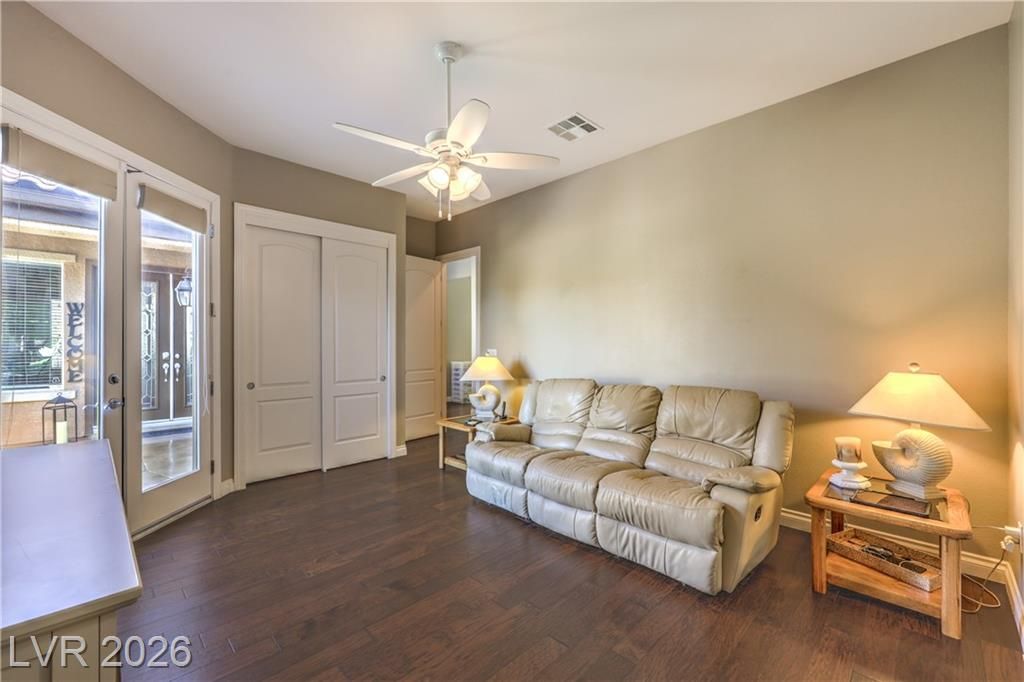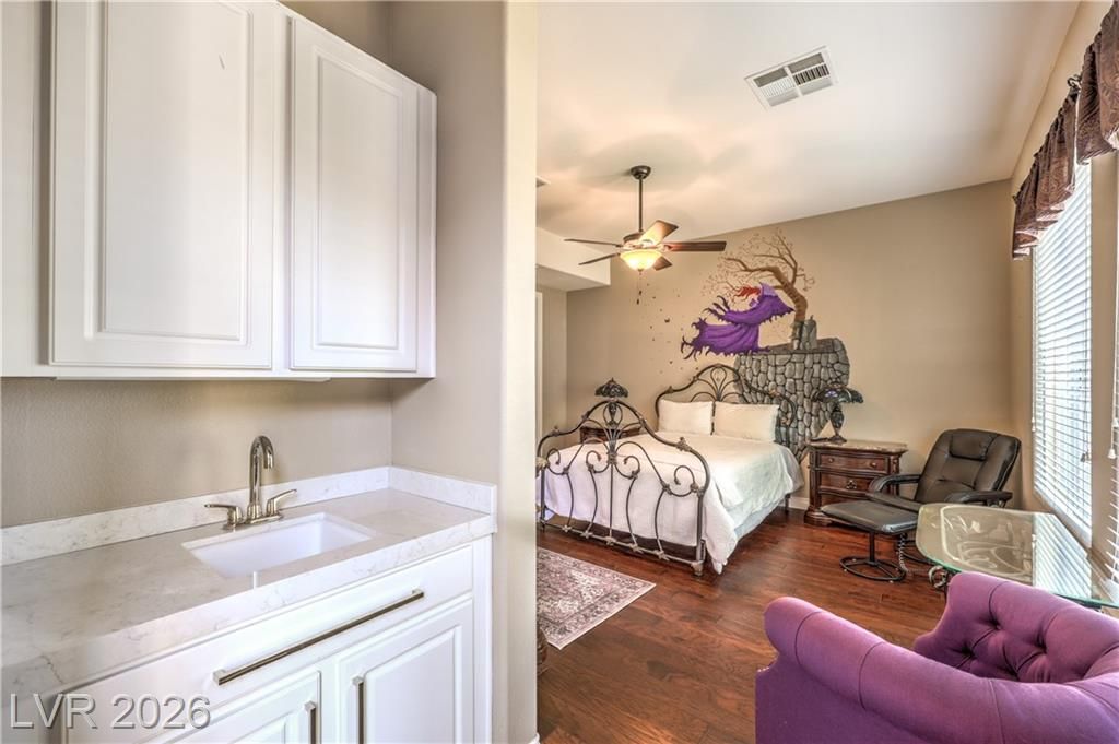 Nestled in the award winning 55+Sun City Anthem Community*Single story "Trenton Model" sits on a premium, corner lot*Private gated courtyard with custom wrought iron gate and stone veneer*2 car garage (3rd garage used for storage*All 3 bedrooms lead out to the courtyard*3rd bedroom is a 460 sq ft casita complete w/wet bar, walk-in closet, bathroom & ceiling fan*Chefs kitchen boasts slab granite counters, stainless Kitchen Aid appliances, white cabinetry, center island & pantry*Formal dining room*Open living room w/stone linier fireplace, lighted media center and ceiling fan*Expansive primary suite w/sitting area, walk-in closet and plantation shutters*engineered hardwood floors*two tone paint*3.5 newly remodeled bathrooms*spacious laundry room w/utility sink, granite counters and tons of cabinets*Den could be used as a craft room or office*3 clubhouses, tennis, 2 golf courses, tons of social events, indoor and outdoor pools, bocce ball and pickle ball courts*