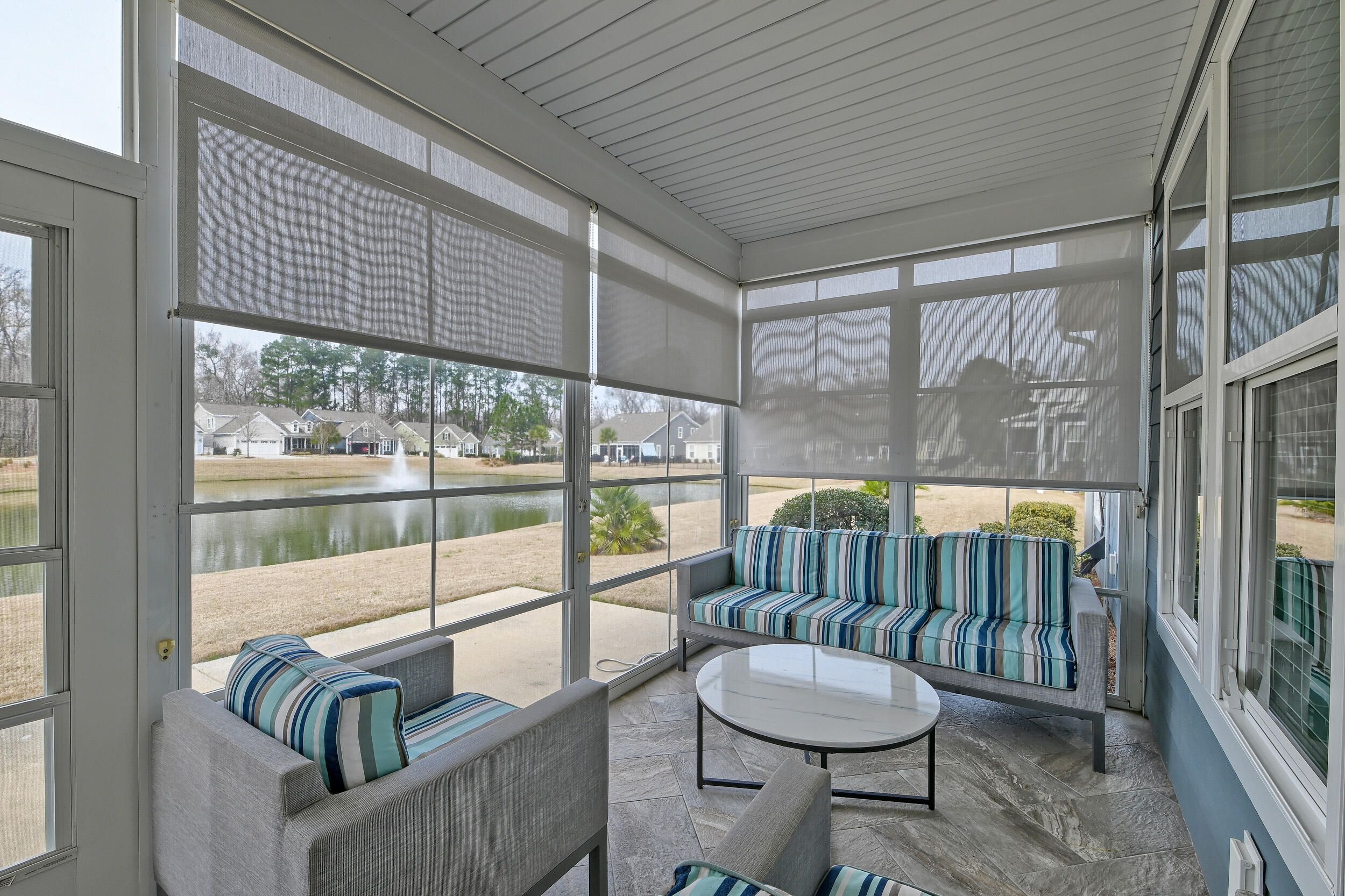 ***Ask about the possibility of receiving a 1% reduction in interest rate and a free refinance!***Charming, beautifully maintained, and set against tranquil pond views, this exceptional home is located in the sought-after 55+ gated community of Cresswind at The Ponds. From the moment you arrive, you'll be captivated by the manicured landscaping, welcoming front porch, and inviting curb appeal.Step inside to discover an interior filled with natural light, elevated finishes, and thoughtful design. Attractive flooring, crown molding, high ceilings, and an open-concept layout create a bright and airy feel throughout. The foyer makes a stunning first impression with its dramatic tray ceiling.Just off the entry, glass-front French doors open to a versatile office or study that can easily serve as an optional guest bedroom. This space is customizable to fit your needs and lifestyle. The heart of the home is the expansive living, dining, and kitchen area designed for both everyday comfort and effortless entertaining. The kitchen is a true showpiece, featuring abundant white cabinetry, gleaming countertops, stainless steel appliances including a gas cooktop with hood vent, a stylish subway tile backsplash, and a large center island with seating. The living room centers around a beautiful fireplace flanked by built-in shelving and cabinetry, while the dining area offers views to the peaceful backyard and pond. Step outside to the screened porch. This impressive space is an ideal spot to unwind, dine al fresco, or simply take in the serene setting. The adjacent patio offers even more space to relax and enjoy the picturesque water views. The spacious primary suite provides a private retreat with a tray ceiling and a spa-like en suite bath complete with a large tiled step-in shower, dual vanities, and a generous walk-in closet. An additional bedroom, a full bathroom, and a well-appointed laundry room complete this lovely home. Living in Cresswind at The Ponds means access to outstanding resort-style amenities, including a clubhouse, fitness center, game room, art room, banquet hall, swimming pool, tennis courts, pickleball courts, bocce ball, and abundant outdoor gathering spaces--all within a secure gated setting. Conveniently located just 7.8 miles from Historic Downtown Summerville, 9.8 miles from I-26, 6.7 miles from Harris Teeter, 13 miles from Givhans Ferry State Park, and 18 miles from Charleston International Airport, this home offers both peaceful surroundings and everyday convenience. Don't miss the opportunity to enjoy pond-front living and an active, amenity-rich lifestyle in one of the area's premier 55+ communities.