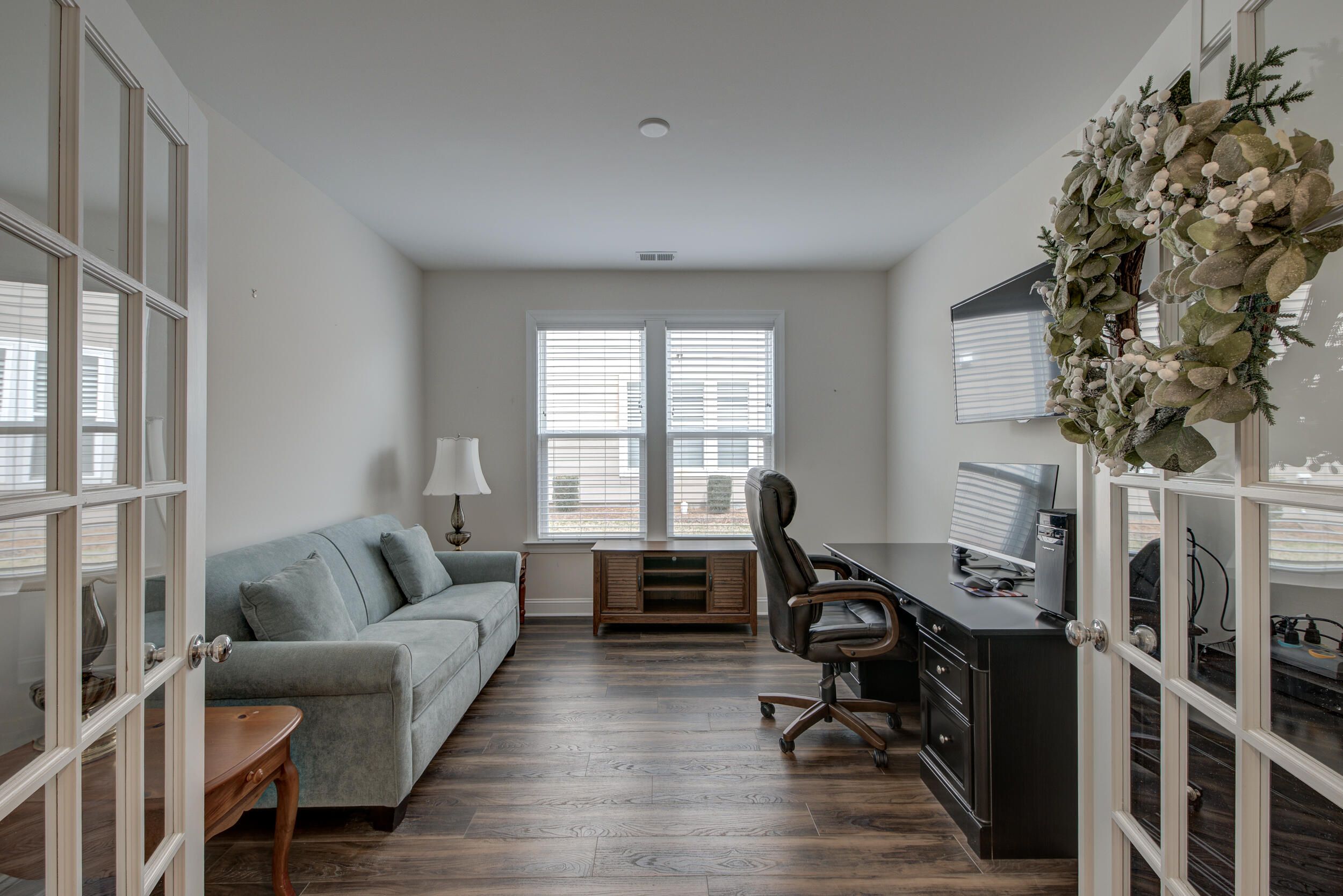 - Smooth Ceilings, Tray Ceiling(s), High Ceilings, Kitchen Island, Walk-In Closet(s), Ceiling Fan(s), Entrance Foyer, Living/Dining Room, Home Office, Study