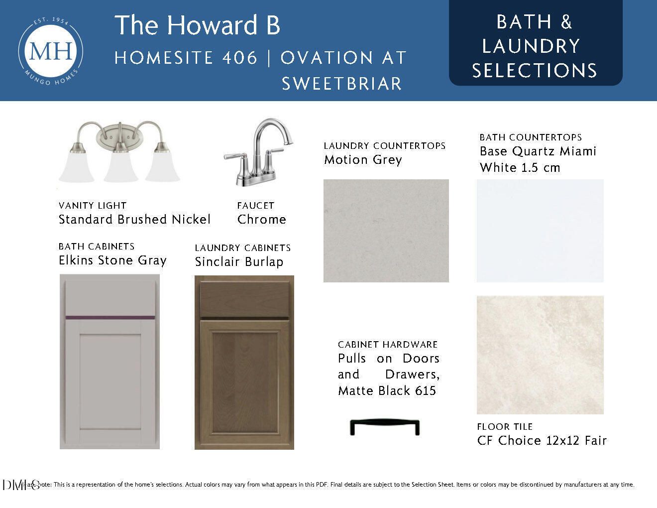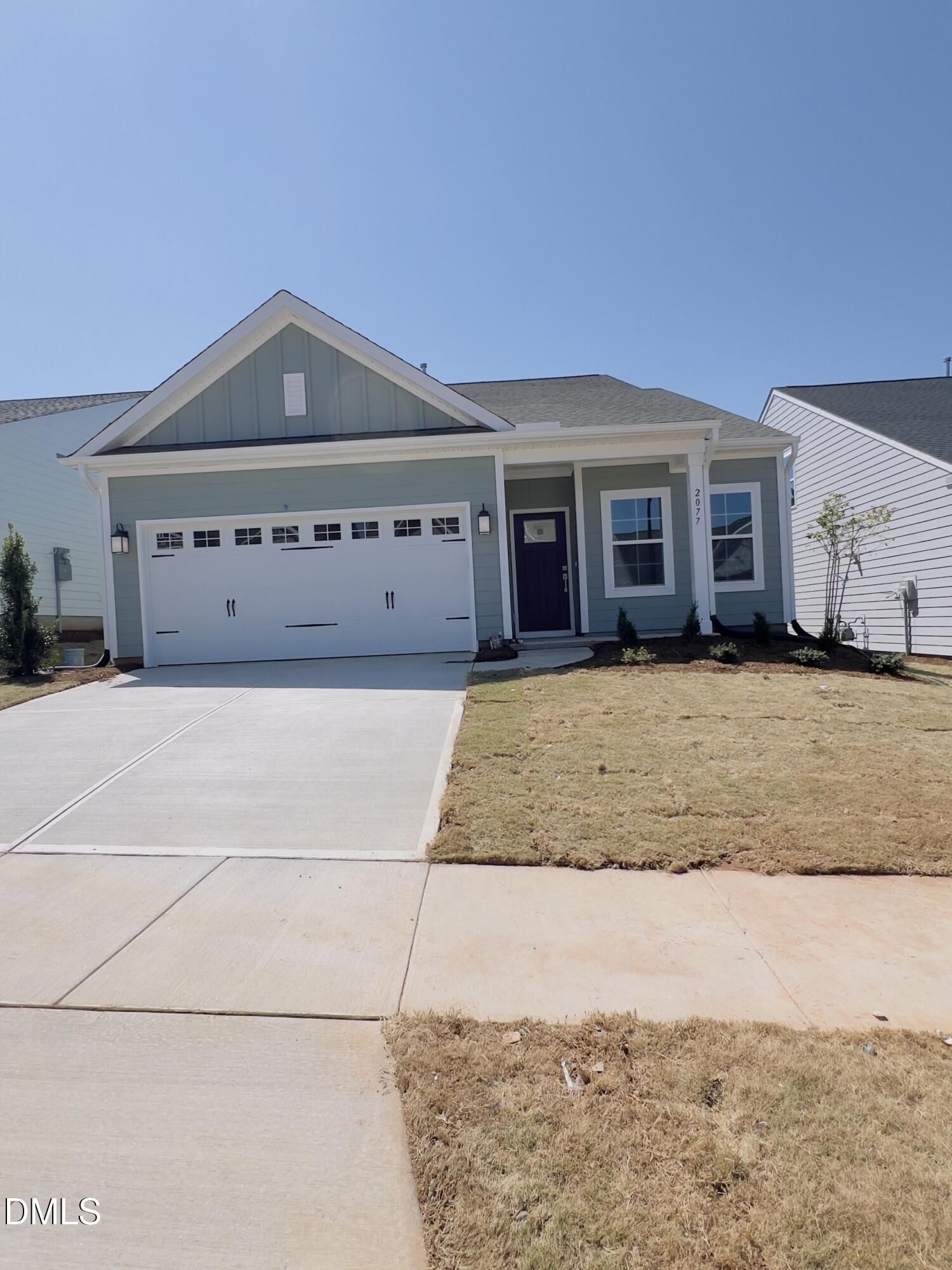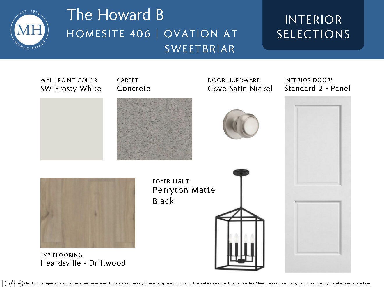 Experience the ease of true main-level living in the Howard, a thoughtfully designed ranch home located in Ovation at Sweetbrier, Mungo's 55+ active adult community. This home blends comfort, style, and simplicity--perfect for enjoying life at your own pace. Inside, an open-concept layout brings together the kitchen, dining area, and main living space, creating a welcoming environment for everyday living and entertaining. The kitchen is beautifully appointed with a large center island, quartz countertops, stainless steel appliances, and clean, modern finishes that make both cooking and gathering a pleasure. Step outside to the covered rear porch, a natural extension of the living space where you can enjoy quiet mornings, sunny afternoons, or relaxed evenings with friends--comfortably sheltered year-round. The primary suite, privately located at the rear of the home, offers a peaceful retreat with a tiled walk-in shower with bench seat, raised vanities with dual sinks, and a generous walk-in closet. Two additional bedrooms provide flexible options for guests, hobbies, or a home office. At Ovation at Sweetbrier, lawn maintenance is included so you can spend more time enjoying the lifestyle you've earned. Community amenities include a clubhouse with fitness center, pool and hot tub, pickleball and tennis courts, dog parks, an outdoor chess garden, community garden, scenic walking trails, and a lifestyle director who plans engaging social events. Conveniently located just minutes from Brier Creek Parkway, RDU Airport, I-540, and Brier Creek Commons, this home offers effortless living with easy access to shopping, dining, and travel.
