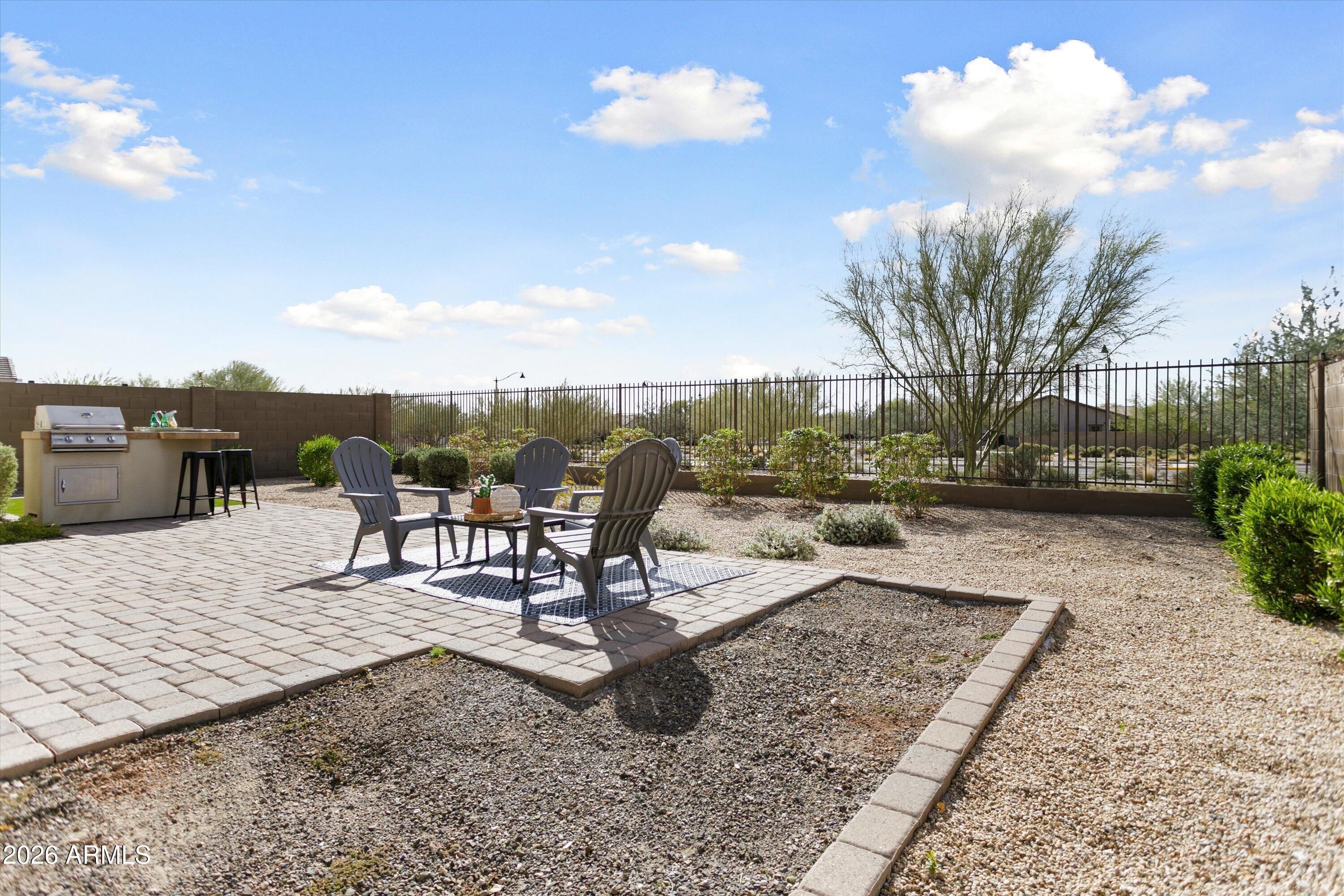 This FORMER MODEL by Lennar has 2 beds, 2 baths, great room, large covered rear patio with an oversized lot, and built-in BBQ! In addition, the home has many upgrades, options, & updates! Such as upgraded flooring, extra lighting, soft water system, RO system, epoxy garage floor, pavers at rear patio, and much more!. But it's really all about location, location, location... You'll love the setting with the open-view fencing and you will enjoy 55+ living at its finest at Victory at Verrado.