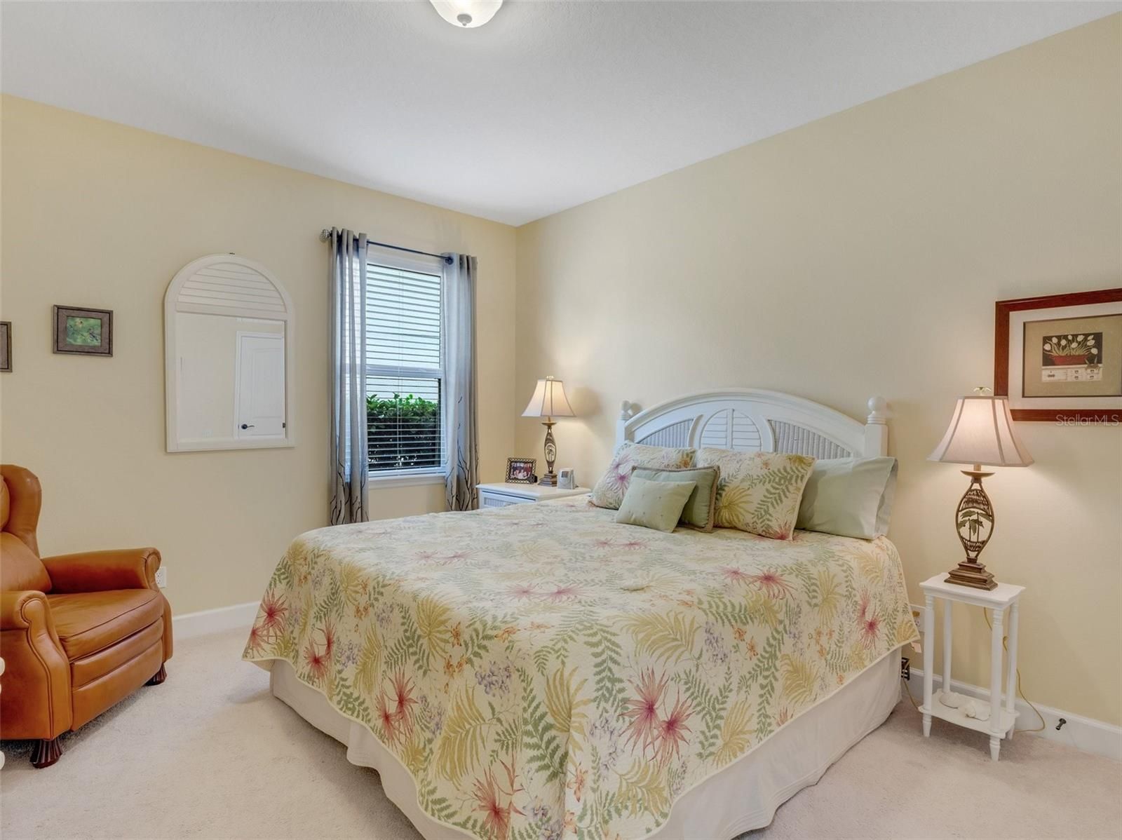 - Ceiling Fan(s), Crown Molding, Eat-in Kitchen, In-Wall Pest Control, Main Level Primary, Solid-Wood Cabinets, Stone Counters, Thermostat, Walk-In Closet(s)