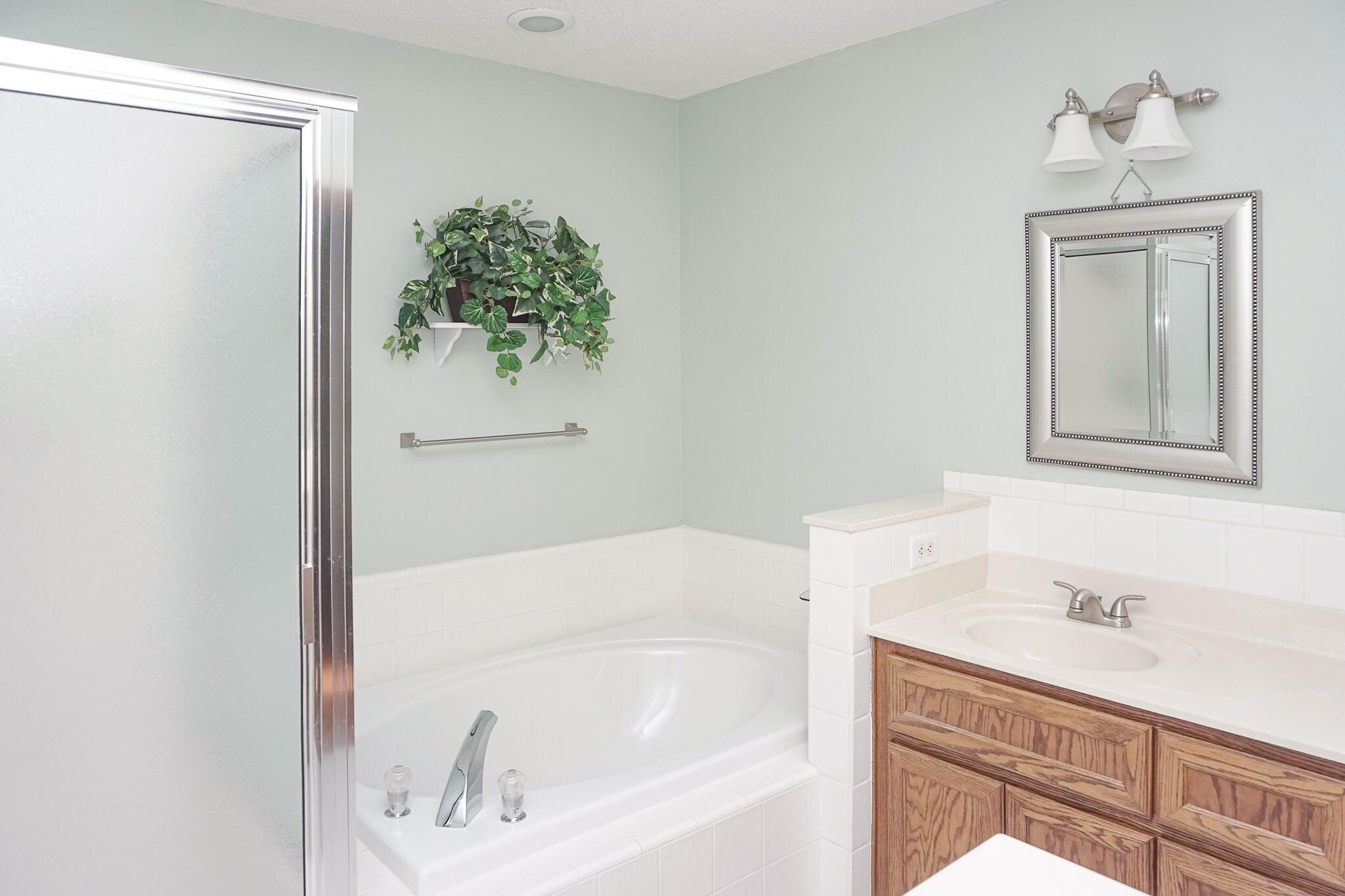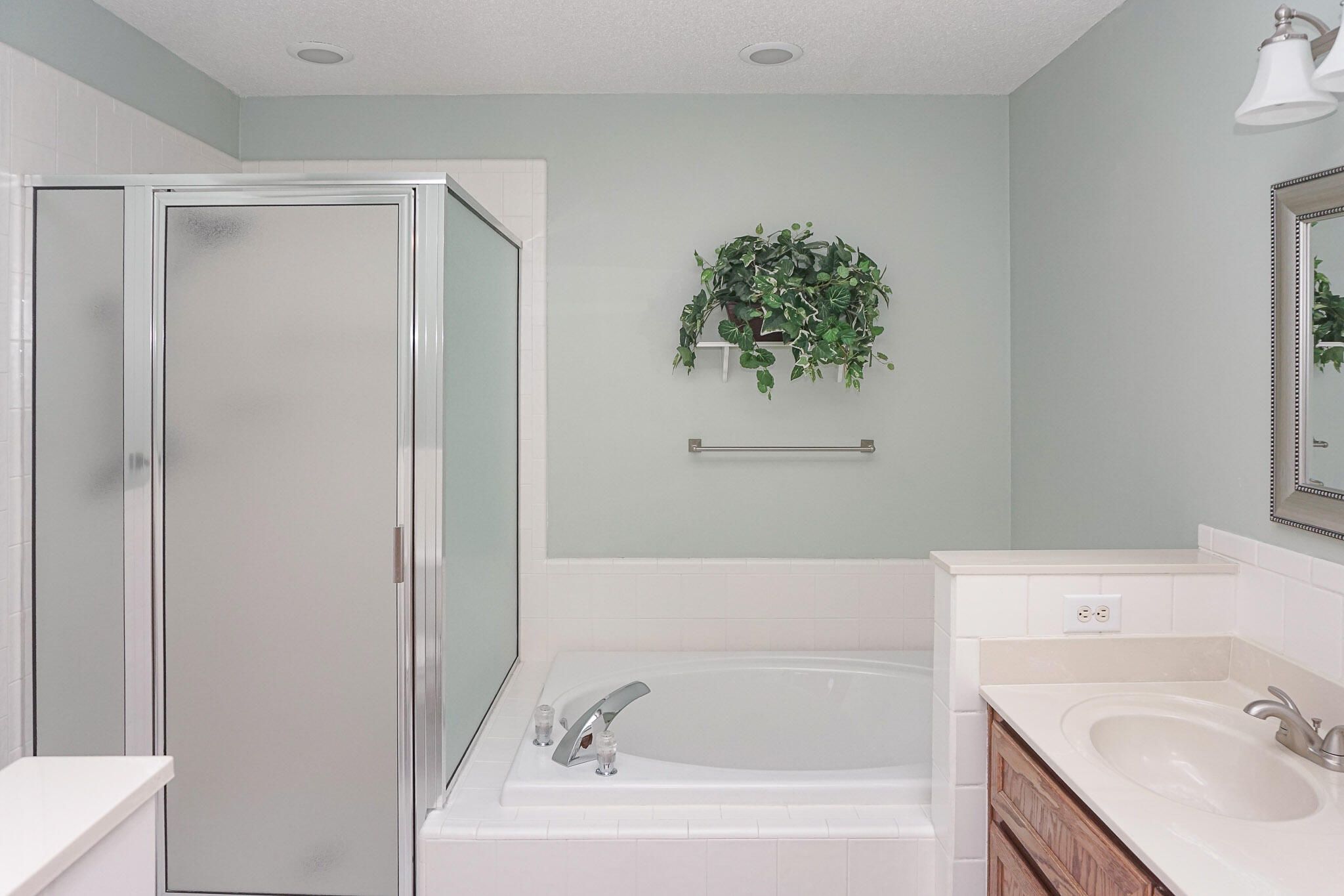 - Blinds, Built-in Features, Cable TV Hookup, Entrance Foyer, Garden Tub, Kitchen Island, Pantry, Skylights, Smoke Detector, Split Bedrooms, Utility Sink, Walk-In Closet(s), Washer Hookup, Wired for Data, Electric Dryer Hookup, Main Level Primary