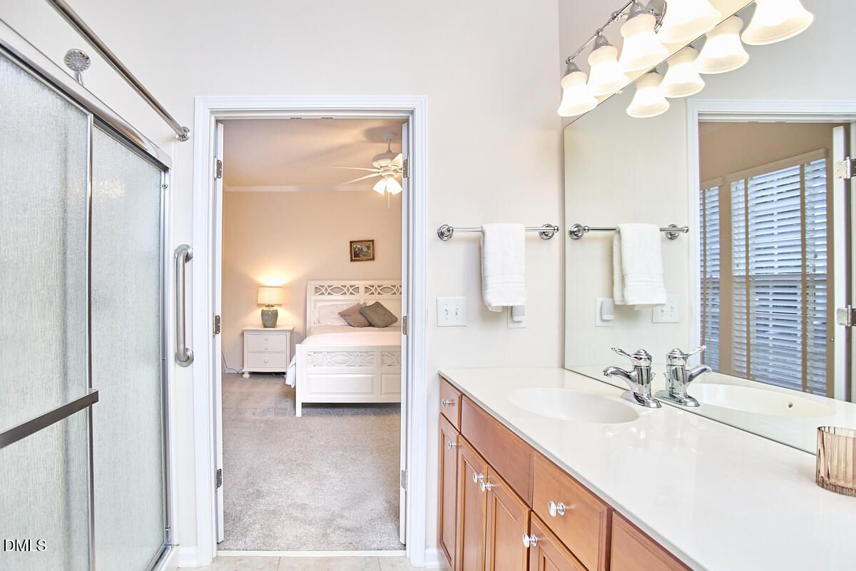 - Tub Shower, Ceiling Fan(s), Eat-in Kitchen, Entrance Foyer, Pantry, Master Downstairs, Recessed Lighting, Smooth Ceilings, Walk-In Closet(s), Walk-In Shower