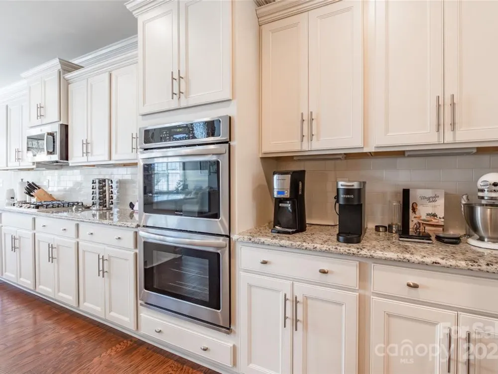 - Dishwasher, Disposal, Double Oven, Gas Cooktop, Gas Oven, Ice Maker, Microwave, Wall Oven