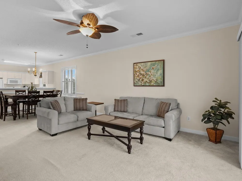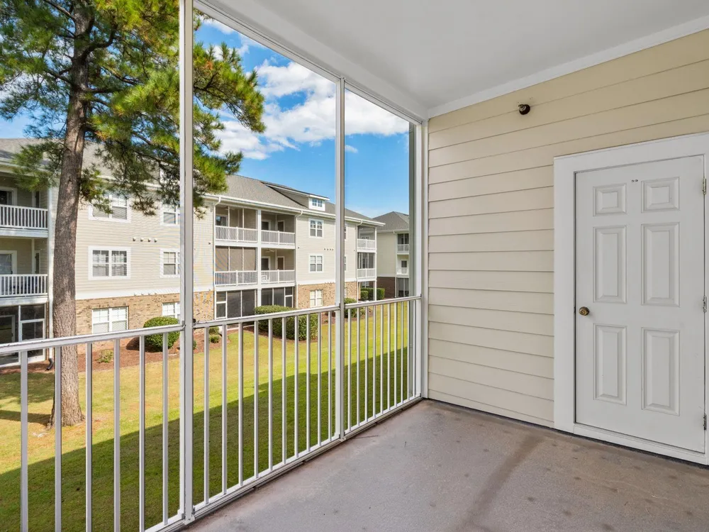 Don’t miss this RARE opportunity to own the first 3-bedroom condo to hit the market in Berkshire Forest in over four years. This spacious 2nd-floor end unit offers a bright open floor plan with two large sliders that flood the living area with natural light and lead to a screened porch with outdoor storage—an ideal spot to unwind after a day at the pool or the beach. The kitchen features crisp white cabinetry, a pantry, and a breakfast bar, while the owner’s suite includes a generous walk-in closet, an additional closet, and a private bath with a shower/tub combo. Two additional bedrooms and a shared full bath provide flexibility for family or guests. Notable highlights include plantation shutters, ceiling fans throughout, and excellent storage. The condo is being offered fully furnished and MOVE-IN READY. Located in the highly desirable Berkshire Forest community in Carolina Forest, residents enjoy a prime location close to dining, shopping, medical facilities, golf, and the airport—all less than 15 minutes to the beach! A must-see for anyone seeking a convenient and relaxed Myrtle Beach lifestyle.