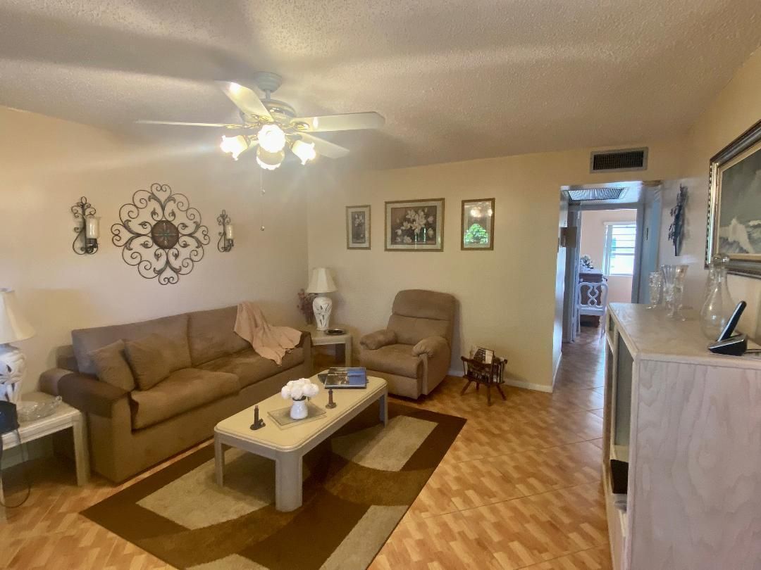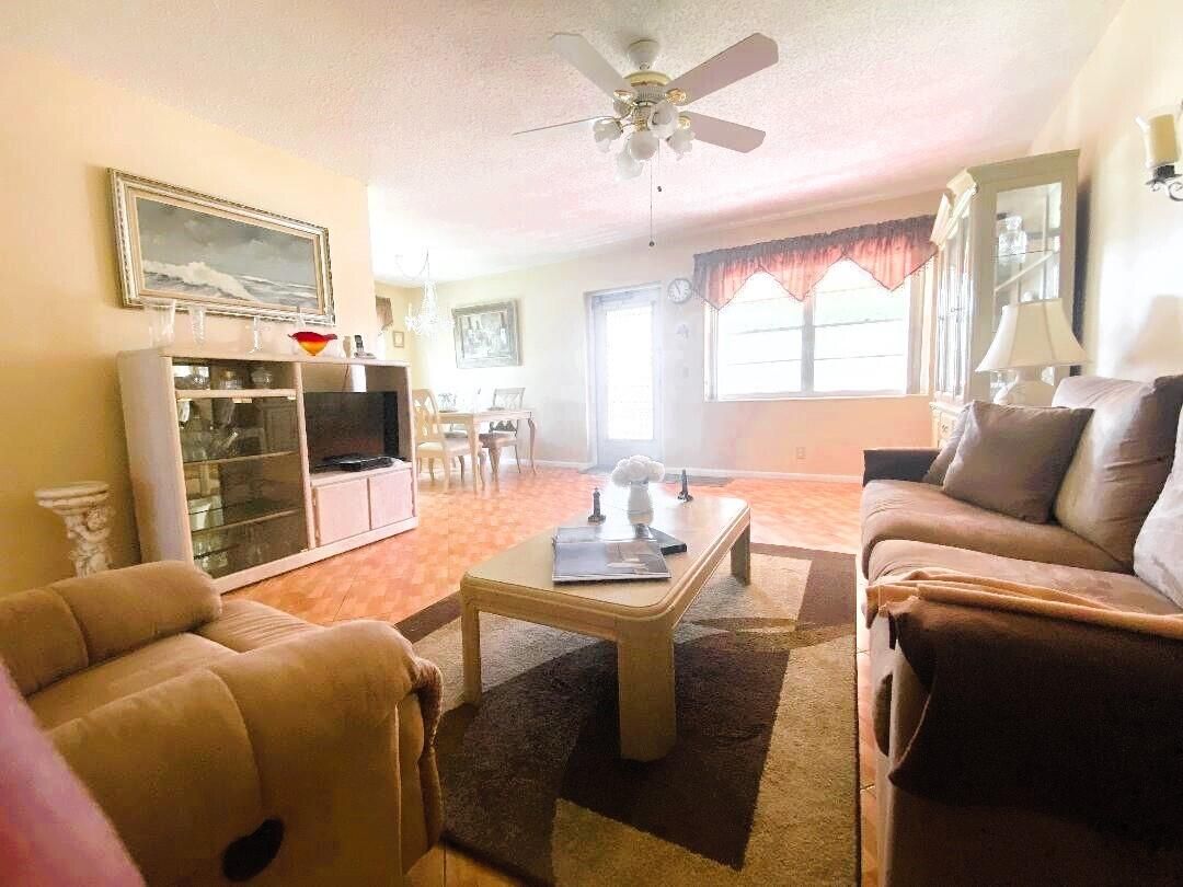 Updated 2-bedroom 1.1/2 bath second floor condo fully furnished in the heart of Century Village. Tile floor throughout, Kitchen Updated with wood cabinets and glass doors with central heating & air. This condo offers a light and bright corner unit. First bedroom offers walk in closet and patio doors leading out to an enclosed patio and Large second bedroom. There are laundry rooms on both the first and second floors with a spot for storage. Chatham J is financially sound and well managed. The amenities are endless from multiple pools to choose from as well as a beautiful indoor pool; Bike; Jog; Billiards; Bocce Ball; Clubhouse; Theater; Movies; Entertainment; Courtesy Bus; Game Room; Library; Pickleball; Sauna; Sidewalks; Street Lights and on and on! Lots of guest parking.