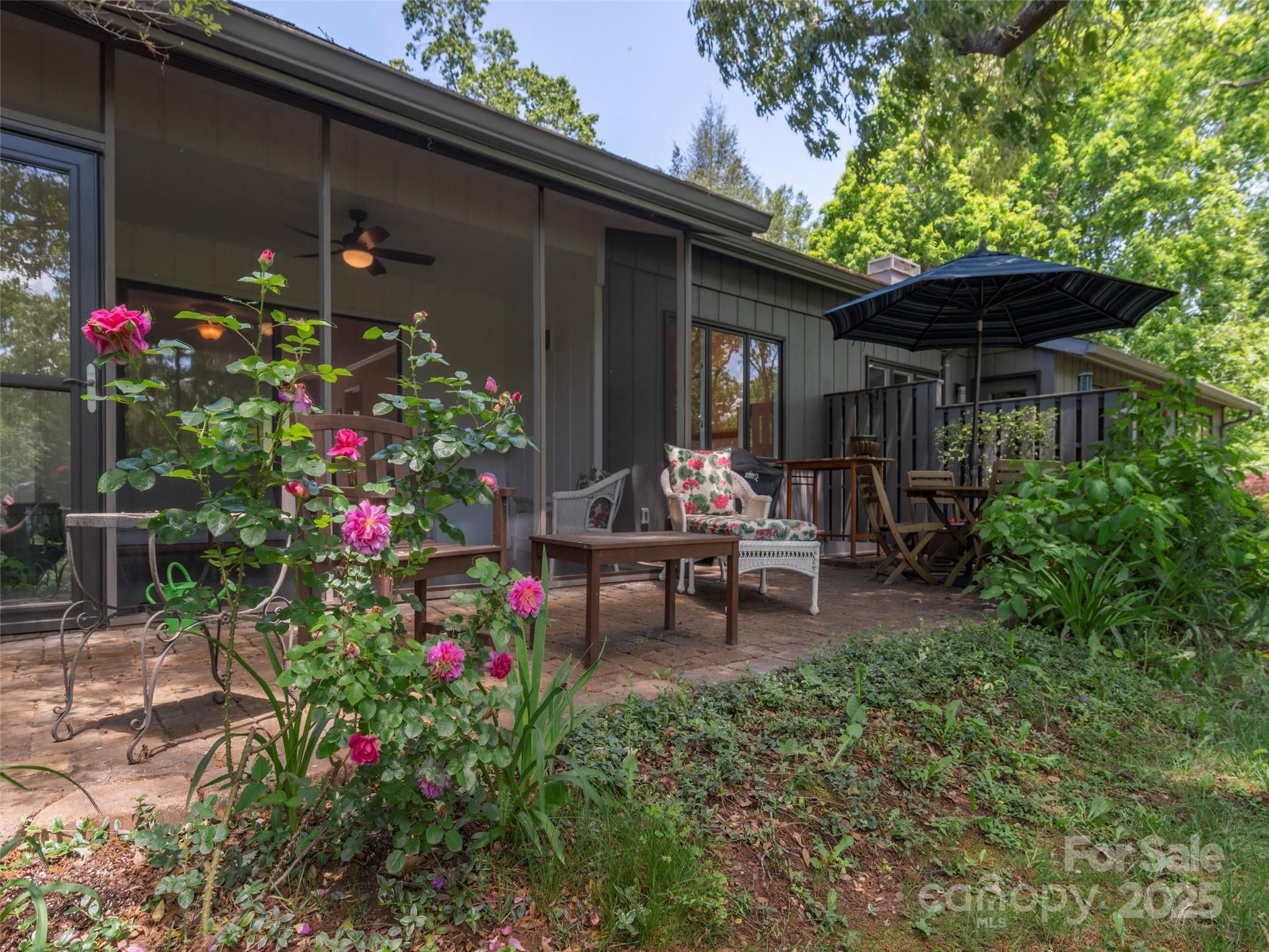 This one level villa condo has 3 bedrooms and 2 full baths with hardwood floors throughout the whole house and tile in the baths. The living room, which opens to a covered screened porch and patio, has a wood burning fireplace with gas logs. The updated kitchen has granite counter tops. The community clubhouse and heated swimming pool are a short walk from this condo. Crowfields Condos offers a park like setting close to restaurants, shopping and the Blue Ridge Parkway.