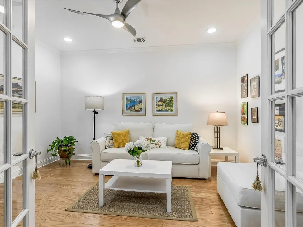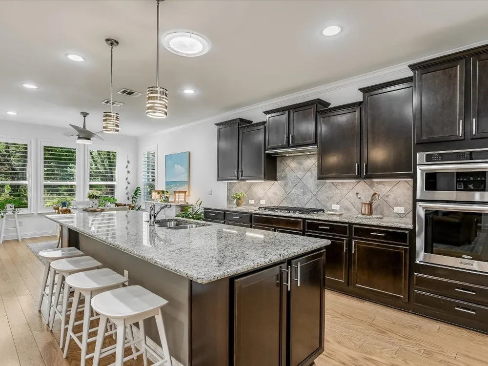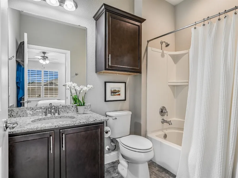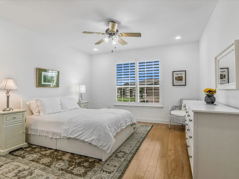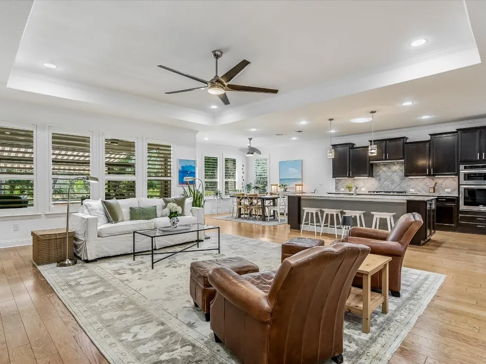 This beautifully maintained Dunwoody residence showcases a popular open floor plan and modern contemporary design. The home features three spacious bedrooms and three full bathrooms, making it ideal for comfort and versatility. Additionally, a large study or den provides extra living space, perfect for a home office or relaxation area. Step inside to discover a warm and inviting atmosphere, with expansive windows offering a wonderful view of the spacious backyard lot—enjoy the private backyard. The interior boasts top-of-the-line upgrades, including elegant tray ceilings, solar lights for energy efficiency, and stylish contemporary designer ceiling fans and light fixtures throughout the home. The open floor plan is enhanced with crown molding, wood laminate floors and 4” plantation shutters throughout. The open kitchen has cabinet and storage space granite counter tops and a large kitchen island offering ample room for entertaining and dining. Cabinets include convenient pull-out shelves and large pantry. Enjoy Outdoor Living...The extended screened patio is a standout feature, designed for year-round enjoyment. It is equipped with durable composite decking, retractable screens, and a convenient retractable awning, creating an ideal space for entertaining or relaxing while taking in the serene backyard views of the oversized lot. Golf cart included! Conveniently located near Cowan Creek golf course and amenity center.