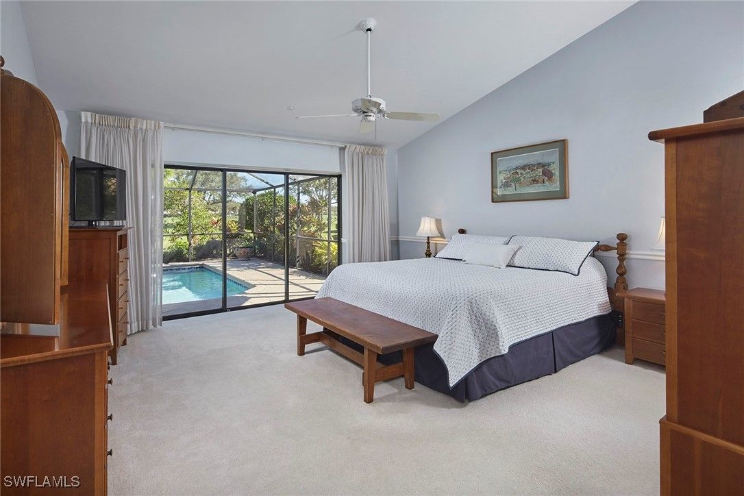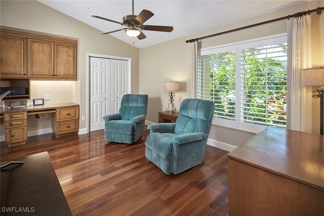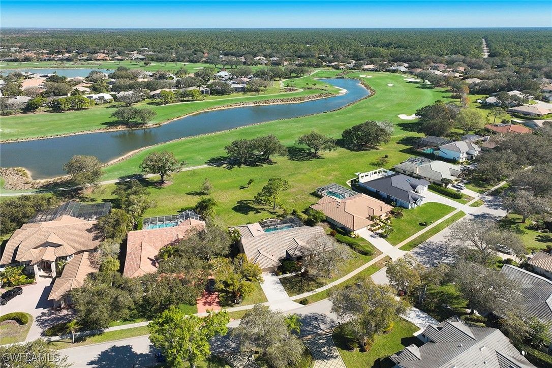 This immaculate former model home is being offered for sale by its original owners and presents a wonderful opportunity for someone wanting to own in Valley Oak in the Vineyards. This home is on an oversized, tropical landscaped homesite and is positioned to enjoy wide-open views of the 5th and 6th fairways of the Vineyards South course. With a bright and sunny interior, the flexible floor plan offers three bedrooms plus a den or four bedrooms (all with walk-in closets), three full baths, formal and informal areas, split bedrooms and open kitchen for continuous entertaining options. Vaulted and volume ceilings, skylights, family room with fireplace and custom built-ins, beautiful mahogany wood floors in formal areas and tile flooring in casual areas. Primary bedroom suite offers direct access to the den/office/bedroom offering flexibility. The spacious kitchen has a granite island and a large mitered corner window at the sink/counter area to enjoy views of the pool, landscaped gardens and beautiful golf course. Additional features include a fire sprinkler suppression system, impact windows, hurricane screens and shutters. The lanai features a huge outdoor kitchen area, covered and uncovered areas, a large swimming pool, an exterior golf course patio and an expansive lawn area for outdoor activities. So meticulously maintained over the years, you can just move in and enjoy!