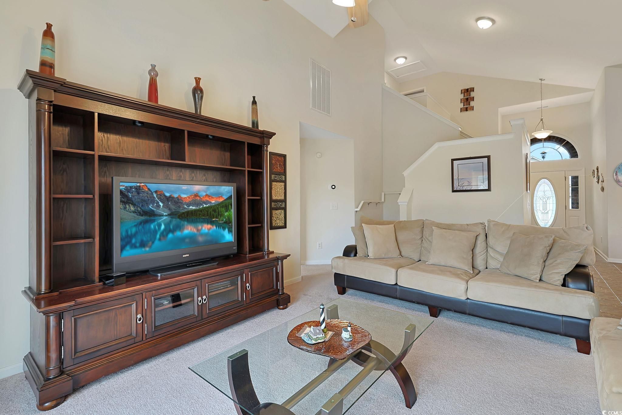 Introducing this distinctive 2 story 3 bedroom 2.5 bath home in the popular and gated Clearwater Lakes section of The Surfside Beach Club community. As you enter you take notice of the elegance of the grand two story foyer along with other features that include tile & carpet flooring, smooth flat ceilings, a guest powder room, a peaceful family room, a formal dining area, and a comfortable living room that showcases a sliding glass door that opens up to the relaxing back patio with memorable lake views. The kitchen is equipped with a black on black appliance package, a breakfast bar, cabinetry topped with crown moulding, ample counter top spaces, a practical pantry, and a sunlit breakfast nook. The first level primary suite offers a vaulted ceiling, tranquil lake views, private access to the primary bath that presents a vanity with dual sinks, a comfort station, laundry room access, a deluxe walk-in shower, and a large walk-in closet. As you venture upstairs you will find two additional bedrooms and full guest bath. You will treasure your moments in this vibrant home that is completed with a nice fenced in back yard, and a two car attached garage. This home affords you easy access to the beach and golfing along with all of the other activities and happenings in Myrtle Beach and the new Surfside Beach Entertainment District including fun eateries, award winning off-Broadway shows, public fishing piers, Marsh Walk, and intriguing shopping adventures along the Grand Strand. Conveniently located to your everyday needs, including grocery stores, banks, post offices, medical centers, doctors’ offices, and pharmacies. Check out our state of the art 3-D Virtual Tour. Some photos have been virtually staged.